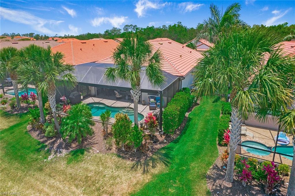 Turnkey furnished. Welcome to Artesia, one of Naples sought-after upscale gated communities, known for its luxurious amenities and active lifestyle. This stunning waterfront Islamorada model, built by acclaimed WCI, showcases breathtaking eastern sunrise views and an array of premium upgrades throughout. Designed with elegance and functionality in mind, this residence features impact-resistant windows and doors, a custom saltwater pool, an outdoor kitchen, an outdoor fireplace and more. The upgraded kitchen is a chef’s dream boasting high-end stainless-steel appliances including a new French door refrigerator and new dishwasher in 2025, a vented exhaust hood, a walk-in pantry, 42-inch upgraded cabinetry, a custom tile backsplash, granite countertops and breakfast bar. The sophisticated great room, showcasing tranquil lakefront views, is highlighted by a custom-milled wood-paneled tray ceiling, while the serene primary suite offers the same calming waterfront outlook. The spa-like primary bath includes a dual-sink vanity with Arabescato Bianco marble countertops, a frameless Euro-glass shower, a private water closet, and a spacious walk-in closet outfitted with a custom storage system. Additional guest accommodations include generously sized bedrooms and a private guest suite with its full bath and glass-enclosed shower. Relax in the custom free-form saltwater swimming pool surrounded by gorgeous luxurious white travertine coping and decking. Notable, valuable upgrades and features include a screened pool enclosure with upgraded picture window framing that captures stunning lake views, a motorized rolldown hurricane shutter for the lanai and a fully equipped outdoor kitchen with electric cooktop, refrigerator and sink. Enhanced tropical landscaping adds to the home's curb appeal, while custom plantation shutters, crown molding and wainscot panels elevate the interior style. Additional enhancements include dual-powered whole-house generator, designer light fixtures with LED recessed lighting, pre-plumbed for a utility sink in the laundry room, a widened brick paver driveway, decorative exterior lighting and custom house numbers, exterior flood lighting, exterior repainted and a new water heater installed in 2025. And a Taexx in-wall pest control tube system. As a resident of Artesia, you'll enjoy access to an impressive array of amenities. The modern clubhouse hosts lively community social events and features a resort-style pool, three pickleball courts, two bocce ball courts, billiards room, fully equipped fitness center and movie theater. Residents also enjoy exercise and craft classes, as well as beautiful lakeside recreational path and dog parks. Just a short drive from downtown Naples and Marco Island, this home offers the best of both worlds: a peaceful, luxurious community and proximity to vibrant local attractions. The HOA fee includes cable and internet, and there is no CDD fee. Click links for 3D tour and floor plan.