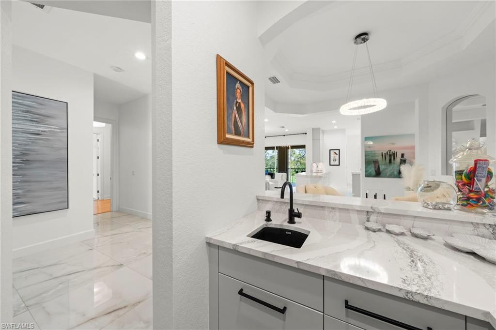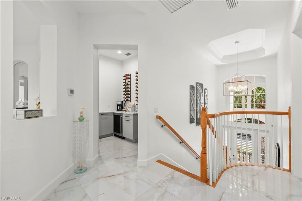 Welcome to this spacious impeccably remodeled, expansive second-floor coach home where everything is BRAND NEW inside and out and every detail exudes elegance. This immaculate, furnished residence offers a seamless blend of modern luxury and timeless sophistication with captivating golf course views. The gleaming show-stopping marble floors flow throughout, setting the stage for a truly stunning interior. The custom-designed gourmet kitchen is a chef’s dream, featuring premium quartz countertops, artfully illuminated cabinetry, and a full suite of top-of-the-line appliances. Every aspect has been upgraded — from the kitchen and three spa-inspired baths to the bar area — with new plumbing, a reverse osmosis drinking system and a whole-house water filtration system ensuring the utmost in quality and comfort. No detail has been overlooked — inclusive of the new Trane central air conditioning system and hurricane-impact windows to the plantation shutters, new roof, and fresh exterior paint. Distinctive architectural details define the living spaces, including stately stacked-stone accent walls in both the living room and primary suite. Complete with three bedrooms, a light-filled office, a custom bar area, and a spacious den that can serve as a fourth bedroom. The luxurious primary suite features a beautifully organized closet system and spa-like ensuite bath. An oversized two-car garage adds wonderful convenience and the home’s ideal location is diagonally across from the clubhouse pool and fitness area. Residents enjoy the exceptional amenities of Pelican Landing and The Colony, including private waterfront dining at the exclusive Bay Club Restaurant, access to Pelican Landing’s 34-acre private island Beach Club with boat shuttle, tennis and pickleball courts, state-of-the-art fitness center, and sailing and kayak parks—all just minutes from world-class shopping, dining, and entertainment, and only 20 minutes from the airport. Discover an elevated standard of luxury living—where sophistication meets serenity, and every detail shines.