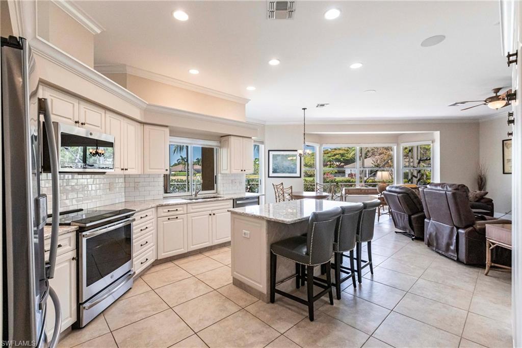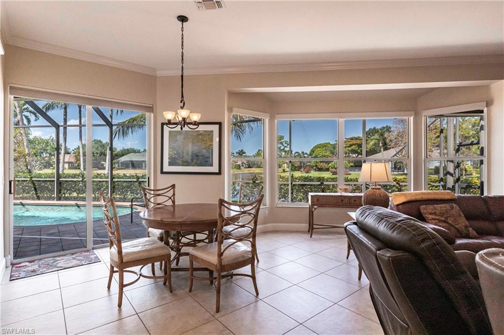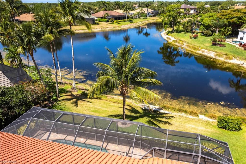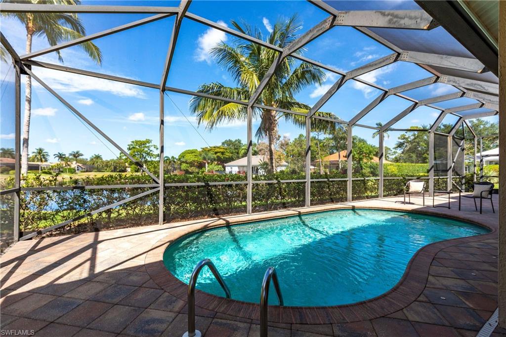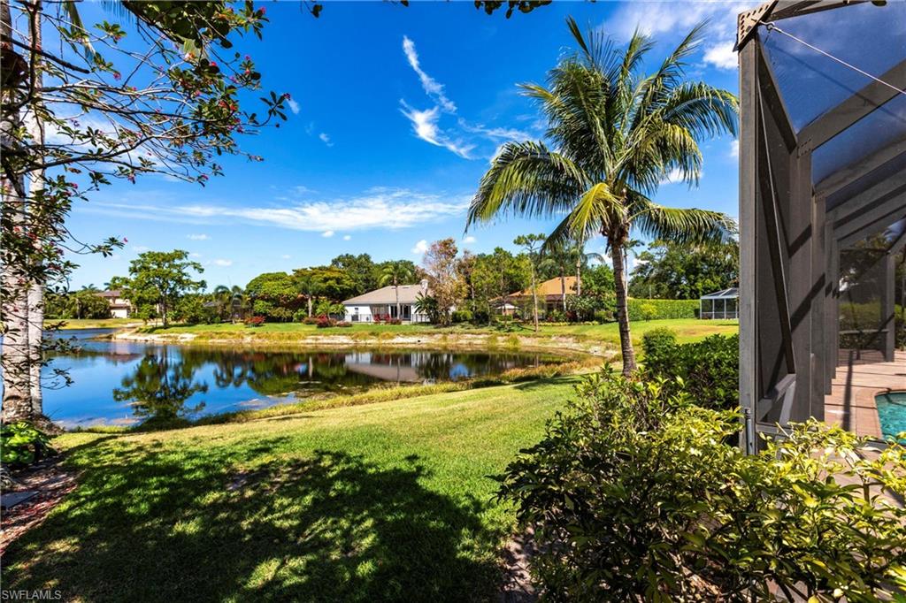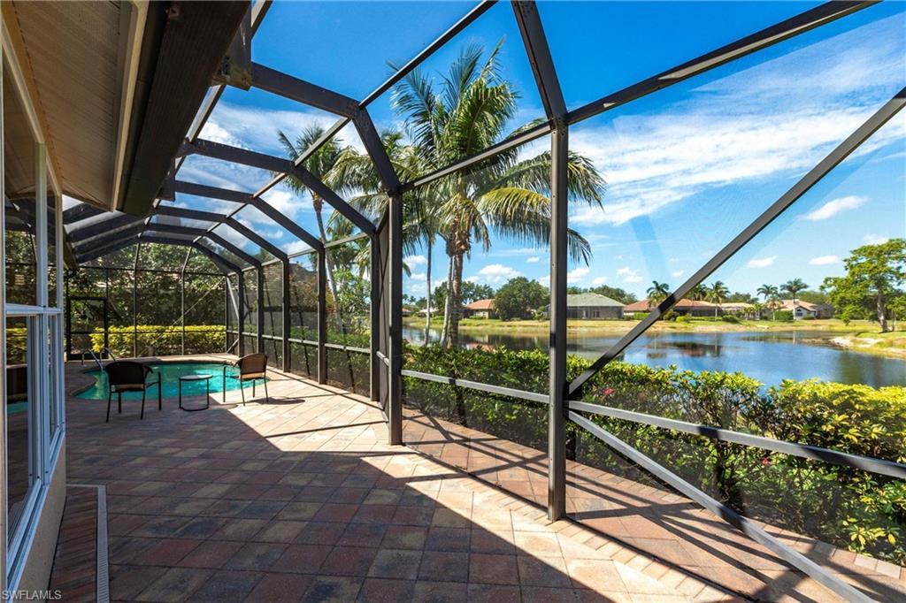 Come take a look at this fantastic lakefront home in Longshore Lake offering 3 bedrooms, den, 2.5 baths, heated pooland beautiful lakefront westerly views. This fantastic home has been renovated with new bathrooms and updated kitchen with quartz countertops and stainless appliances. Other upgrades include crown molding, all closets have custom cabinets, primary suite offers 2 closets, walk in shower and soaking tub. This is an oversized lot with lots of privacy. Longshore Lake is a premier North Naples gated community with an 88 acre lake for boating, fishing and kayaking, a clubhouse with restaurant ,bar and outdoor dining, 9 Har tru tennis courts with full time pro, pickleball, fitness center and miles of walking paths. It is also close to shopping and sugar sand beaches.Move in ready!