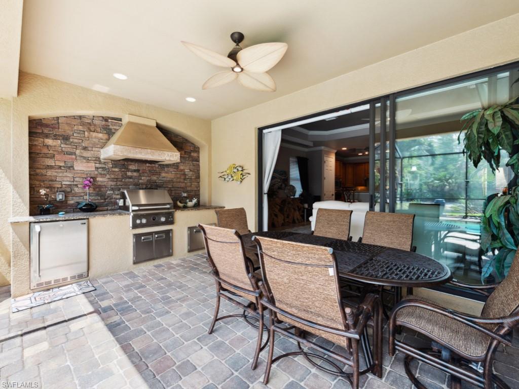 PEACEFUL, QUIET, GORGEOUS WATER VIEW home with FULL TPC Treviso Bay golf membership sold Turnkey! Welcome to 9522 Piacere Way, a meticulously maintained 3-bedroom plus den (or 4th bedroom), 2-bathroom pool home situated on an exceptionally beautiful lot with water and preserve views in the sought-after Treviso Bay community. This lot is situated near the Piacere Way cul de sac providing a tranquil location just walking distance to the 5 star Treviso Bay amenities. This charming residence offers a thoughtfully designed floor plan which brings abundant natural light, welcoming foyer, guest rooms and den are separated from the primary suite, large kitchen with stainless steel appliances and relaxing living room which invites you to the peaceful outdoors! This home boasts 2,200 sq ft of easy living! The owners have even installed a drop down electric screen to project your favorite movies or streaming your favorite series! Tile flooring is cut on the diagonal and continuous throughout the home, no carpet! Once you enter the foyer your eye is drawn all the way to the calm eastern exposure lanai offering an outdoor kitchen with wine cooler and gas grill, in ground pool/ spa, relaxing patio furniture, mindfully placed landscaping and lighting beyond the screened in cage! Move in ready this home is sold turnkey with everything you could think of~ just bring your suitcase! This lovely home comes with a TRANSFERABLE TPC GOLF MEMBERSHIP to enjoy! This entitles you to play the many TPC designated golf courses around the United States! Treviso Bay's Five Star amenities are second to none boasting the Villa Rilassare amenity center La Brezza resort style pool and full bar, professionally staffed fitness center, tennis courts, bocce, pickle ball, basketball and full spa services. The spectacular Treviso Bay TPC Golf clubhouse has two dining rooms, library, TPC pro shop, luxurious locker rooms and a breathtaking terrace over looking hole 9 and 18 to enjoy cocktails or fine dining. Just 5 miles away from Naples beautiful sandy beaches and fabulous 5th Ave shopping and restaurants!