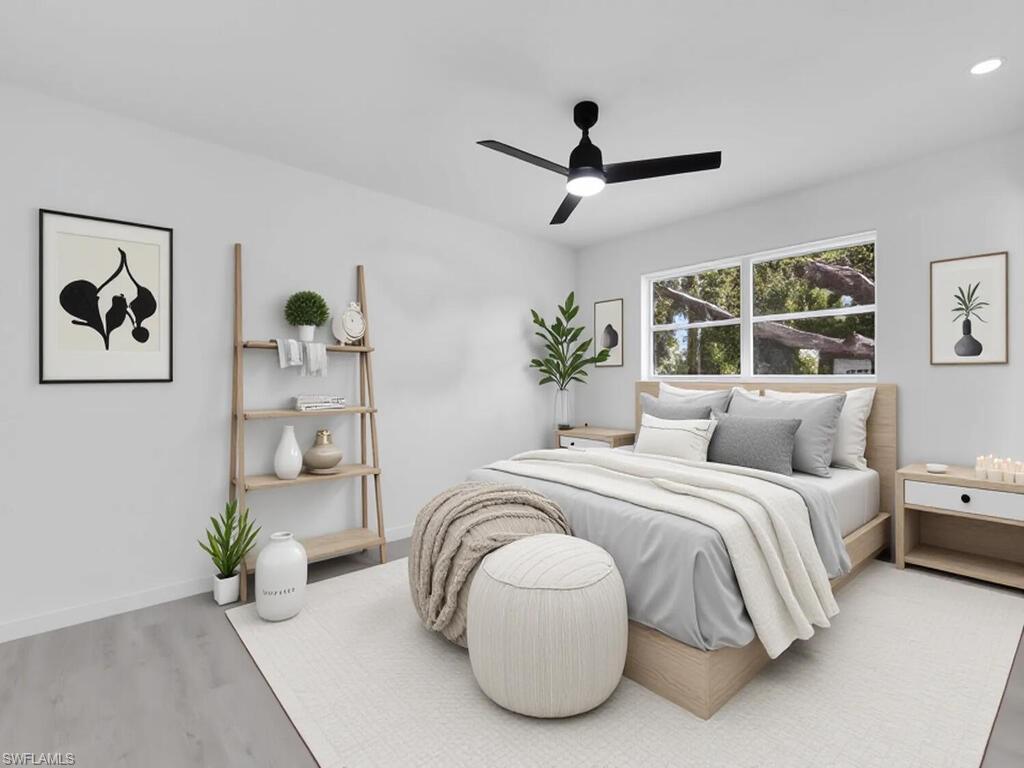 NO HOA FEES!!!!! 4 Bedroom, 2 Bathroom Single Family Detached Home located only 4.5 miles to the beautiful Naples Beaches and the downtown shopping district. The home has been tastefully updated inside and out, including new roof, new luxury vinyl plank flooring through, new A/C system, new appliances, new kitchen with quartz countertops and stainless steel appliances, new fans and lighting, new baseboards, new trim and doors, new bathroom vanities, and new shower and tub/shower. The home has been freshly painted inside and out and also has new garage door with wifi opener, and updated landscaping. Other features include: custom lighting in the kitchen, large covered porch with new flooring, front concrete patio, and an oversized corner lot. Some of the photos are Virtually Staged Photos.