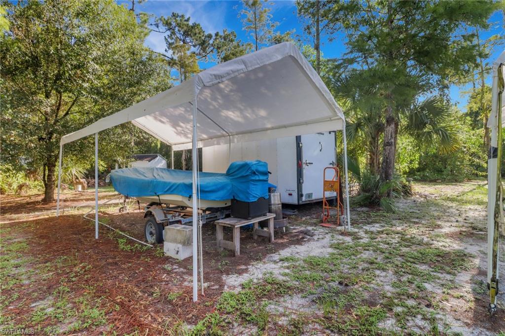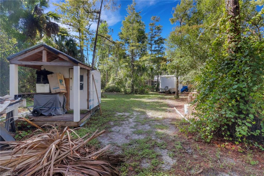 A tropical Naples hideaway on 1.14 acres—with the rare opportunity to purchase the adjacent 1.14-acre lot as well, giving you a total of 2.28 acres—this Golden Gate Estates property blends privacy, charm, and exceptional value. This inviting 3 bedroom + den, 2 bathroom home features a desirable split floor plan and sun-filled living spaces full of character, colorful designer touches, and serene views of the lush greenery surrounding the home. A NEW roof is coming soon, and the property is equipped with NEW gutters and downspouts for added peace of mind. This home is an incredible energy-efficient find, as the entire house runs on solar power, including a solar attic fan and a solar-assisted water heater (water heater is both electric and solar), resulting in remarkably low electric bills. The solar panels have also been professionally serviced and cleaned, offering optimal performance for years to come. Inside, the kitchen features wraparound tile counters, a breakfast bar with bright café-style seating, and a comfortable flow into the dining and living areas. Outdoors, the property transforms into a private tropical oasis with mature bamboo, palms, and vibrant plantings creating natural privacy. A shaded paver patio is perfect for gatherings, and the expansive backyard provides ample storage, room for recreational toys, and space to add a large resort-style pool. With no HOA restrictions, this home is ideal for investors, seasonal residents, or full-time buyers seeking quiet country living close to town. The option to acquire the adjacent vacant parcel enhances the potential to create a family compound, build an additional residence, or simply enjoy the added privacy and land. This is a truly unique opportunity to own an energy-efficient, estate-style property with room to grow.