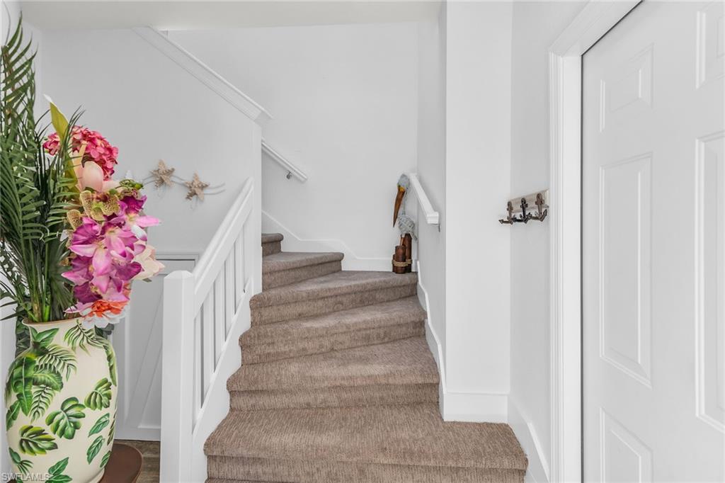MOTIVATED SELLER! Imagine waking up each morning to the gentle sway of palm trees and the scent of salt air drifting in from the Gulf. Tucked into the peaceful Port of the Islands community, this 3-bedroom + den, 3-bath home offers 1,827 square feet of light-filled, coastal-inspired living, and it’s all just steps from your private dock. Inside, the open-concept layout is perfect for entertaining or relaxing after a day on the water. The kitchen is the heart of the home, now featuring all new Bill Smith stainless steel appliances: stove, refrigerator, dishwasher, microwave, washer, and dryer, with over two years remaining on a transferable 5-year warranty. Fresh one-year-old tile flooring anchors the space, flowing effortlessly into vaulted living areas adorned with rich Brazilian cherry wood flooring (4 years old) and a custom artist “Marty Wisher” coastal mural with hand-painted kitchen wall effects. A newly remodeled master bath and remodeled guest bath, both with warranties on the glass, add a touch of modern luxury. Practical updates continue throughout: a 2-year-old Admiral water heater, 2-year-old Admiral air conditioner, fresh interior paint (1 year), new staircase carpeting, and smart storage solutions under the stairs and above the garage. Step outside to your screened lanai, recently upgraded with “noseeum” mesh to maximize comfort, and enjoy a front-row seat to spectacular sunsets and soothing ocean breezes. For peace of mind, the home is equipped with a power transfer switch and a brand-new generator, along with storm shutters throughout, including convenient power shutters on the large windows and lanai. With direct water access to the legendary 10,000 Islands, this is a boater’s dream come true. Cast off from your 5-ton boat lift (3 years old, accommodates up to 28’), explore endless mangrove-lined backwaters, or cruise out to white sand beaches where dolphins play. A brand-new seawall, manicured tropical landscaping, and tranquil canal views make the outdoor setting feel like a private retreat. As a final bonus, this residence offers the lowest condo fees for a 3-bedroom, 3-bath in the Port. Whether you’re looking for a weekend escape or a full-time home that embraces the Southwest Florida lifestyle, this property checks all the boxes for waterfront living, wrapped in natural beauty and serenity.