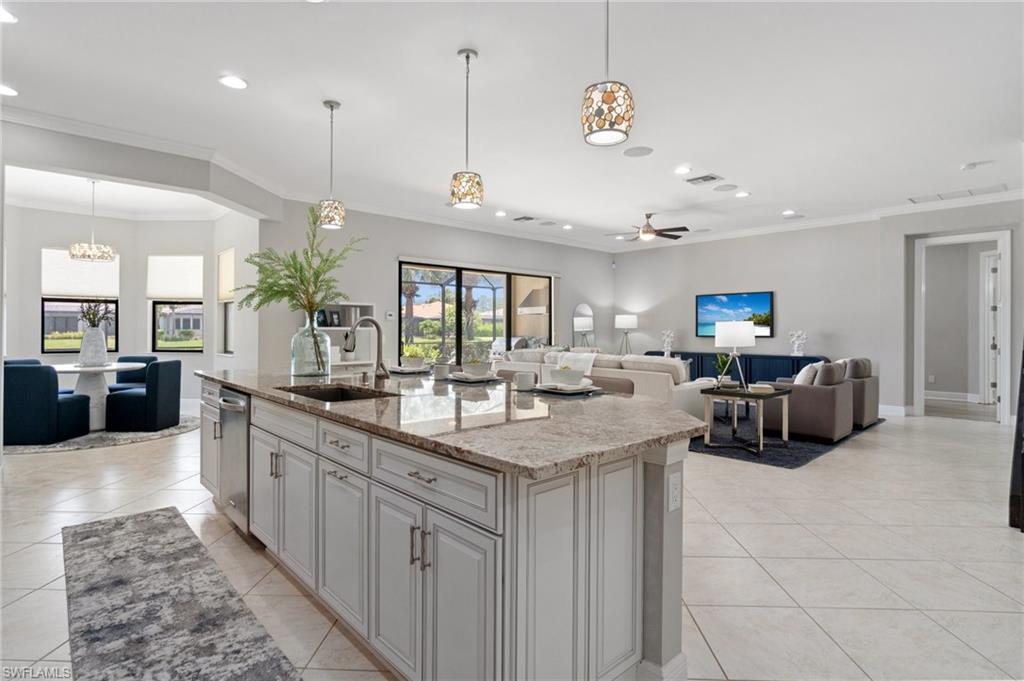 UPDATED, UPGRADED, AND READY TO IMPRESS IN RAFFIA PRESERVE! This beautifully upgraded home in Raffia Preserve offers the perfect mix of comfort, style, and thoughtful design. From the moment you walk in, you’ll notice how every detail has been carefully considered — and it shows. The kitchen is a real highlight: spacious, functional, and made for someone who loves to cook (or just loves a beautiful kitchen)! It features KitchenAid stainless appliances, upgraded cabinetry, sleek granite countertops, a built-in coffee station, and a walk-in pantry that’s been outfitted with custom California Closet shelving to keep everything neat and organized. The downstairs offers the primary suite AND an en suite guest room, as well as versatile office space. Just inside from the garage, there’s a custom-designed drop zone/mudroom — a smart, stylish solution for managing everyday clutter. The primary suite is another standout, with two separate walk-in closets (also customized) and a layout that feels like a true retreat. Flooring throughout the home was chosen with both looks and durability in mind: oversized, 20 inch tile runs on the diagonal through the main living areas, and warm wood-look planks add a cozy touch elsewhere — even on the stairs. Crown molding in every room adds a subtle, upscale finish, while built-in speaker wiring and a central vacuum system offer added convenience. This home was built by WCI, known for their quality and attention to detail, this home offers peace of mind along with everyday luxury, while the Portofino Model is 1 of ONLY 3 of it's kind in the entire community! The home also features impact-rated windows and doors throughout, and a FULL-HOUSE GAS GENERATOR was recently added — connected directly to the main panel to keep the first floor powered when needed. Outside, the backyard is built for entertaining. The builder-installed outdoor kitchen is fully equipped and ready for everything from laid-back weekends to lively gatherings. Raffia Preserve is a gated community with fantastic amenities: a clubhouse with fitness center, resort-style pool, basketball, playgrounds, and walking trails — all just minutes from the best of Naples. If you’re looking for a move-in ready home with all the extras already done, this one is worth seeing.