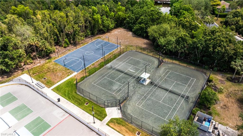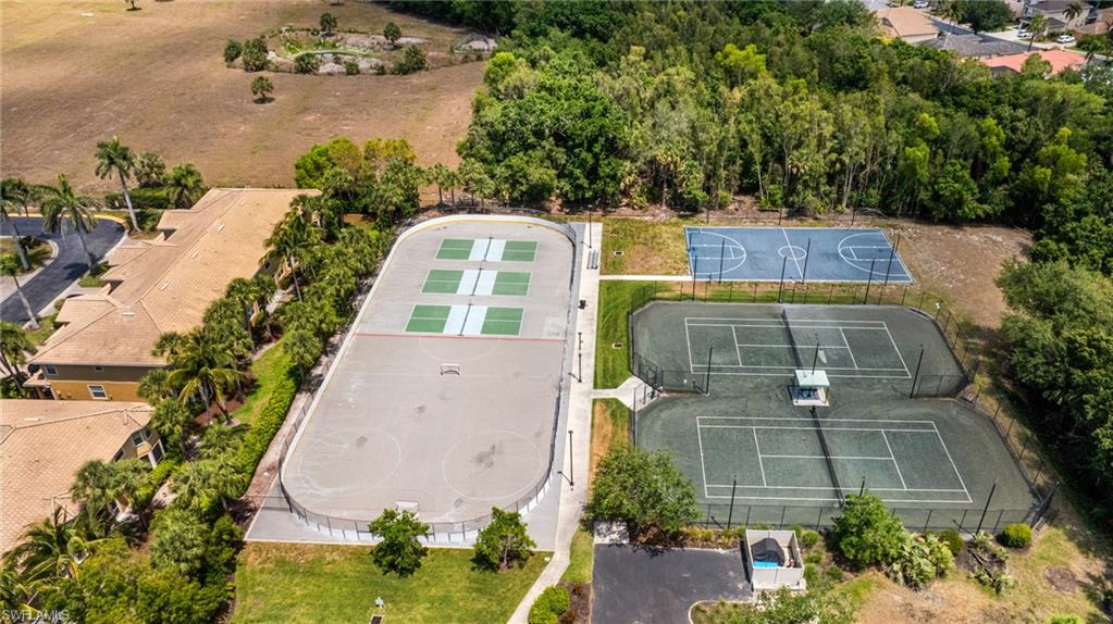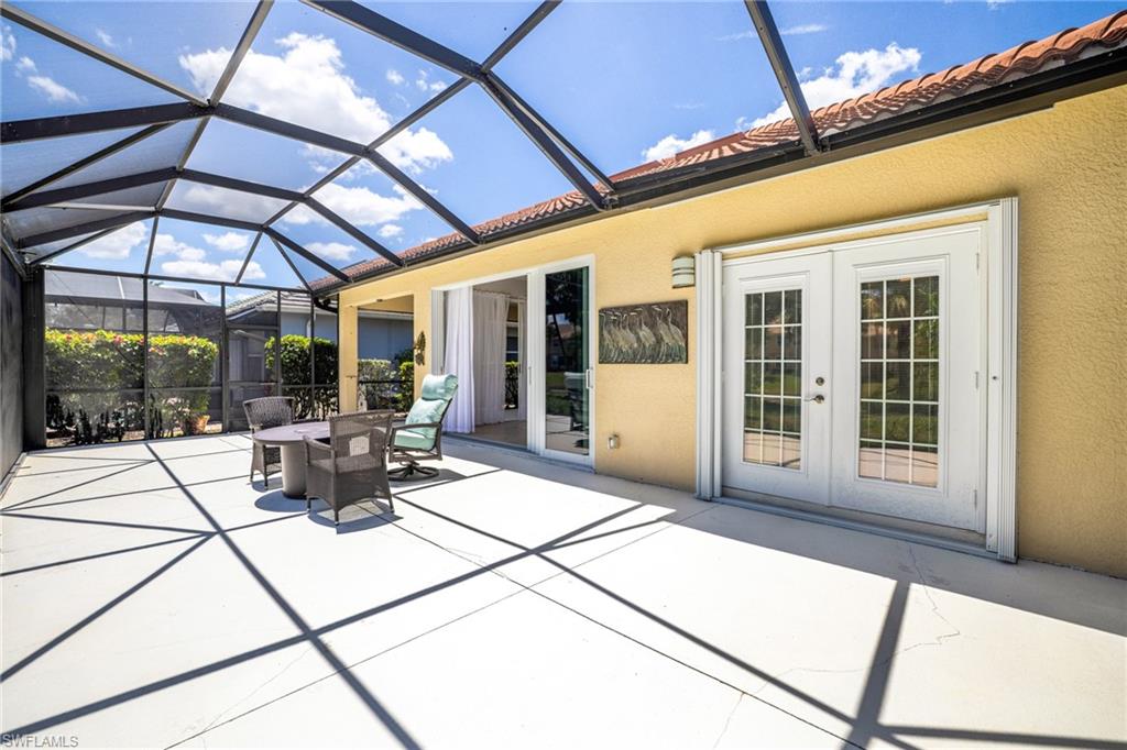Your sunny Southwest Florida search ends here – this is The One! Start with excellent curb appeal, as mature trees and manicured landscaping gives a great first impression to prospective residents and guests alike. Past the garden area, you’ll find the interior to be reminiscent of a model home - from the coastal-themed furnishings to design choices that take full advantage of abundant natural light. Spanning 2076 square feet under air, this immaculately maintained home consists of two bedrooms, a den, two full baths, and multiple common areas. Both bedrooms are spacious, with the guest bedroom significantly larger than those found in Estero’s new construction neighborhoods. The kitchen, modern and stylish, features a natural gas range, stainless steel appliances, and stone counters that accommodate bar seating. Those familiar with Florida Living will appreciate the tile floors in nearly every room, and the garage floor has an epoxy coating that makes cleanup a breeze. Two sets of sliders lead from the dining area to the oversized lanai. The lanai offers the best of both worlds, with a sizable covered section adjoining a much larger area that is complemented by picture window screens offering a panoramic view of the lake & fountain. While there is room for a pool, you may choose to forego the associated maintenance, insurance, and electrical costs in order to preserve such a wonderful space for entertaining friends & family. Speaking of lower insurance costs, this home benefits from a newer roof, hurricane shutters, and an elevation that protected it from water intrusion during the recent storms. Flood insurance is not required, as the structure is not in a flood zone. For those considering a second home in Florida, this is an ideal location - quick access to Southwest Florida International Airport for your family and friends. Rookery Pointe is a gate-secured community conveniently situated near popular upscale & casual attractions. You’ll be minutes from shopping, dining, and entertainment. Close proximity to the expressway means that trips to Naples and Sarasota are a breeze. When you visit, make sure to tour the resort-style amenities that include an exercise room, community pool, pickleball, and tennis. Association fees are low and include cable & internet, irrigation water, and lawn care. This is one of the rare Estero developments without an annual CDD assessment on the tax bill. Make your offer with confidence – an “As-Is” contract is not required. Furnishings are negotiable. Although this home must be seen in person to be appreciated, the 3D virtual tour may tide you over for now!