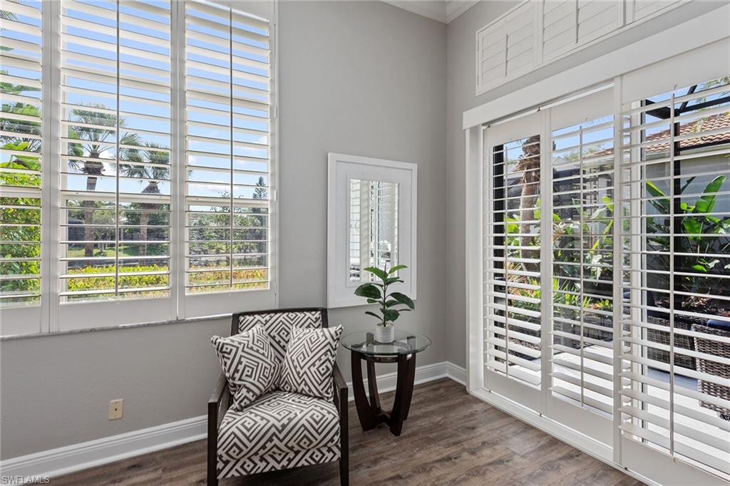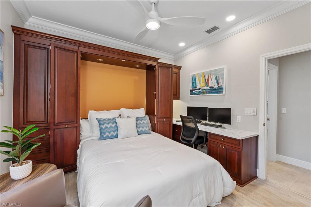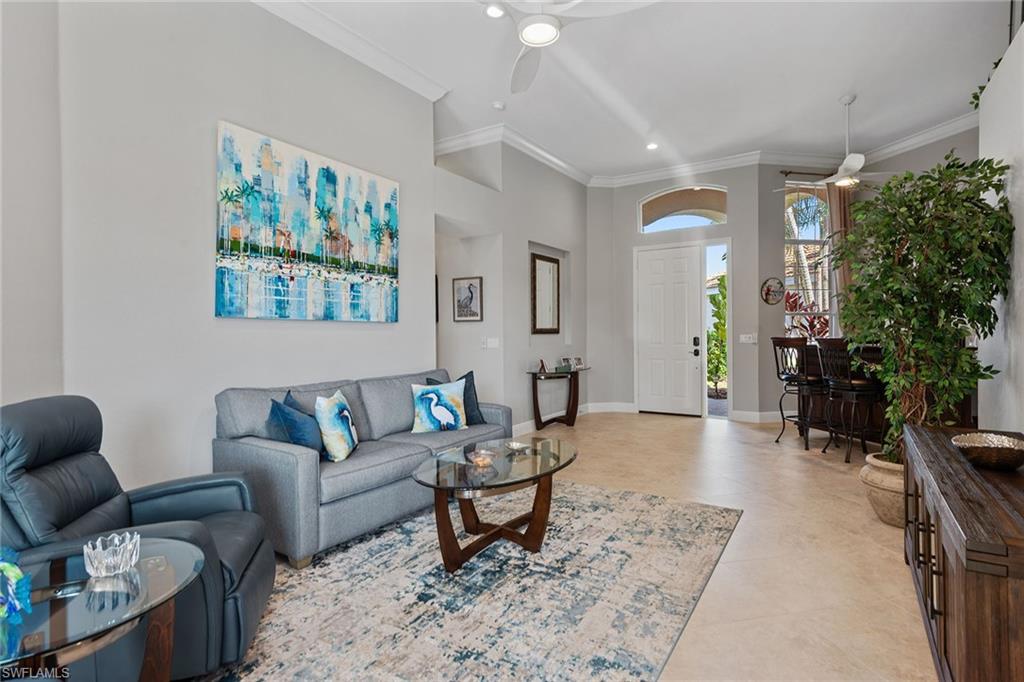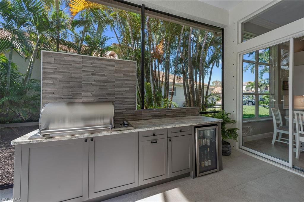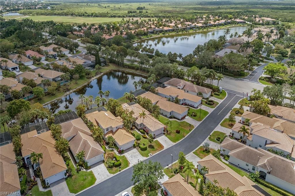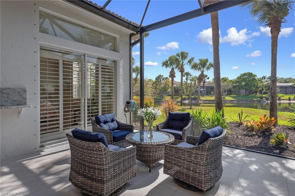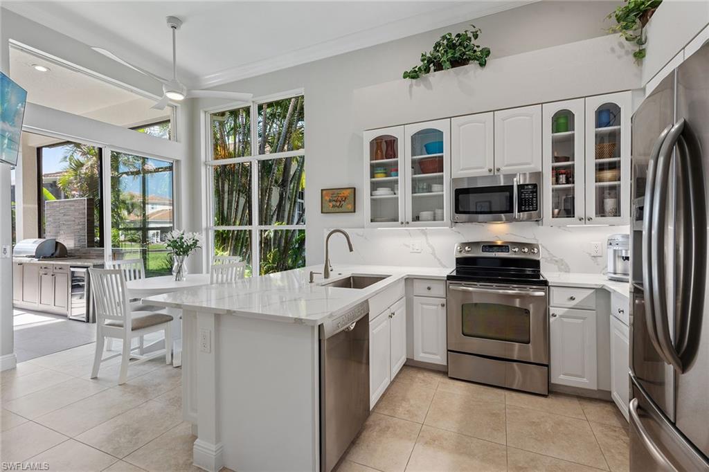 Dreaming of serene lake views, breathtaking sunrises and resort-style living? This beautifully furnished three-bedroom, two-bath home in Pepper Tree at Fiddler’s Creek offers it all, including a split-bedroom layout for privacy and a no-see-um screened lanai framing tranquil water vistas. Ideally near the award-winning Club & Spa and gatehouse, this residence combines peaceful outdoor living with refined interior finishes in one of Naples’ most prestigious communities. Quality built by Gulf Bay. The interior features diagonal tile flooring, volume ceilings, crown molding and modern ceiling fans throughout. The open kitchen is tastefully updated with white modern cabinetry, quartz countertops and backsplash, pantry, under-cabinet lighting, recessed lighting, a single-vessel undermount sink and stainless appliances, including a French-door refrigerator, range, microwave and Bosch dishwasher. A breakfast bar offers casual seating, while the adjacent dining area overlooks lush gardens through a large picture window and provides direct lanai access. Light and airy, the living room includes recessed lighting and glass sliders that open to the lanai, blending indoor and outdoor spaces. The primary suite is a tranquil retreat with lake views, double-door entry, white plantation shutters, lanai access, and custom walk-in closets with built-ins. The en-suite bath is beautifully updated and features a dual-sink quartz vanity, frameless glass walk-in shower with bench, soaking tub, privacy window and linen closet. The guest wing includes two bedrooms—one set up as a home office with built-in cabinetry and Murphy bed—plus an updated full bath with walk-in shower. The screened lanai is ideal for entertaining, offering tile flooring, an updated outdoor kitchen with stone backsplash, built-in barbecue and beverage refrigerator, counter space and wide lake views. Additional features include storm shutters, painted garage floor, newer tankless water heater, washer and dryer, and wood-look LVT flooring in all bedrooms. A new tile roof under one year old adds value and peace of mind. There’s even room to add a pool. Residents of Fiddler’s Creek enjoy a world-class lifestyle with a resort-style Club & Spa featuring indoor and poolside dining, full fitness center with classes and trainers, resort pools, spa, hot tub, sauna, steam room, bocce, tennis, pickleball and year-round events. Optional memberships are available for The Tarpon Club (beach/marina) and The Creek Golf Course with a new clubhouse and renovated course. Nearby are everyday conveniences such as Publix, salon, urgent care, and a new health café/store—plus easy access to Marco Island, downtown Naples, shopping, dining and executive airport.
