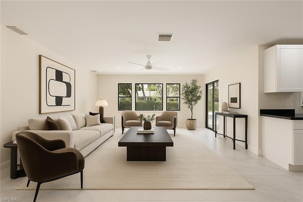 Brand NEW ROOF with 50-yr warranty shingles just installed in September 2025 and fresh neutral/white exterior paint in October 2025 and NO price increase! So centrally located near everything Naples has to offer! Hop on your boat from your backyard to the Gulf via the wide-open legendary Gordon River! The all-new bright OPEN kitchen has gorgeous views across your sparkling new pool to the canal, and features granite counters, new white shaker cabinetry, and new stainless Samsung appliances. This floorplan offers tremendous flexibility to suit your lifestyle including a large primary suite with new bathroom and oversized walk-in closet with wood built-ins, and boasts its own den/office or exercise area and lanai access. Plenty of room for family here with 2 large guest bedrooms and a newly renovated guest bath with linen closet, enclosed by its own pocket door for guests' privacy, and nicely separated on the other side of the house from the primary suite. All beautiful new designer tile flooring throughout the home! The pool was completely redone with all new concrete/tile in 2022; the lanai was rescreened in 2019. AC is 2022 (compressor and ductwork) and 2019 (air handler). The systems in this home are essentially new including 2024 water heater, home completely re-piped (2023), electrical panel 2024, new driveway 2022, and new fans and LED lighting. Home priced to sell almost $200K below attached April 2025 appraisal! Feb. 2025 4-point inspection done for you and attached, although completed prior to new roof. Coconut River Estates has no rental restrictions and is one of Naples' best-kept secrets, and is 10-12 minutes from beautiful beaches, renowned 5th Ave./3rd St. or Mercato or Waterside shopping and dining, or 5 minutes from scenic Naples Greenway biking/hiking! There are more and more Coconut River Estates homes valued well over $1-$2 million. VOLUNTARY HOA fee of $450/year is optional, and the amenities and activities are amazing, including a large heated pool, 4 pickleball courts, tennis, shuffleboard, basketball, clubhouse, playground, community boat dock, dog park, storage for boat trailers or kayaks/canoes, and activities such as tennis lessons, concerts and a family-friendly holiday parade! Note, many other homes in Coconut River do NOT offer boat access from your lot to the Gulf. So come make this YOUR new slice of PARADISE!