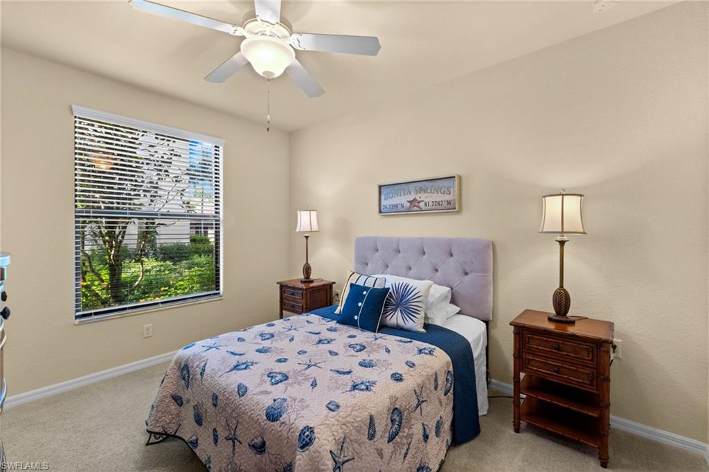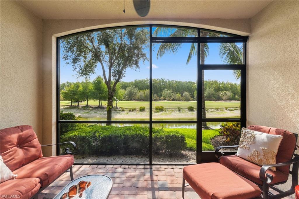 GOLF MEMBERSHIP INCLUDED! Welcome home to this highly sought after, TURNKEY FURNISHED, first floor, end unit, "Arabella" floor plan, located in the popular gated community of Bonita National Golf and Country Club! This 2+den, 1549sf unit features a water, golf and preserve view! There are two lanais and a one car garage, this unit checks all the boxes! Bonita National has a 18 hole, Gordon Lewis designed course, eight Har-Tru tennis courts, formal clubhouse dining and a very popular poolside cafe, lap pool, resort pool, hot tub and full service spa! Pickleball and Bocce will soon be added. Bonita National is conveniently located between Naples and Fort Myers. Just 12 minutes to north Naples and 25 minutes to RSW Airport in Ft Myers and a quick drive to the soon to be built Midtown Bonita. Bonita National is not located in a flood zone! Furniture in den is a murphy bed.