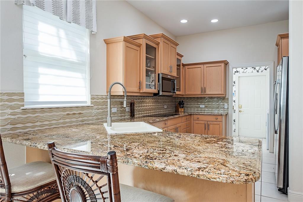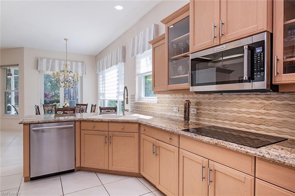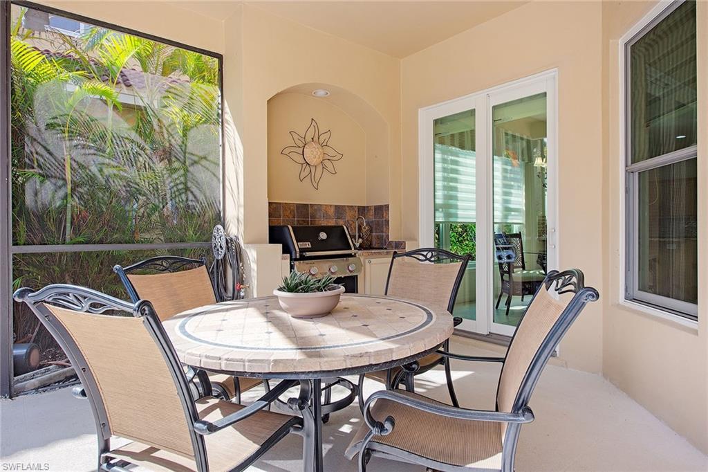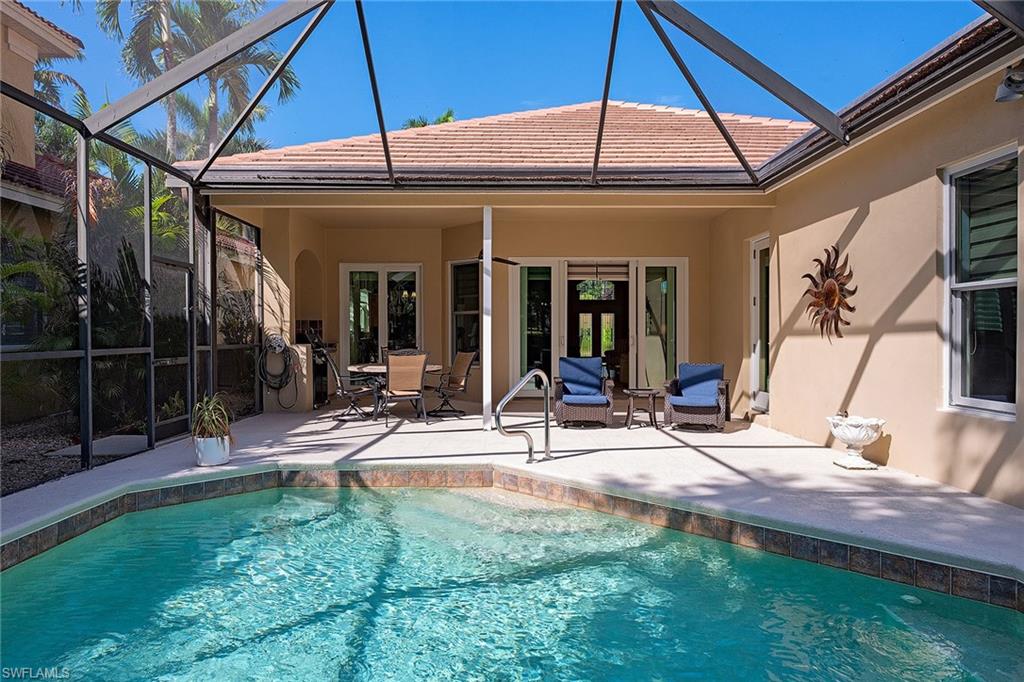 Experience serene luxury in this beautifully maintained residence, in one of Pelican Marsh's private and sought-after enclaves. Recent upgrades provide modern comfort and peace of mind, including a new tile roof, refrigerator, HVAC system, impact-resistant windows and doors, and a buried 500-gallon propane tank with a whole-house generator. Go through sliding glass doors onto your private lanai, where a sparkling pool and fully equipped outdoor kitchen create the setting for relaxation and entertaining. Lush tropical landscaping surrounds the outdoor space, offering a tranquil atmosphere and a sense of privacy. Boasting over 2,000 square feet of refined living space, this exceptional home offers two generously sized bedrooms, two full baths, a versatile den ideal for a home office or guest space, and a spacious two-car garage. Pelican Marsh offers a community center with restaurant, staffed fitness, playground, massage facilities, meeting rooms, bocce, tennis and pickleball.
