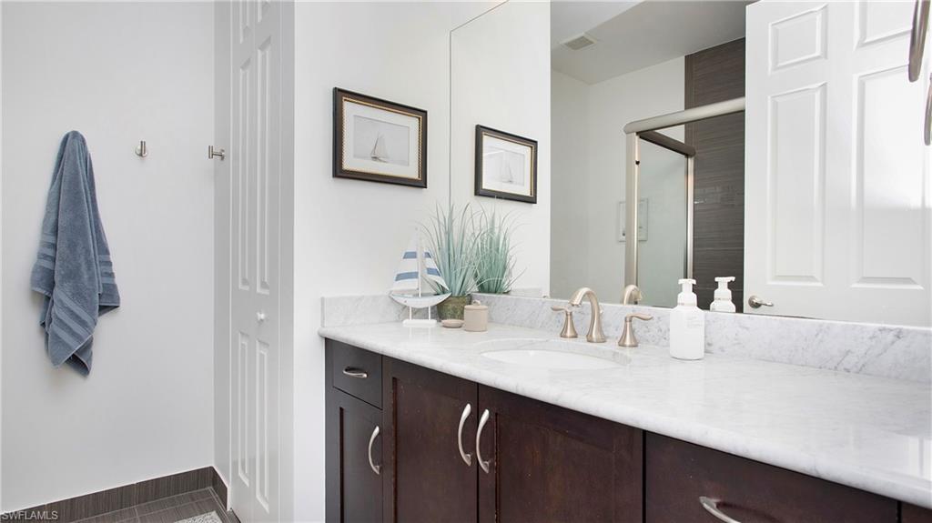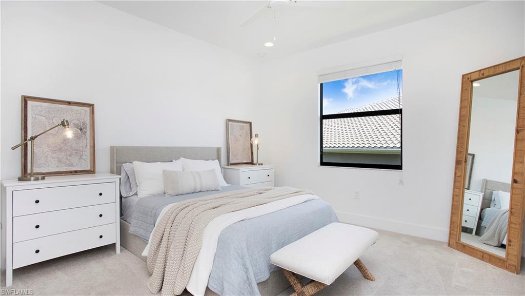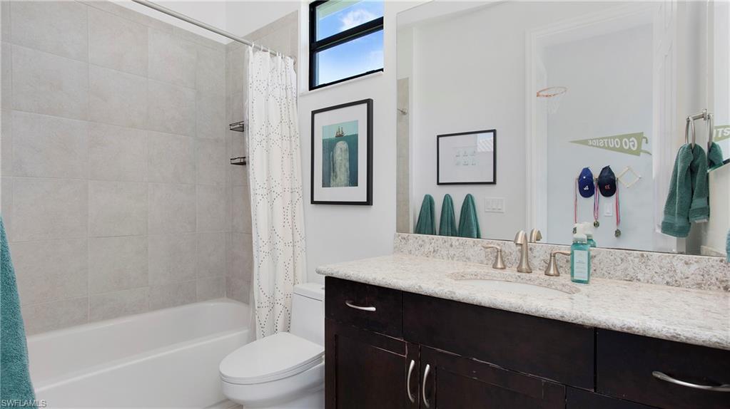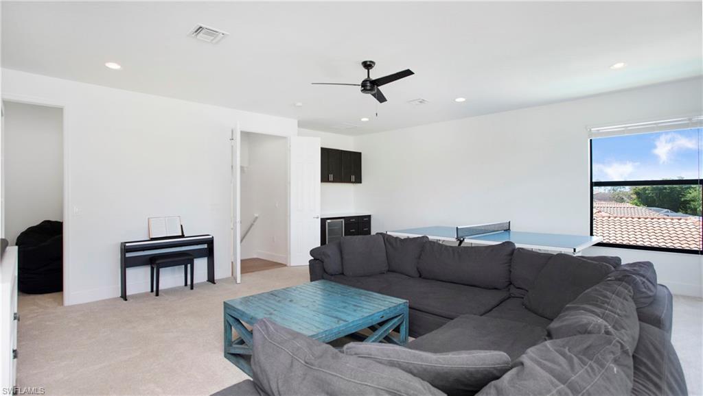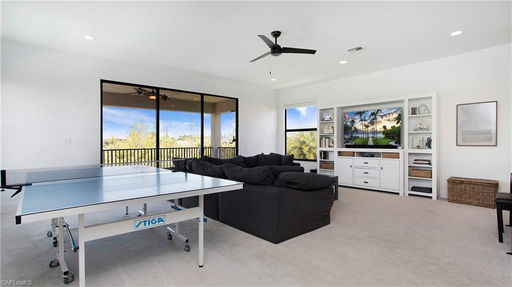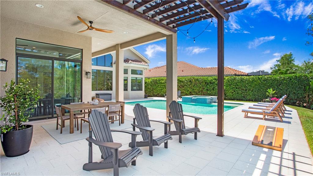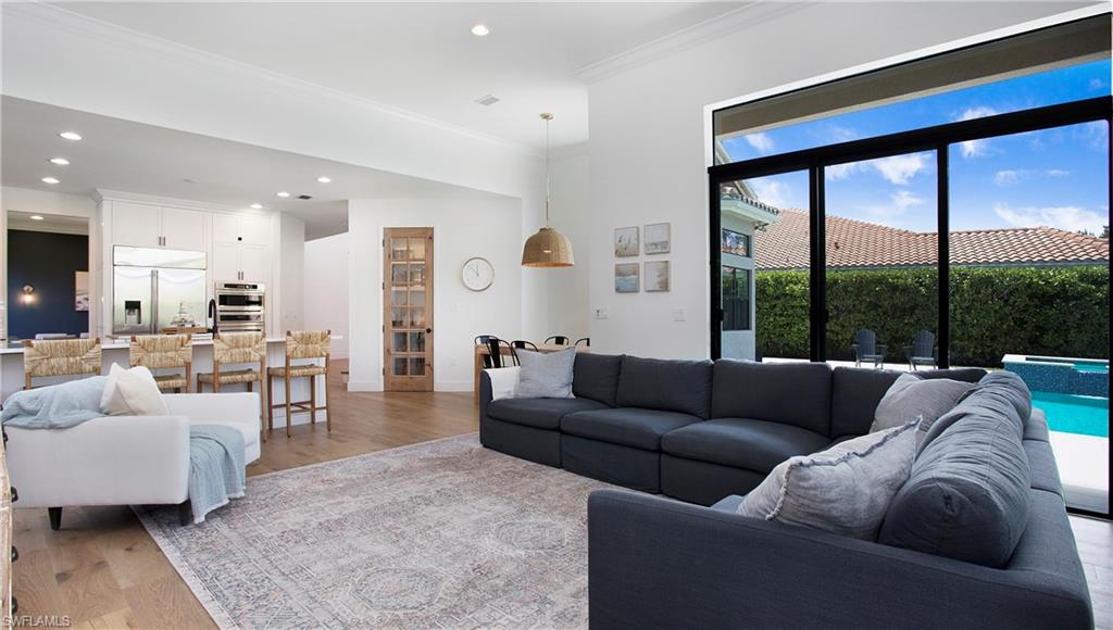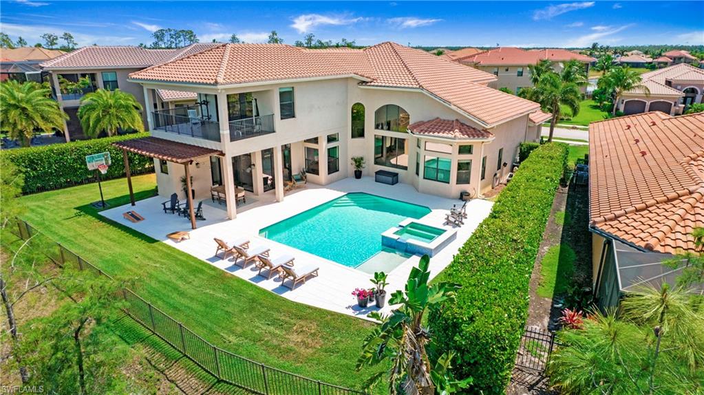 Discover the pinnacle of luxury living with the largest floor plan available in Riverstone of Naples. The Dubonnet Grande model seamlessly blends style, elegance, and functionality, offering a home that has been meticulously remodeled with exceptional attention to detail. As you enter, you are greeted by a grand foyer and soaring volume ceilings, with natural light cascading into the family room through expansive picture windows. The kitchen is a culinary masterpiece, featuring custom cabinetry, a functional island, GE Monogram appliances, glass front cabinets and stunning quartz countertops, all reminiscent of a magazine showroom. The pantry is a marvel, with its glass French door entry, subway tile backsplash, butcher block counters, and custom shelving designed to optimize every nook. The main living areas boast engineered hardwood flooring, enhanced with a thicker veneer for added durability and humidity resistance. The entryway leads to a mud/laundry room equipped with custom gray cabinets and a convenient bench seat. The crown jewel of the ground floor is the primary suite, featuring grand bay windows and a luxuriously remodeled primary bath that promises a spa-like retreat. Step outside to a vast, private outdoor space. Clusia hedges lined with fencing offer seclusion, while the preserve and trellis in the rear create the perfect backdrop for the western exposure. The pool area is a haven, with natural shell inlay pavers that stay cool underfoot, a smartly designed pool with a sun shelf, and a hot tub with a drip edge overlook. Ascend the grand staircase, accentuated with white risers, to reach the open loft/den area, which can be enclosed for an office. A few steps lead to the versatile bonus/media room, complete with built-in cabinets and a mini-fridge. The second floor also includes an open balcony, perfect for crafting your own Southwest Florida paradise, as well as three additional bedrooms and two and a half baths. Further enhancements include crown moldings throughout most of the home, three separate HVAC systems for personalized comfort, a 50-amp breaker for a generator, and a 240-amp breaker for your electric vehicle. This impeccably designed home is ready for you to move in and start living the dream.