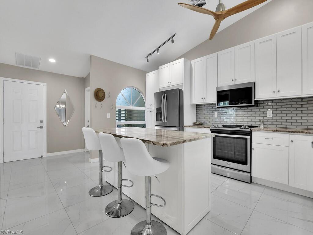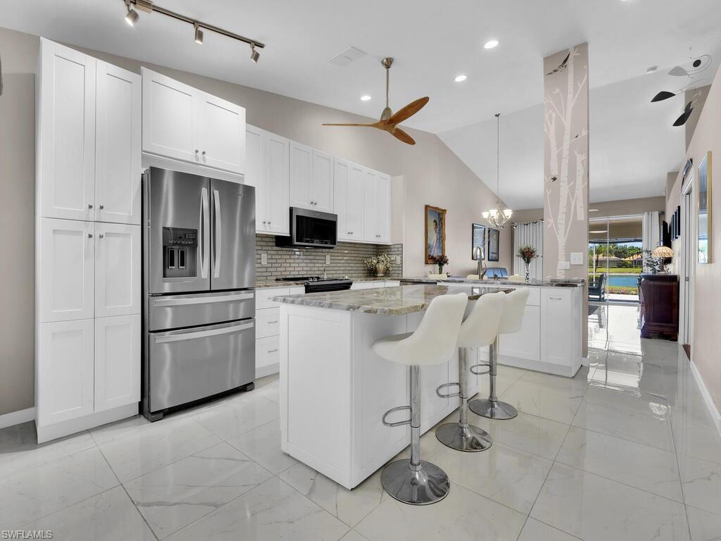 Don’t miss this exceptional opportunity to own a beautifully updated 3-bedroom, 2-bathroom villa with an attached 2-car garage in the highly desirable Palomino Village at Lely Resort. This rarely available property boasts serene lake views from the extended lanai, an ideal open floor plan, and numerous upgrades that make it truly move-in ready. Enjoy cooking and entertaining in the remodeled kitchen featuring modern finishes, large island, quart countertops and stainless steel appliances. Both the primary and guest bathrooms have also been stylishly updated. Major peace-of-mind updates include a complete repipe in April 2025 to remove polybutylene piping and a new tile roof in 2019. This villa is located in a non-flood zone, with extremely low HOA fees, and access to a community pool. For those seeking more amenities, an optional membership to the renowned Players Club & Spa is available. Lely Resort offers two top rated public golf courses, as well as an exclusive private membership course. Palomino Village is perfectly situated just a short drive from Downtown Naples and the white sand beaches of Marco Island, offering the best of Southwest Florida living. Whether you’re looking for a full-time residence or a winter getaway, this villa checks all the boxes. Schedule your private showing today!