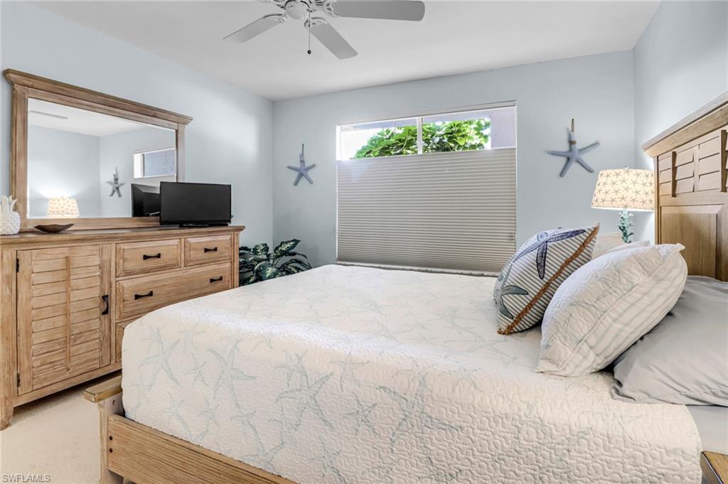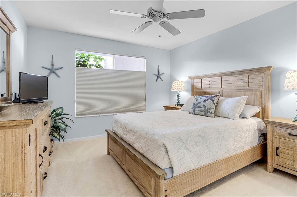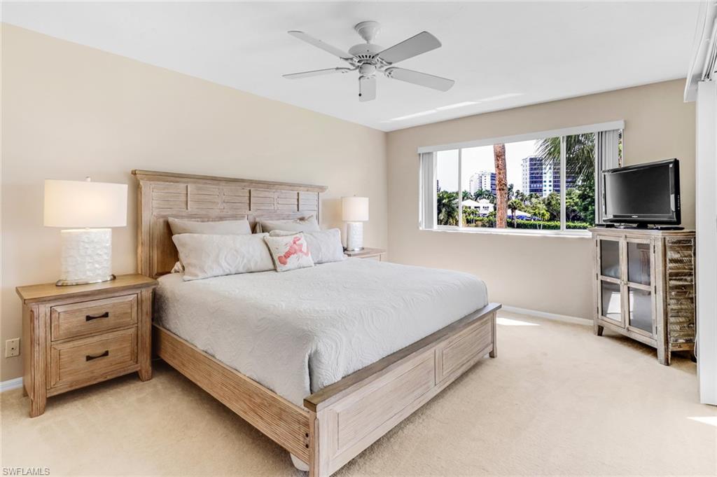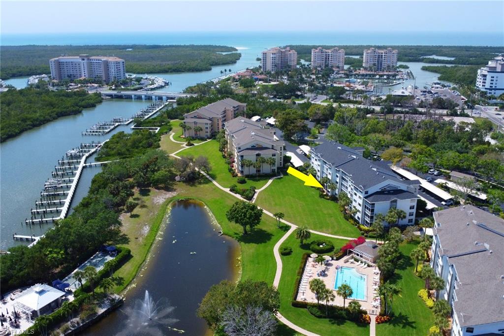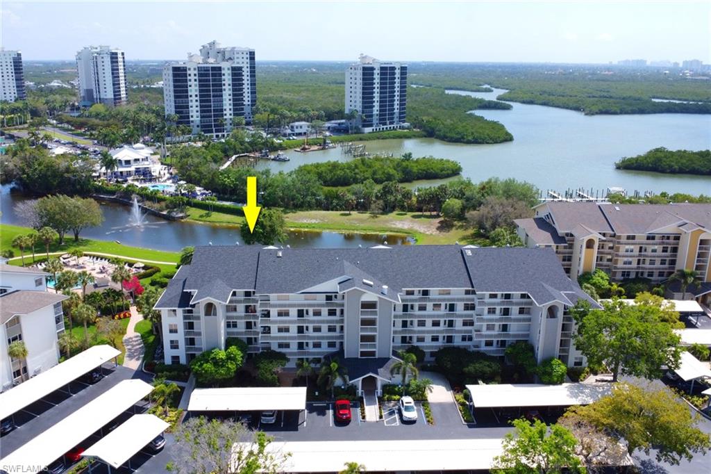 Nestled off of Wiggins Pass Road you will find the highly sought after community of Princeton Place with luscious landscaping, walkways and quiet sitting areas. Offering a perfect blend of comfort and convenience, this light-filled turnkey condo features a spacious open floor plan with serene views and tasteful finishes throughout. The kitchen boasts ample cabinetry with an eat in kitchen & plenty of natural light flowing through. Seamlessly connecting to the dining and living areas—ideal for entertaining or relaxing. The primary suite offers a peaceful retreat with a walk-in closet and a private en-suite bathroom, while the guest bedroom and second full bath provide comfort and privacy for visitors. Enjoy the tranquil Florida sunrise from your lanai overlooking the pond with captivating bay views. The building has been recently painted, new roofs, newly renovated elevators, new pipes throughout the unit and all assessments paid by owner. Community pool with a grilling area and bathhouse in close proximity and easy access to a parking spot right in front under the carport. Optional membership to the Tarpon Cove Yacht & Racquet Club, a private club offering amenities such as tennis, a fitness facility, dining and many social events. It also has a daily boat shuttle to the beach. Boat docks have been replaced and can be purchased or rented if available. Also across the street from the new Kinsale Golf Club, a newly designed world-class golf course. Located just minutes from Barefoot Beach, Mercato, and Downtown Naples, this condo offers the best of Southwest Florida living—whether you're seeking a year-round home, vacation getaway, or investment property. Don't miss this rare opportunity—schedule your private showing today!