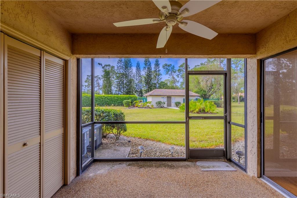 Enjoy the perfect blend of tranquility and convenience in this charming end unit with beautifully landscaped views all year long. The walk-in closet and storage locker are great for all your storage needs. It's also a bonus to have the covered parking! Grab your towel because just steps from your patio door awaits the blue sparkling pool which boasts plenty of privacy because of the mature landscape. Enjoy piece of mind knowing you have a newer roof as well. This community is all about relaxing! You're just minutes from downtown Naples and the famous Naples Pickleball Center! This is a must see! Schedule your showing today!