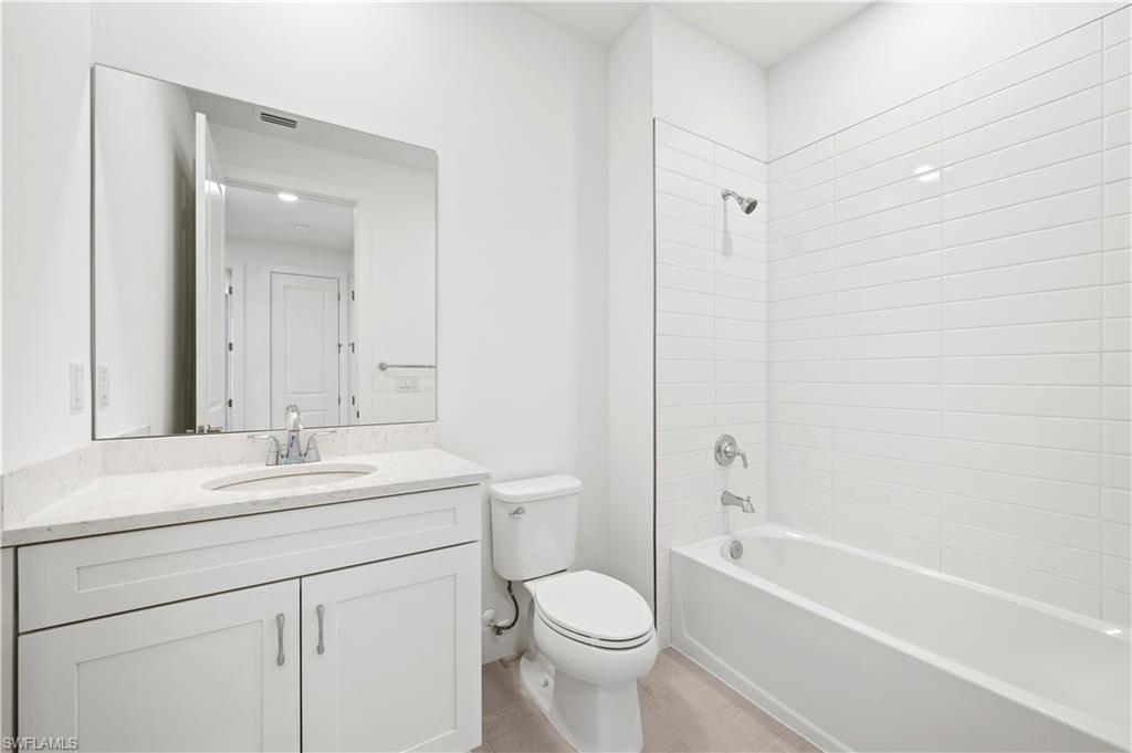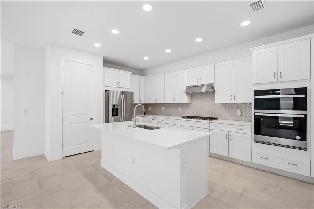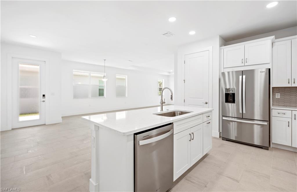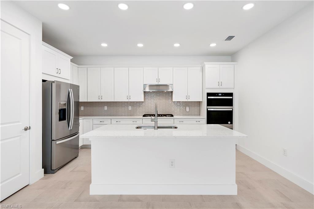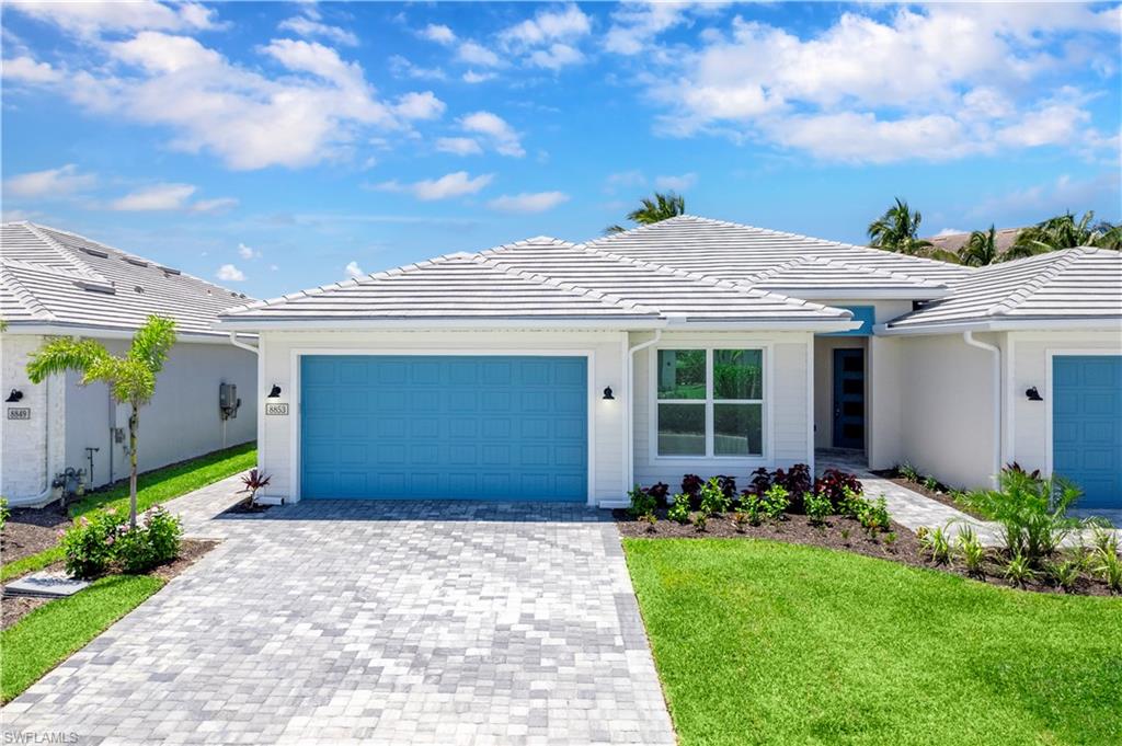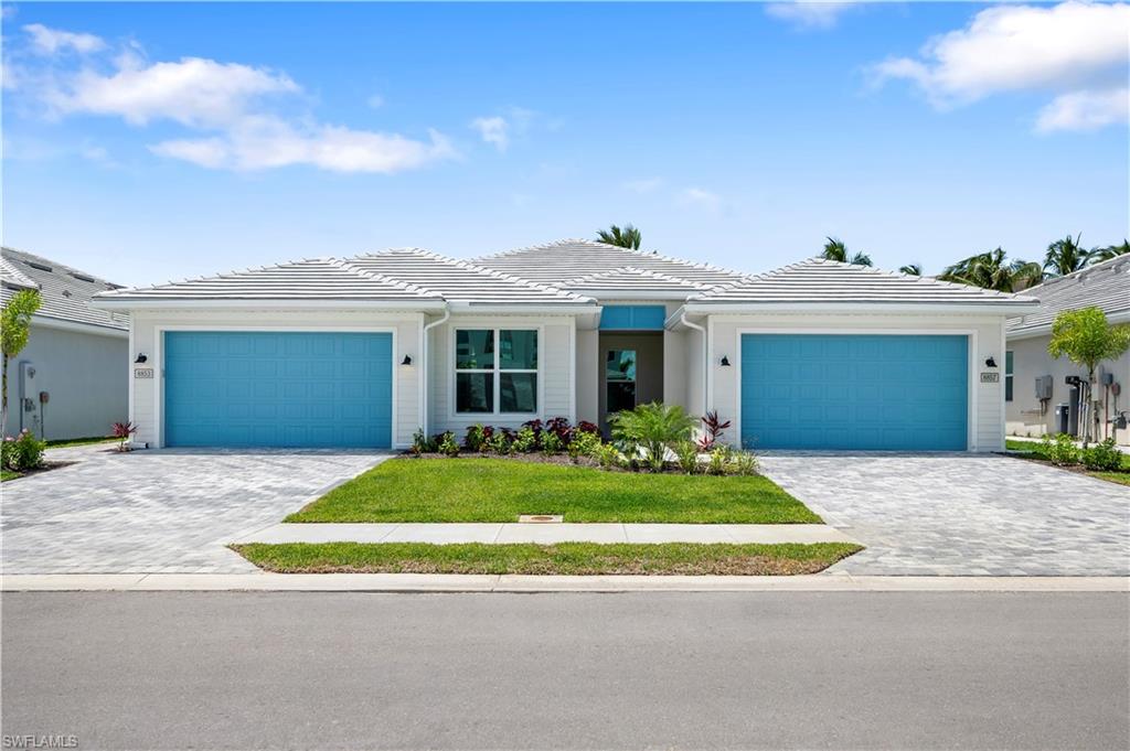STUNNING, MOVE-IN READY, NEW CONSTRUCTION VILLA IN NAPLES, FL GATED COMMUNITY Welcome to your dream home in one of Naples' premier gated communities! This beautifully crafted new construction paired villa offers the perfect blend of luxury, comfort, and convenience — all just a short walk from the community’s full amenity center. Step inside to discover a bright open-concept floor plan designed for modern living, complete with a spacious great room, casual dining area, and an upgraded kitchen that’s ideal for entertaining. The chef-inspired kitchen features quartz countertops, soft-close cabinetry, a stainless steel farmhouse sink with a pull-down faucet, and a suite of Whirlpool stainless steel appliances, including a gas cooktop and vent hood. A large center island offers plenty of prep space and serves as the perfect gathering spot for guests. This home offers three spacious bedrooms, two beautifully appointed bathrooms, and a two-car garage with an epoxy-coated floor. You'll love the tile flooring throughout—with no carpet in any room for easy maintenance and a sleek finish. The primary suite is a true retreat with an elegant tray ceiling, a spa-like bathroom featuring dual vanities, quartz countertops, a luxurious walk-in shower, and a generously sized walk-in closet. Guest bedrooms are equally well-sized, offering large closets and a shared full bathroom. Step outside to enjoy a professionally landscaped outdoor living space with room to add a custom pool after closing—perfect for relaxing or entertaining under the Florida skies. This exceptional home offers the best of Florida living with style, comfort, and access to incredible amenities—all just minutes from Naples’ finest dining, shopping, and beaches. Schedule your private tour today! Please see MLS Supplements for interior design selections/floor plan layout.