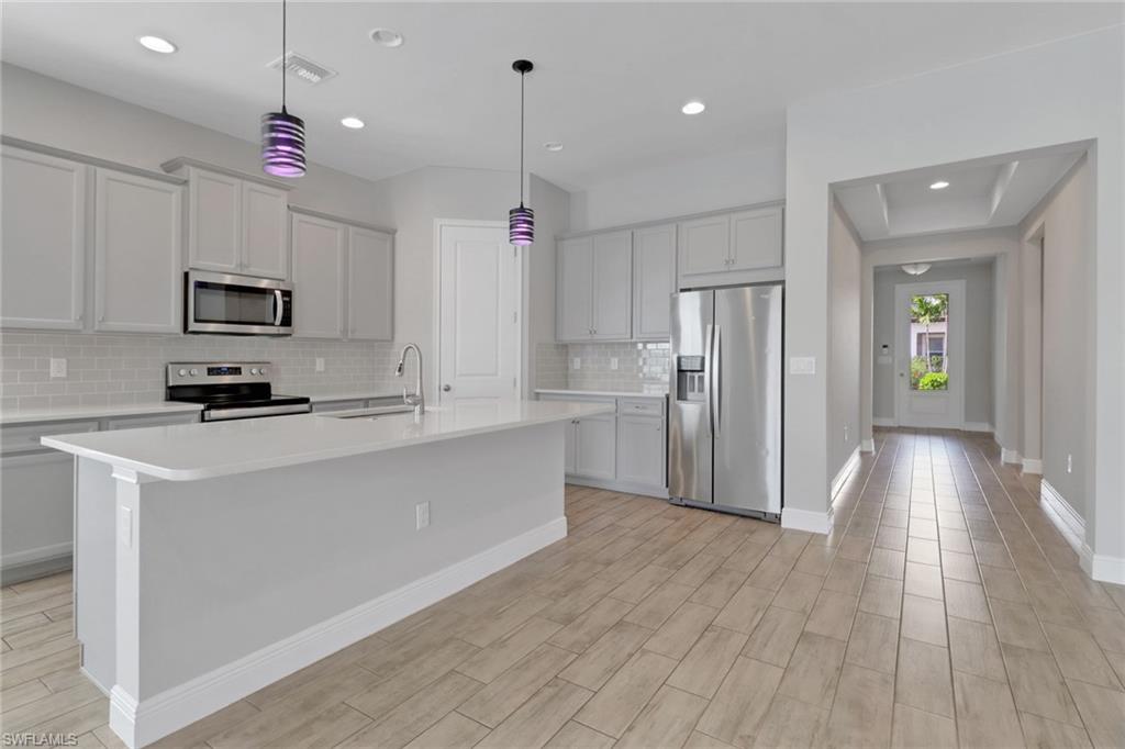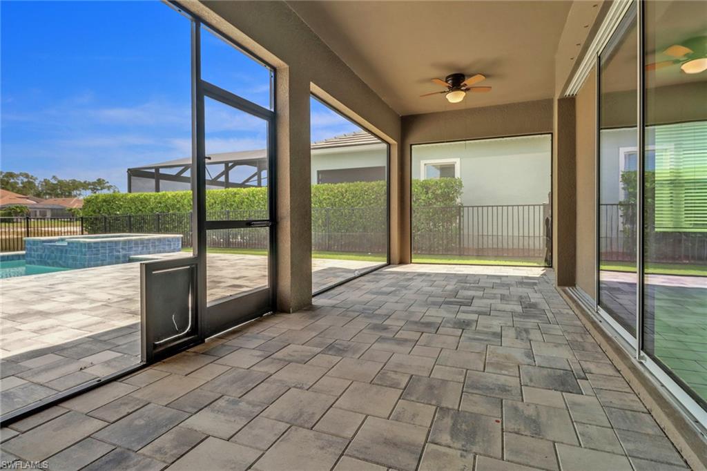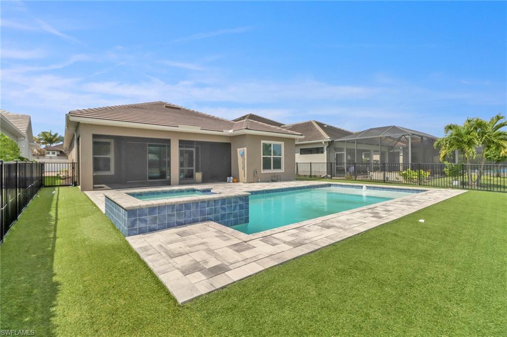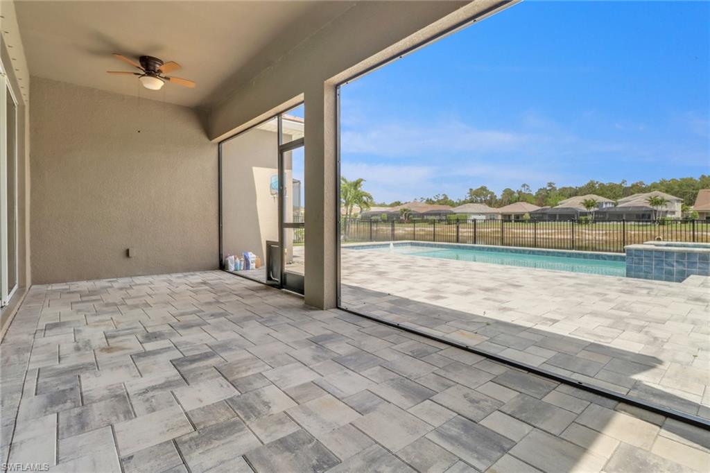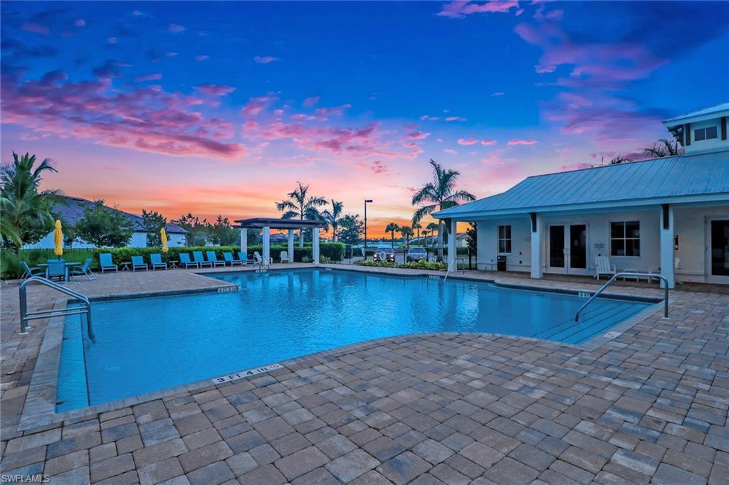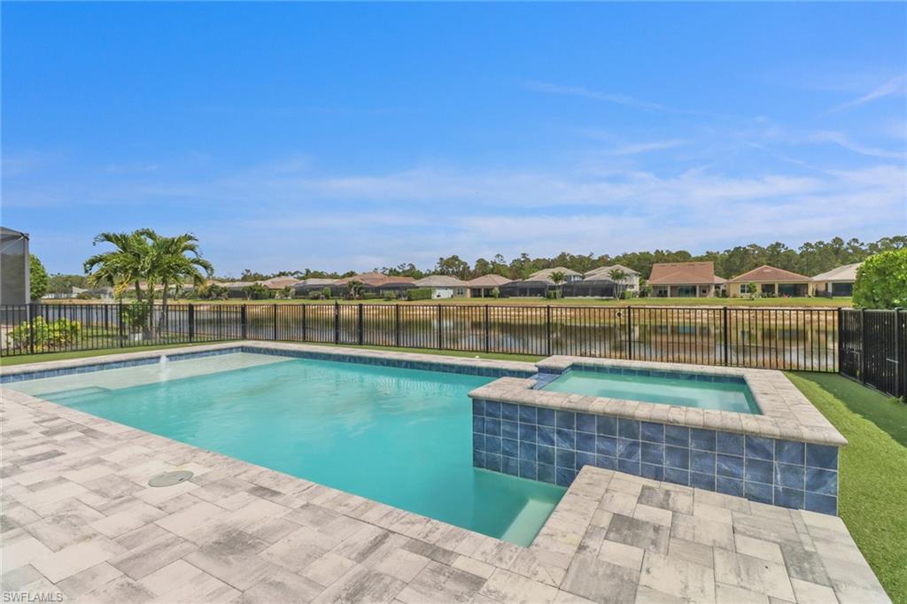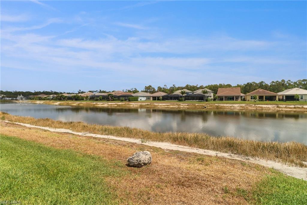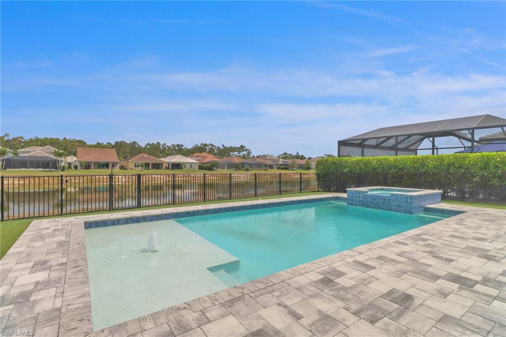 Welcome to luxury living in Compass Landing, a sought-after, amenity-rich community in the heart of Naples with low HOA fees and no CDD. This exceptional residence offers the rare four-bedroom, three-bath layout—one of the most desirable floor plans by the builder—designed to accommodate both comfort and style. Soaring ceilings enhance the sense of space, while an abundance of natural light showcases the home's refined upgrades. Positioned on a tranquil lakefront lot, the home boasts a private, custom-designed pool and spa that create a serene backyard oasis. Imagine relaxing poolside while enjoying panoramic water views—an everyday luxury that makes this property truly special. Inside, a stunning gourmet kitchen anchors the open-concept living area and features stainless steel appliances, quartz countertops, sleek cabinetry, and elegant pendant lighting. The expansive great room flows effortlessly into the screened lanai, ideal for both entertaining and quiet evenings at home. The spacious bedrooms offer plush carpeting and plantation shutters, with the primary suite offering a spa-inspired bathroom and a generous walk-in closet. Each bathroom is impeccably appointed with modern fixtures, and timeless finishes. Why wait for new construction when this move-in ready home is available now—already complete with high-end upgrades, landscaping, and a premium location? Come experience elevated living in one of Naples’ most welcoming gated communities, just minutes from white sand beaches, shopping, dining, and A-rated schools.