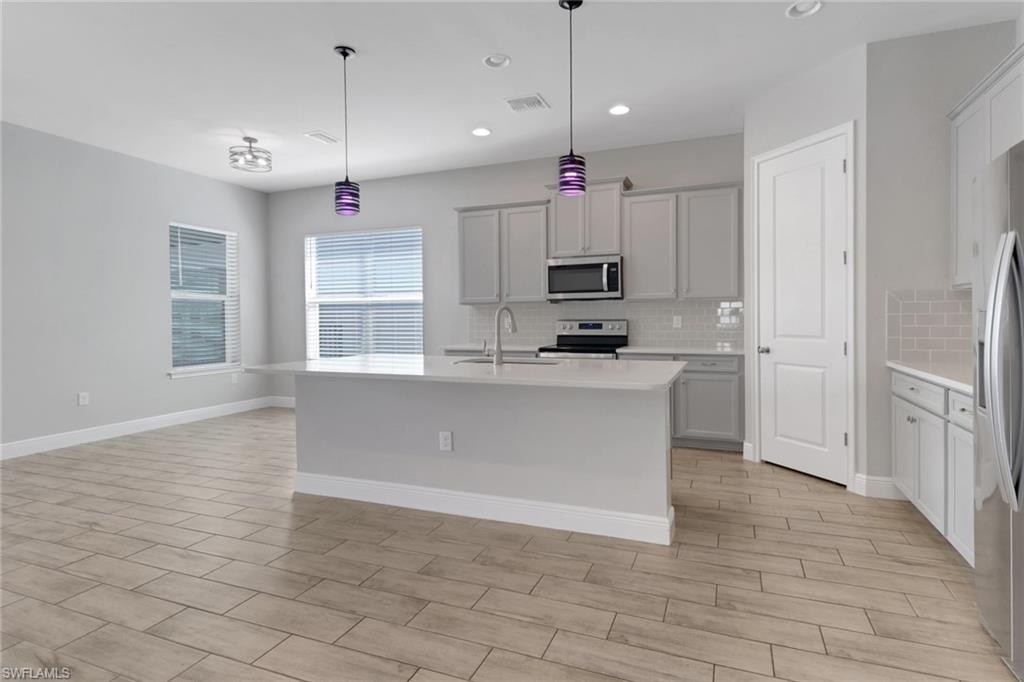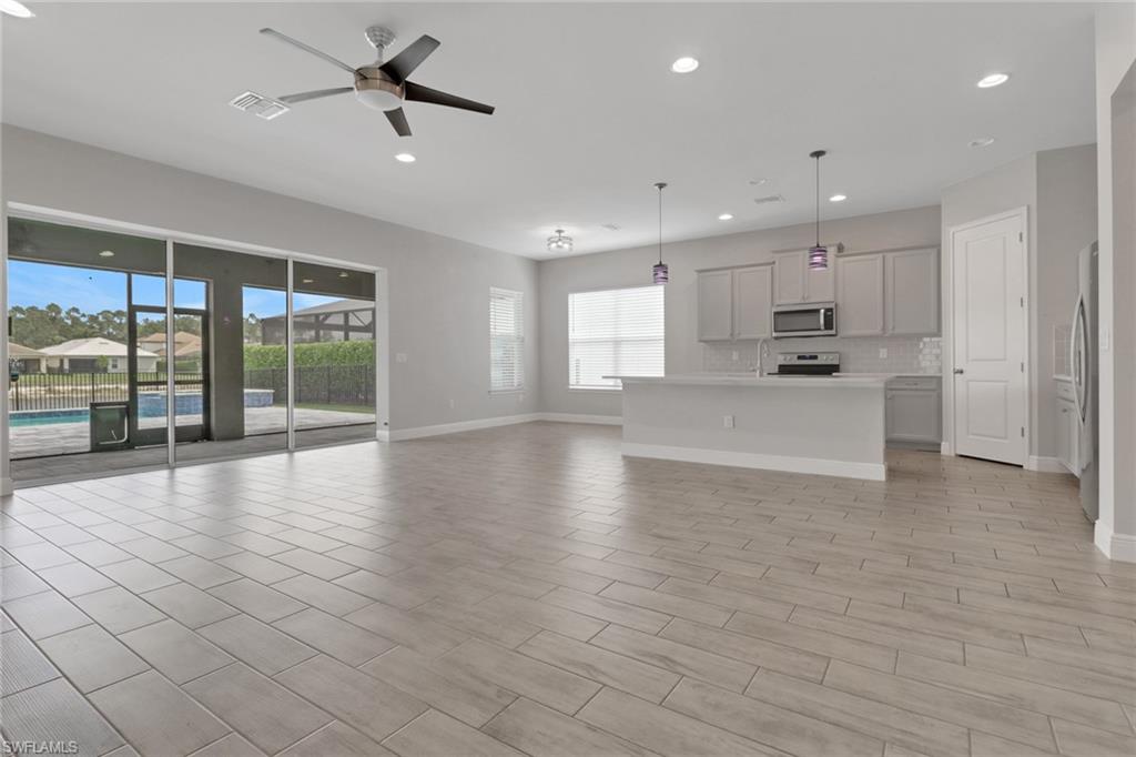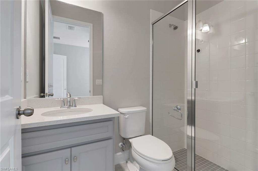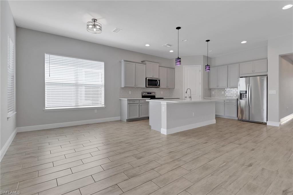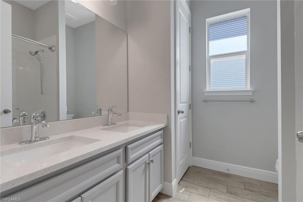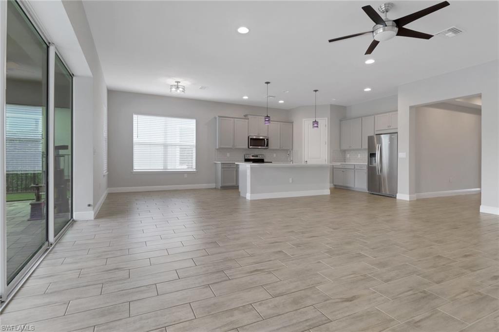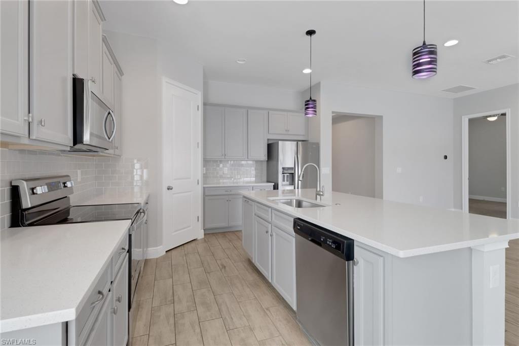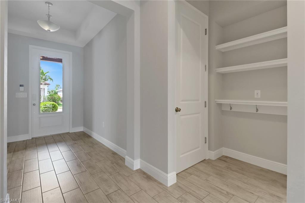 Welcome to luxury living in Compass Landing, a sought-after, amenity-rich community in the heart of Naples with low HOA fees and no CDD. This exceptional residence offers the rare four-bedroom, three-bath layout—one of the most desirable floor plans by the builder—designed to accommodate both comfort and style. Soaring ceilings enhance the sense of space, while an abundance of natural light showcases the home's refined upgrades. Positioned on a tranquil lakefront lot, the home boasts a private, custom-designed pool and spa that create a serene backyard oasis. Imagine relaxing poolside while enjoying panoramic water views—an everyday luxury that makes this property truly special. Inside, a stunning gourmet kitchen anchors the open-concept living area and features stainless steel appliances, quartz countertops, sleek cabinetry, and elegant pendant lighting. The expansive great room flows effortlessly into the screened lanai, ideal for both entertaining and quiet evenings at home. The spacious bedrooms offer plush carpeting and plantation shutters, with the primary suite offering a spa-inspired bathroom and a generous walk-in closet. Each bathroom is impeccably appointed with modern fixtures, and timeless finishes. Why wait for new construction when this move-in ready home is available now—already complete with high-end upgrades, landscaping, and a premium location? Come experience elevated living in one of Naples’ most welcoming gated communities, just minutes from white sand beaches, shopping, dining, and A-rated schools.