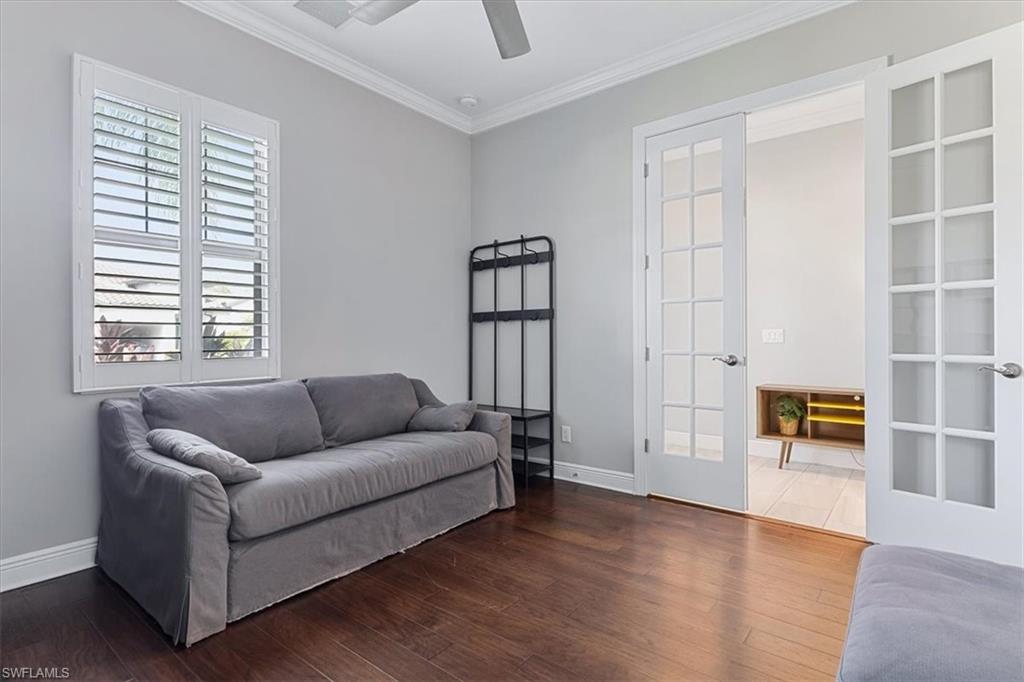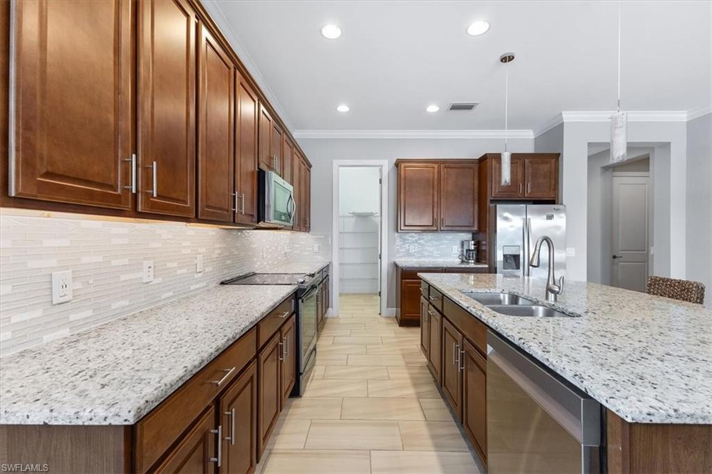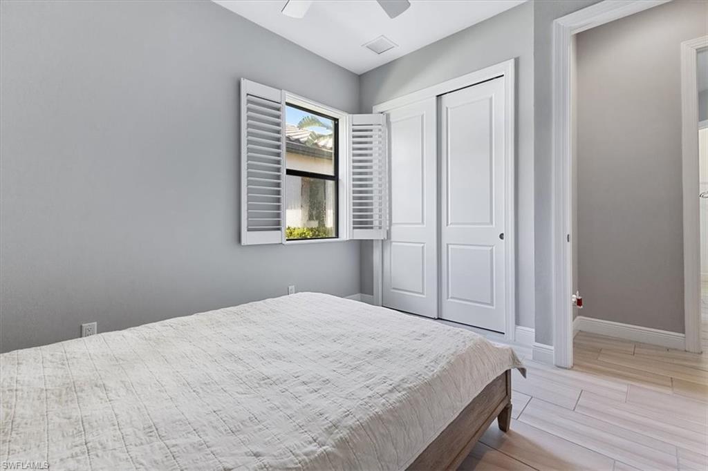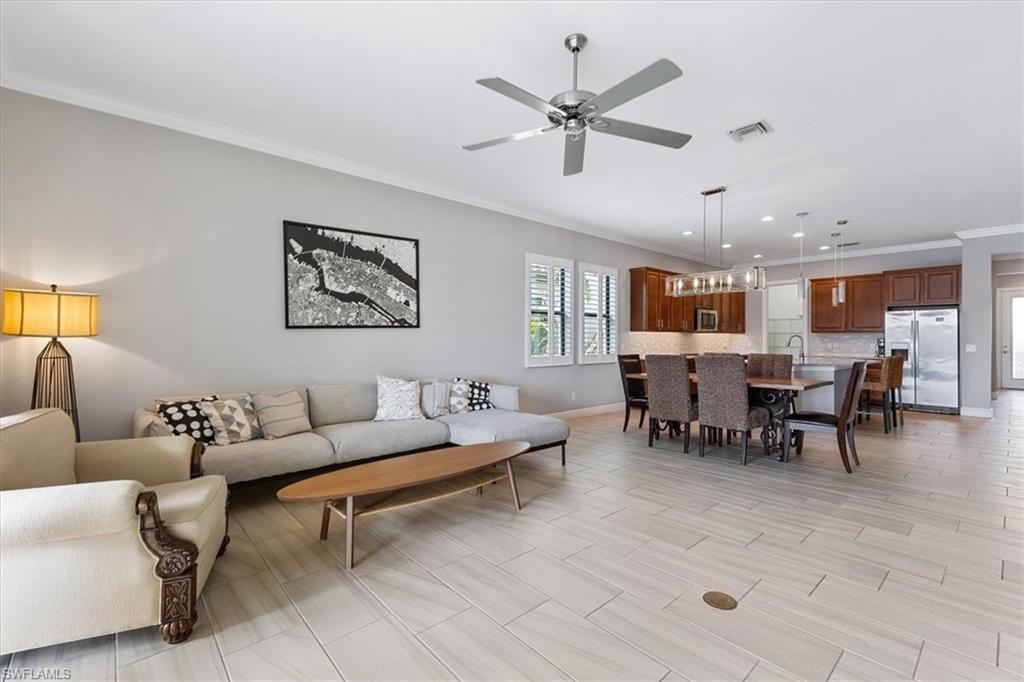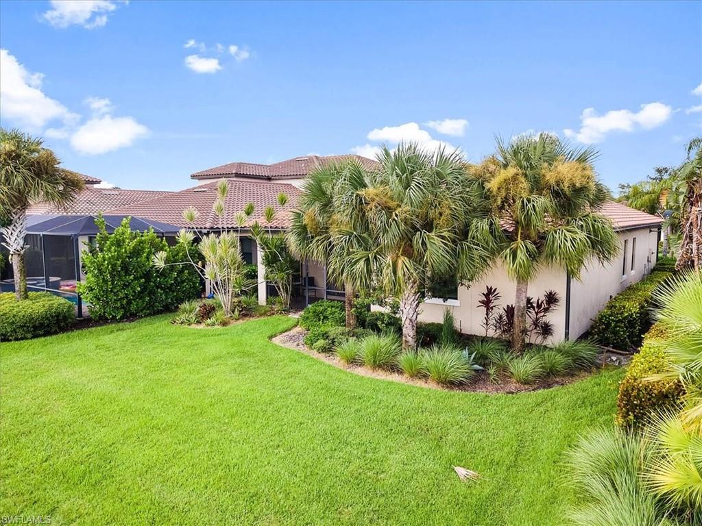 Immaculate move-in-ready home in highly sought-after Raffia Preserve! This 3BR + den / 2BA home features an open-concept layout with a gourmet kitchen, oversized granite island, wood cabinets, and walk-in pantry. Spacious primary suite includes wood floors, private bathroom with dual vanities, walk-in shower, and custom walk-in closet. Two aditional bedrooms share a full bath with soaking tub. Den/flex room with closet can serve as a 4th bedroom or office. Crown molding, shutters, designer lighting, and ceiling fans throughout. Enjoy serene lake views from the covered lanai. 2-car garage and professionally landscaped yard. HOA includes resort-style pool, fitness center, clubhouse, lawn care, and irrigation. Prime Naples location near Collier Blvd. and Vanderbilt Beach Rd., minutes to shopping, dining, and beaches. Don’t miss the opportunity to see this exceptional home!