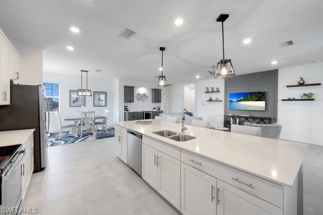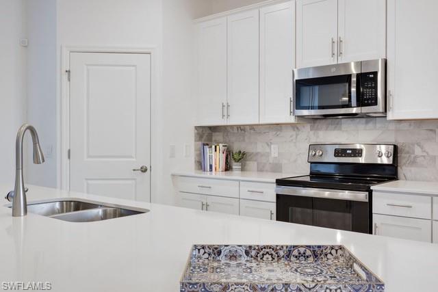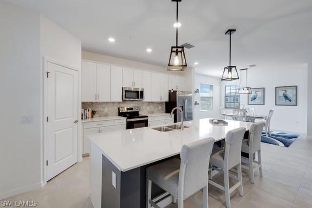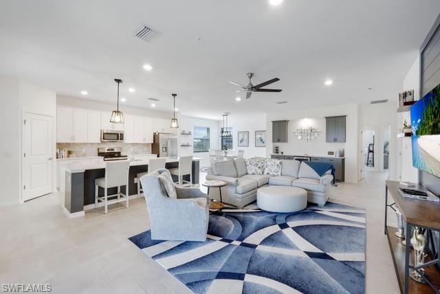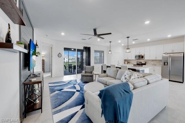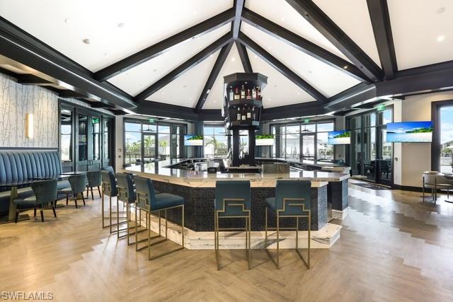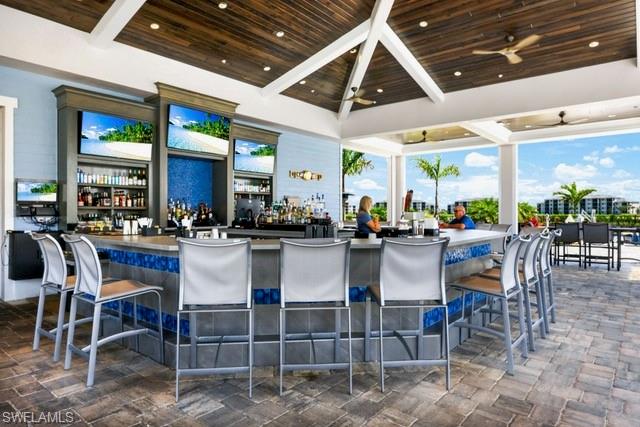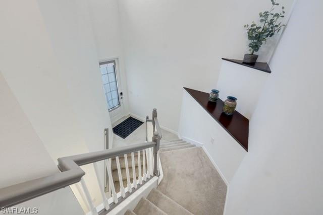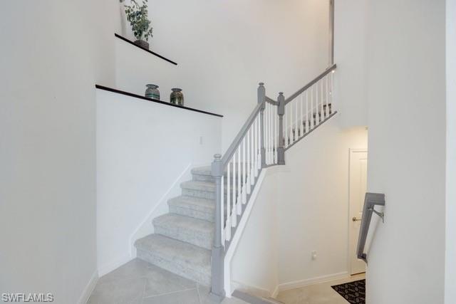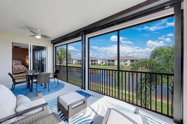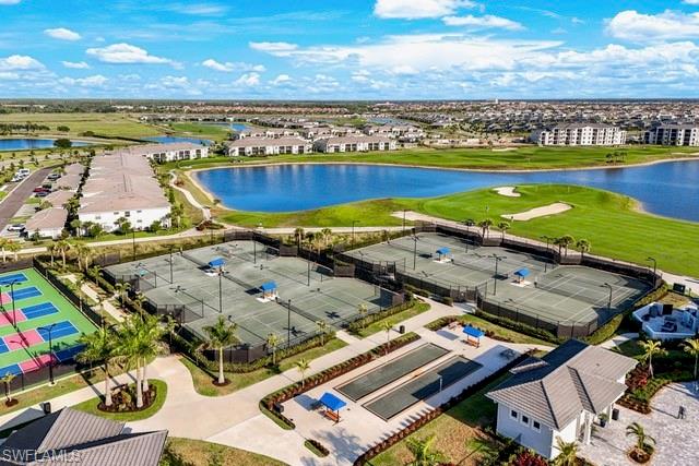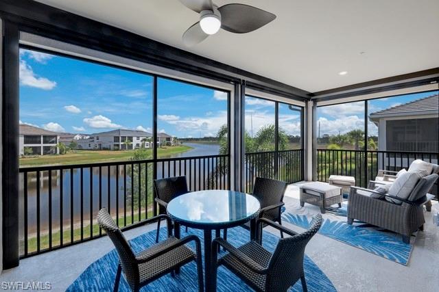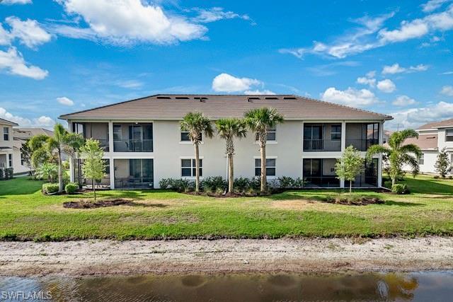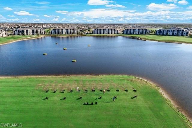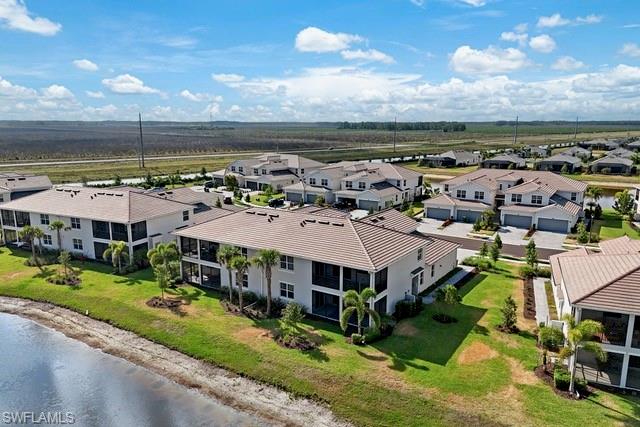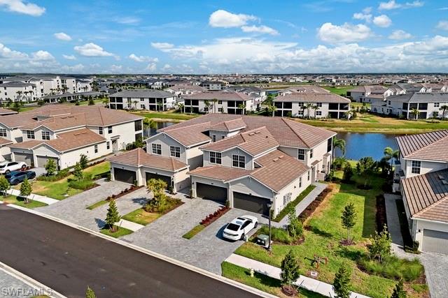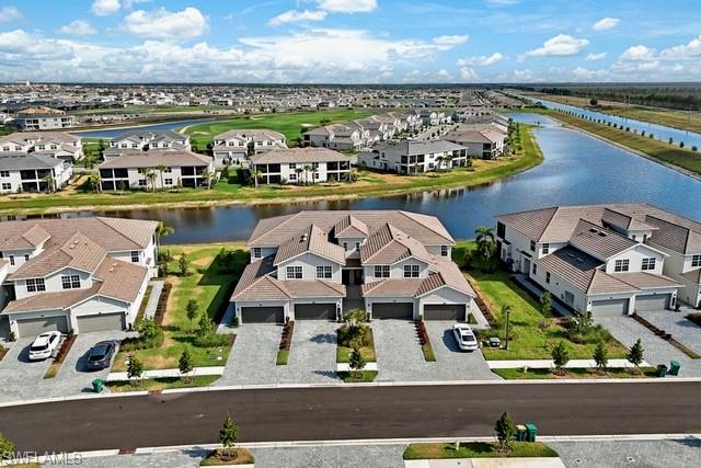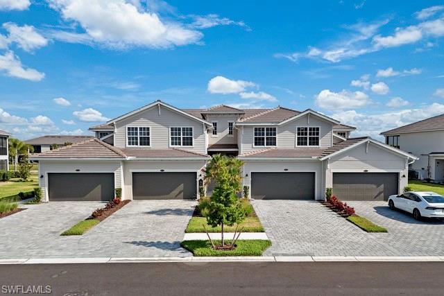 Welcome to your slice of paradise in Southwest Florida! This impeccably maintained and Turnkey/Furnished 3-bedroom, 2-bath attached coach home offers the largest floor plan in its collection and comes complete with full bundled golf membership. Bonus Feature: like-new golf cart included! This home comes with a 6-month-old golf cart—perfect for getting around the neighborhood, visiting friends, or enjoying the amenities with ease. Why wait for a new one when this turnkey gem includes a stylish, ready-to-roll ride? Enjoy sweeping water views from your private lanai equipped with Storm Smart hurricane-rated shades, perfect for tranquil mornings or sunset gatherings. Inside, you'll find an open-concept layout designed for both relaxation and entertaining, highlighted by a custom dry bar with wood cabinets and granite countertop complimented by an elegant kitchen with quartz countertops, designer backsplash, and stainless-steel appliances. The upper-level features three bedrooms all with walk-in closets. The spacious owner’s suite with a spa-inspired bath featuring a clear glass shower, dual vanities, designer tile work, and WaterSense® certified plumbing fixtures. Downstairs, the unique L-shaped two-car epoxy floor finished garage offers extra seasonal storage, a workshop, or golf cart parking. Exterior features include eco-friendly landscaping, designer lighting, concrete roof tiles, a brick paver driveway, and a steel-reinforced garage door with keypad access. This Smart Home features include a Ring Video Doorbell Pro and a smart front door lock, while energy-efficient touches like programmable thermostats, quick-recovery hot water heater, and radiant barrier insulation make daily living cost-effective and comfortable. Beyond the home, immerse yourself in a true resort lifestyle with a golf membership on a championship Gordon Lewis-designed 18-hole course. You will also have access to a 24/7 fitness center, luxurious spa, resort-style pool with tiki bar, a club house with on-site dining, and tennis and pickleball courts. This home is truly turnkey and move-in ready—a rare opportunity to embrace luxury, leisure, and low-maintenance living. Start living the Florida lifestyle today!