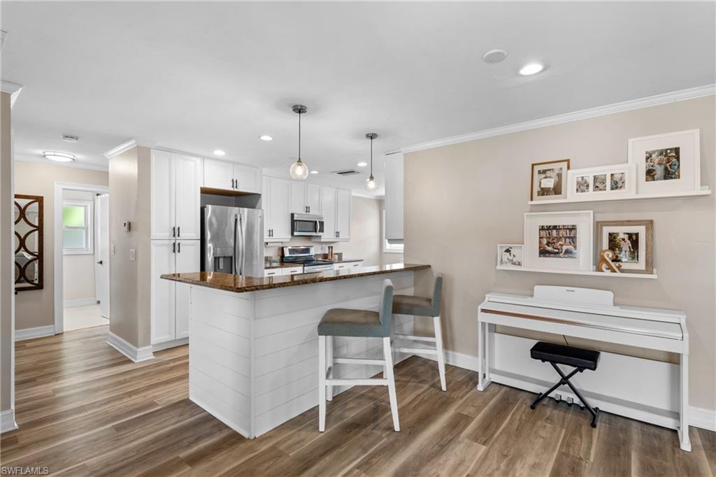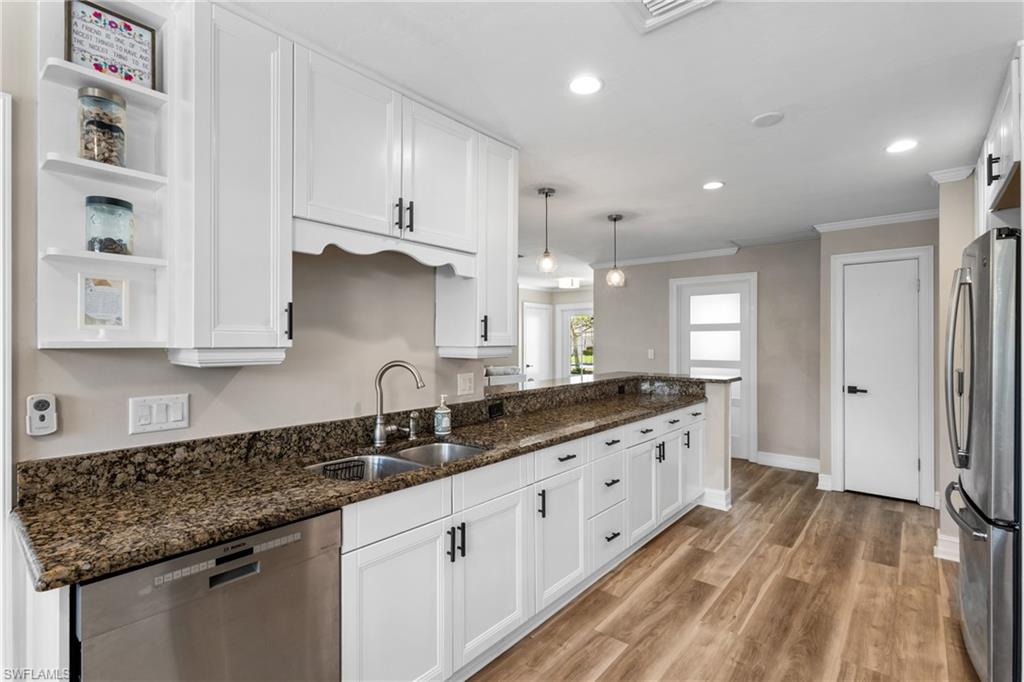 Welcome to 109 Doral Circle — a well-maintained 3-bedroom plus bonus space, 2-bathroom pool home located in the heart of East Naples. Offering 1,903 square feet of living space on an oversized lot with peaceful water views, this home delivers functionality, flexibility, and Florida charm. The updated kitchen features granite countertops and stainless-steel appliances, flowing into a light-filled dining area that opens directly to a screened lanai. North-facing pool with a sun shelf and child safety fence. There is room in the lanai for a full outdoor dining table, grill, or future outdoor kitchen.This is perfect for lounging or entertaining year-round. A versatile bonus room offers ideal space for a home office, den, or playroom. Outside on the right side of the home, the fully fenced backyard includes a small sitting area and plenty of space for pets. On the left side of the home, a separate fenced-in storage area is perfect for a jet ski, kayaks, beach gear, or tools. The home also has a 2-car garage. All this with an incredibly low HOA of just $100/year. Conveniently located minutes from 5th Avenue, schools, and both public and private golf options — this is a fantastic opportunity to enjoy the best of Naples living.