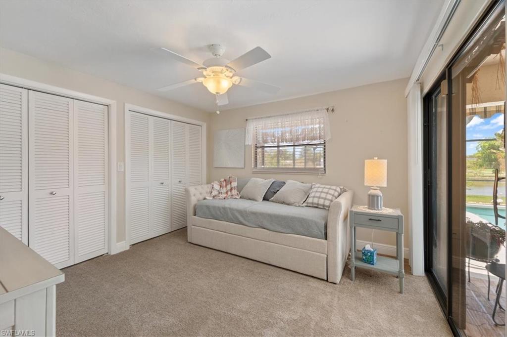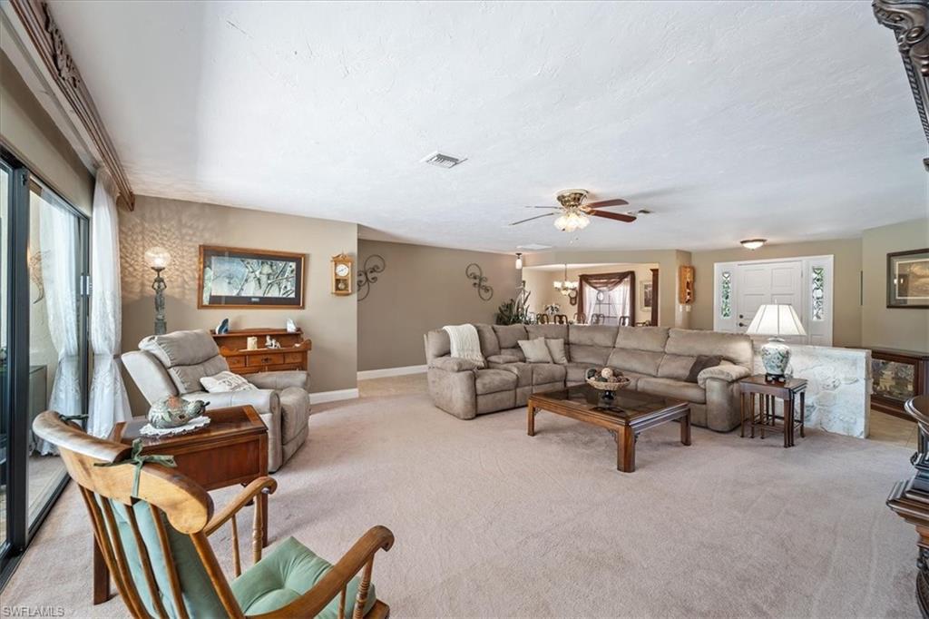 Step inside this meticulously maintained home, with 4 spacious bedrooms and 2.5 beautifully appointed bathrooms. With 2,682 square feet of living space, there's plenty of room for everyone. You'll find an inviting living room and a cozy family room, perfect for gatherings or just unwinding at the end of the day. The sleek kitchen makes meal prep a breeze. Plus, there's a breakfast bar for casual mornings and catch-ups over coffee. Retreat to the master suite, boasting a luxurious walk-in closet and a private ensuite bath with a shower and separate soaking tub. Three additional bedrooms provide comfort and privacy for family or guests. Relax in your private screened-in pool, while taking in the tranquil lakefront views. Roll-down Hurricane shutters provide peace of mind! The expansive lot, over 11,761 square feet, offers ample space for outdoor gatherings or peaceful solitude. Embrace the Florida lifestyle with low HOA fees. Enjoy the proximity to downtown Naples and Marco Island, offering a vibrant mix of dining, shopping, and SWFLs beautiful beaches. X500 flood zone, NO flood insurance required. NEW AC Units & Hot Water Heater!