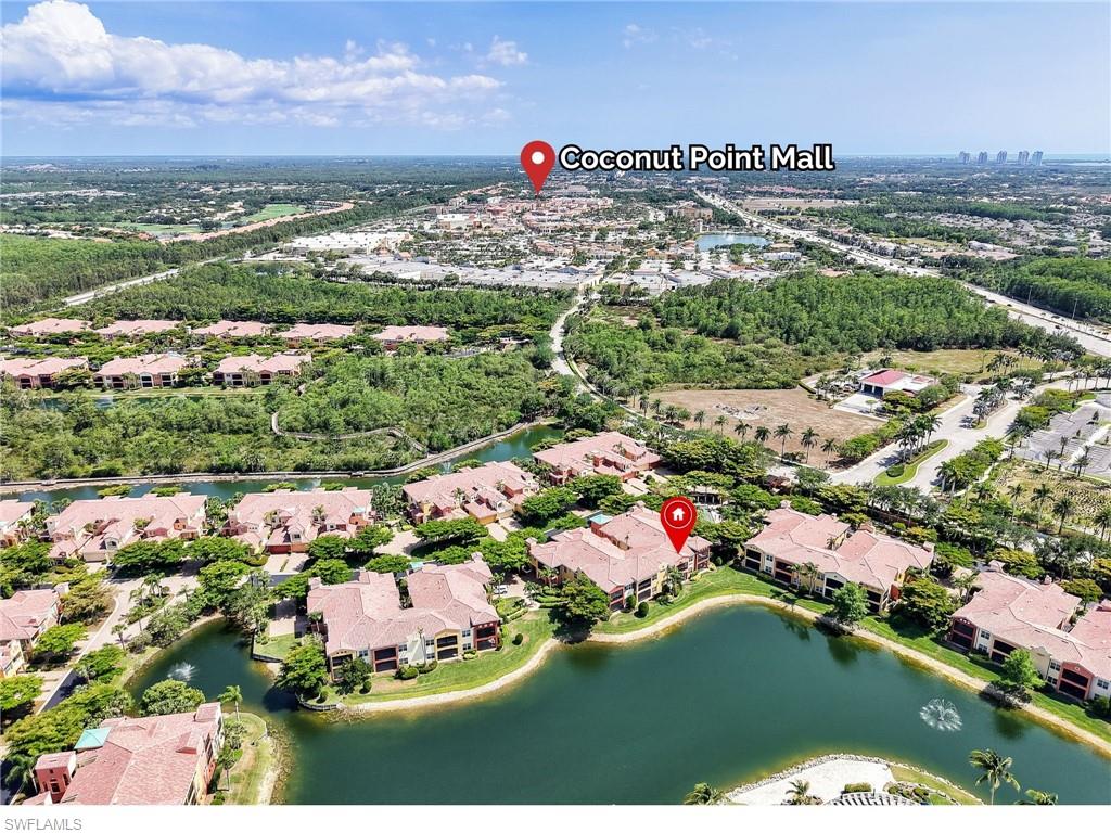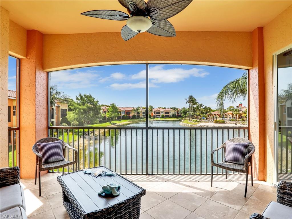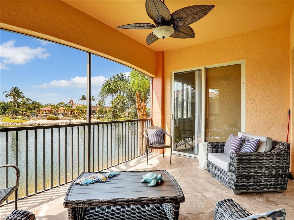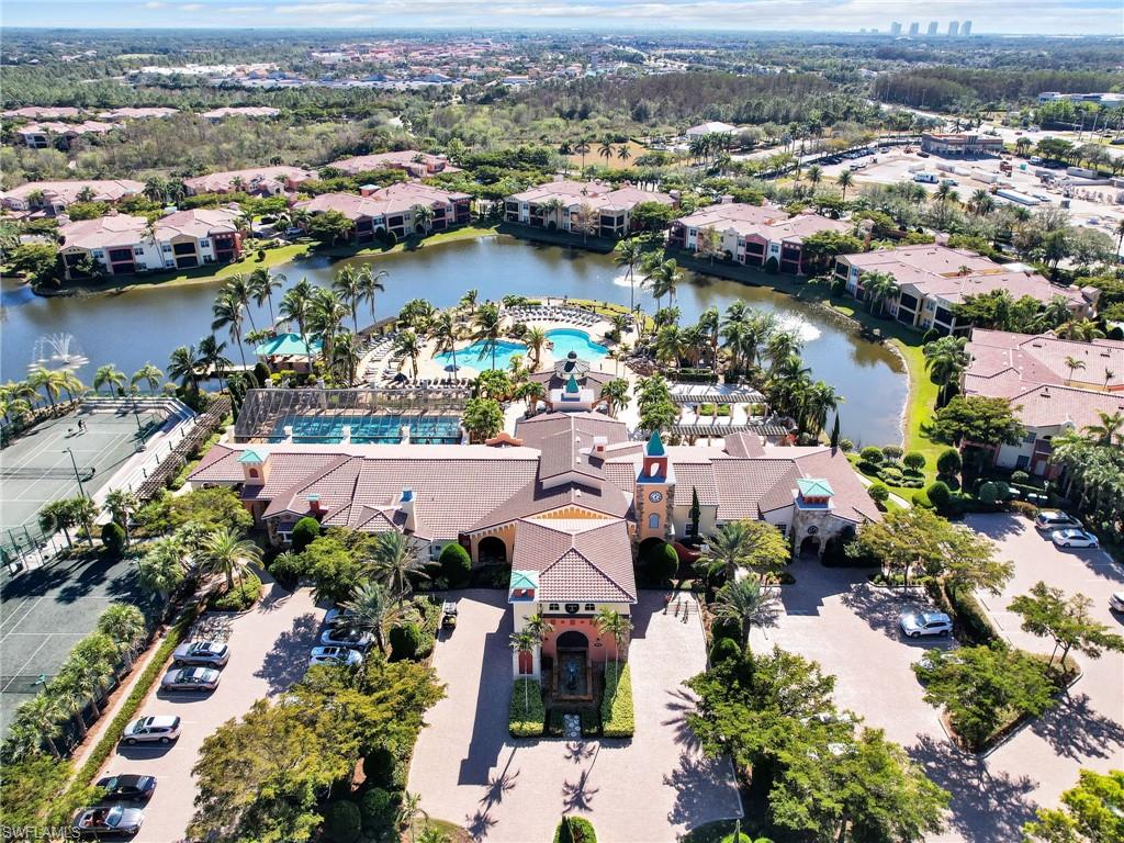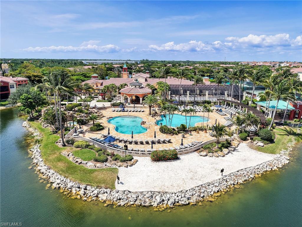 PRICED TO SELL! One of the most stunning views from a coach home, overlooking a serene lake, fountains, sandy beach, pools, and the clubhouse. The kitchen offers ample cabinet space and features a unique center island perfect for entertaining while enjoying the breathtaking scenery. Meticulously maintained by the owner, this home is in impeccable condition. The primary suite includes a sliding door that opens to the lanai, and the primary bathroom boasts dual sinks and a spacious shower. Rapallo is a Mediterranean-style resort community packed with amenities. A full-time Activity Director, the community offers five Har-Tru tennis courts with a dedicated tennis director, a fully equipped fitness center and full-time fitness staff, two lagoon-style pools with rock grotto waterfalls, a spa, a screened Olympic-sized lap pool, bocce ball courts, scenic walking paths, botanical gardens, fishing piers, a clubhouse with a full catering kitchen, and a library. Best of all, you can walk to Coconut Point Mall, featuring a variety of restaurants and specialty stores. Conveniently located just 12 miles from the airport and minutes from our beautiful beaches, this is truly a fantastic place to call home.