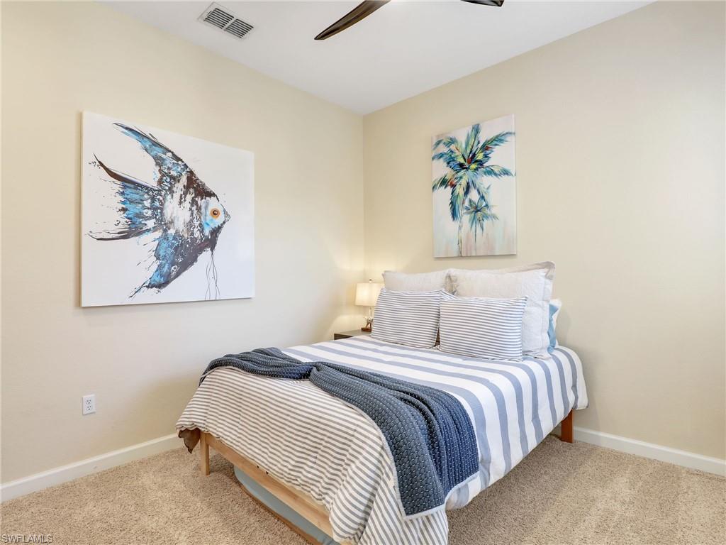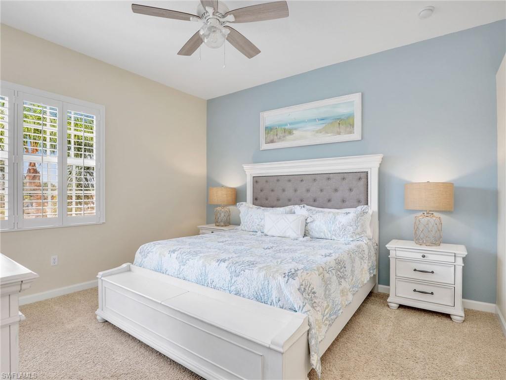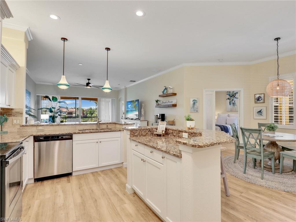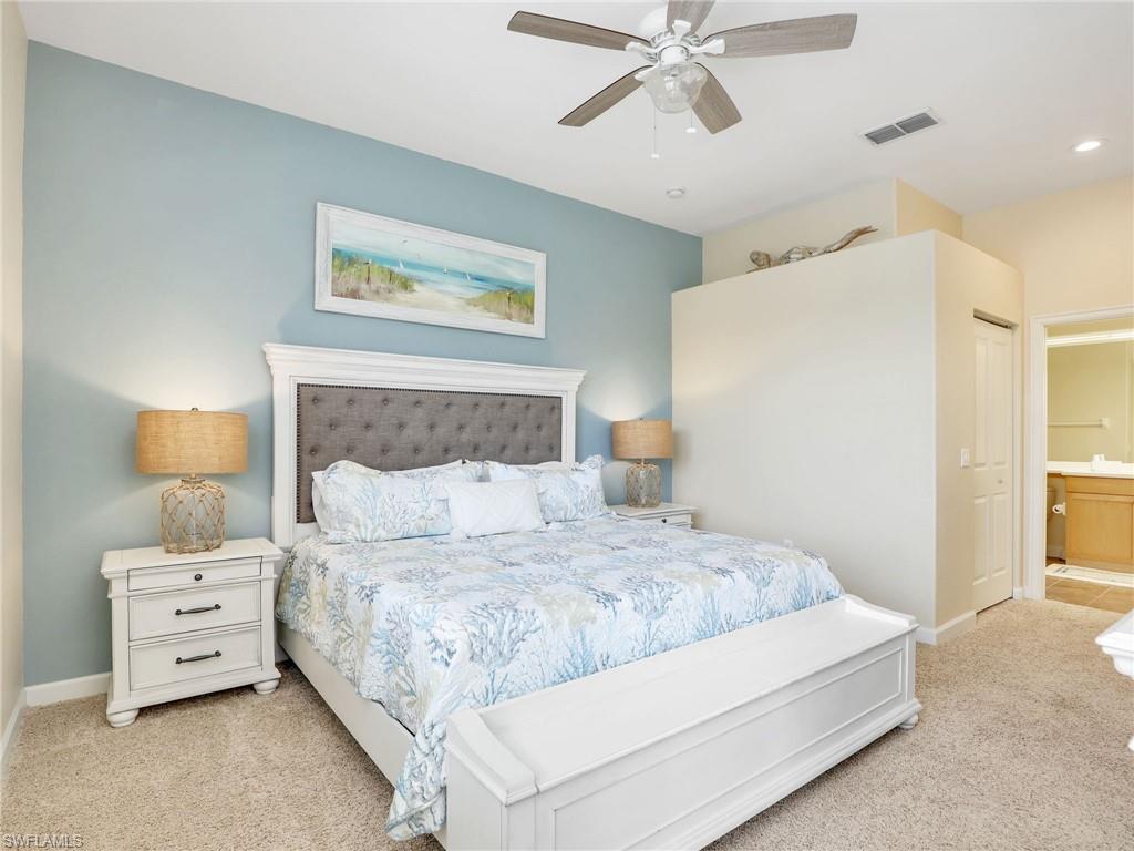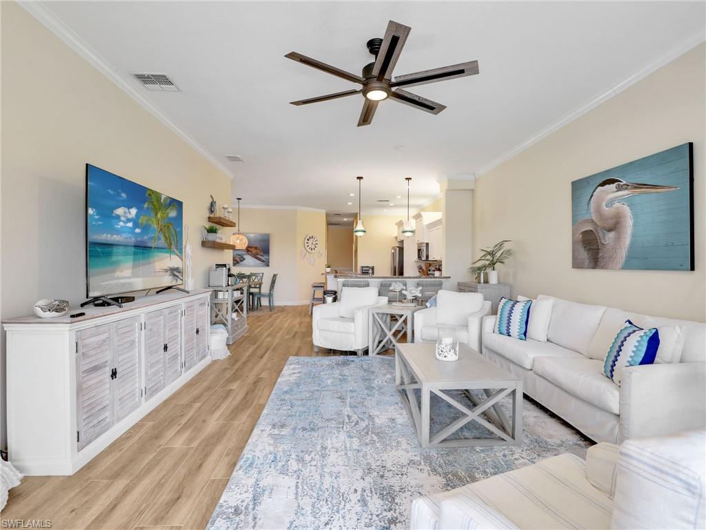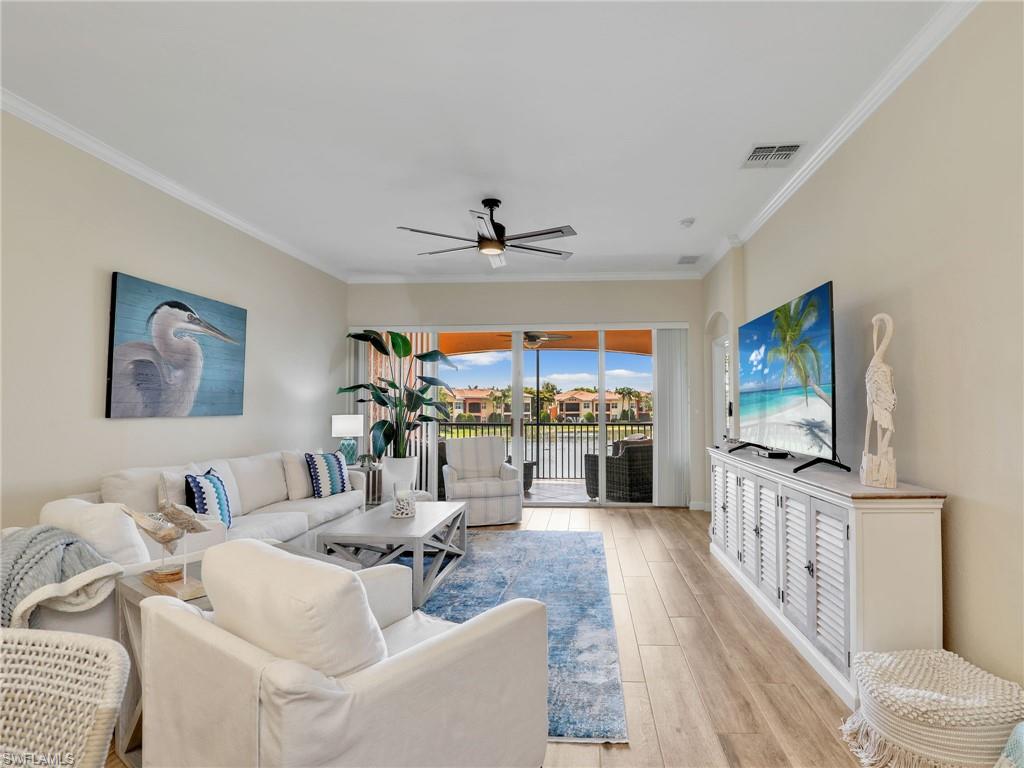 PRICED TO SELL! One of the most stunning views from a coach home, overlooking a serene lake, fountains, sandy beach, pools, and the clubhouse. The kitchen offers ample cabinet space and features a unique center island perfect for entertaining while enjoying the breathtaking scenery. Meticulously maintained by the owner, this home is in impeccable condition. The primary suite includes a sliding door that opens to the lanai, and the primary bathroom boasts dual sinks and a spacious shower. Rapallo is a Mediterranean-style resort community packed with amenities. A full-time Activity Director, the community offers five Har-Tru tennis courts with a dedicated tennis director, a fully equipped fitness center and full-time fitness staff, two lagoon-style pools with rock grotto waterfalls, a spa, a screened Olympic-sized lap pool, bocce ball courts, scenic walking paths, botanical gardens, fishing piers, a clubhouse with a full catering kitchen, and a library. Best of all, you can walk to Coconut Point Mall, featuring a variety of restaurants and specialty stores. Conveniently located just 12 miles from the airport and minutes from our beautiful beaches, this is truly a fantastic place to call home.
