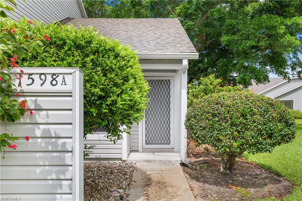 RARELY AVAILABLE IN BERKSHIRE VILLAGE – TRAFALGAR SQUARE! This first-floor 2 bedroom, 2 bathroom condo offers a one-car attached garage with epoxy flooring, storm shutters, and a peaceful courtyard view. The spacious primary bedroom features a custom closet and carpeting that was replaced a year ago. A new water heater was installed in 2024 for added peace of mind. Located in a quiet neighborhood with LOW HOA FEES, Berkshire Village offers a beautiful community pool for residents and their guests. Ideally situated close to the beaches, shopping, dining, and vibrant 5th Avenue, and less than a mile from I-75, this is a fantastic opportunity to make this home your own in a highly desirable location.