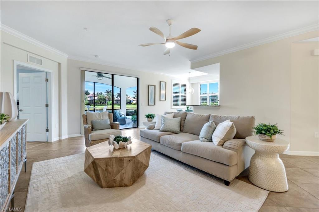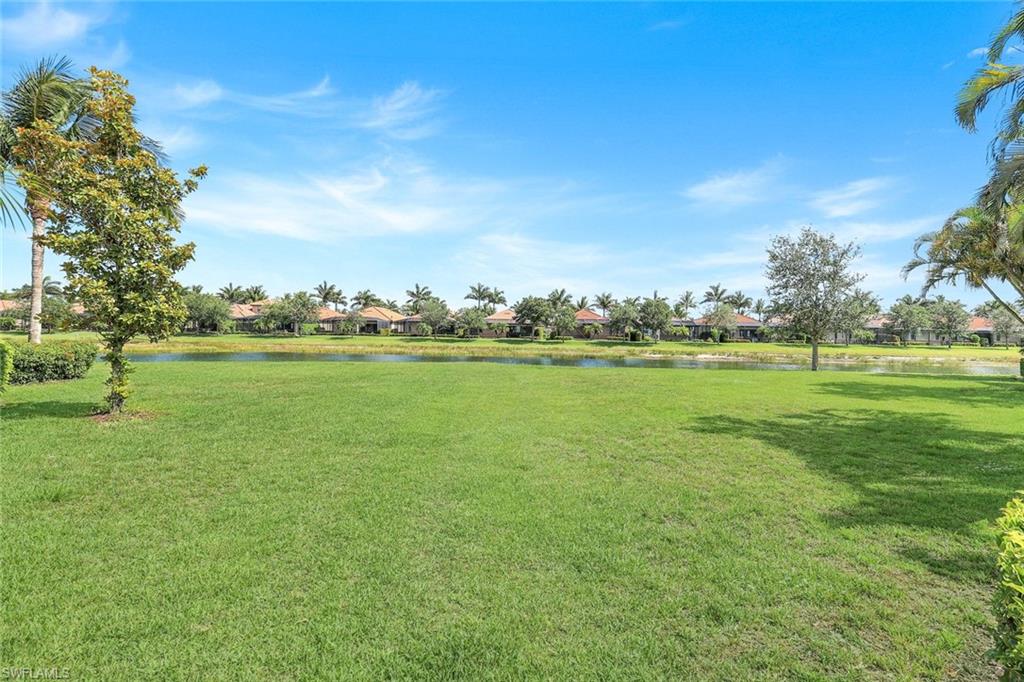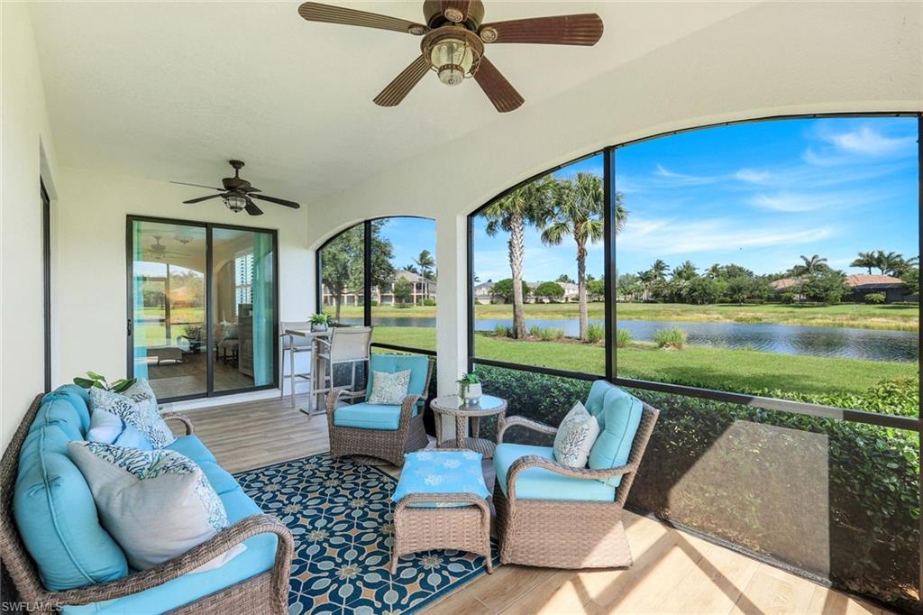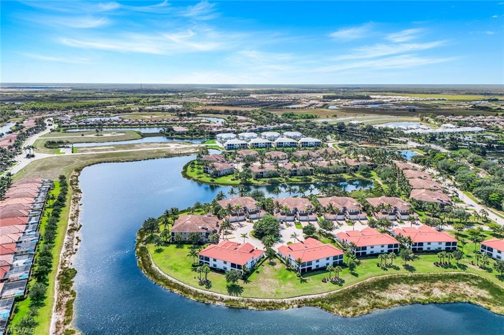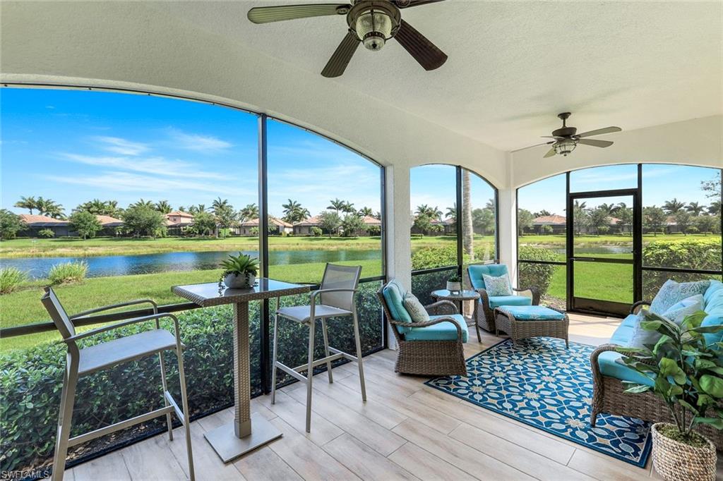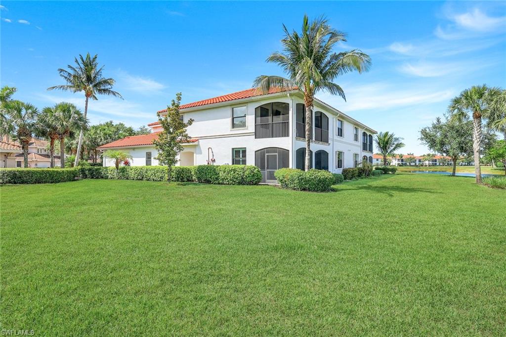 **VIEWS and SUNSETS** This first-floor coach home is at the end of a quiet cul-de-sac and framed by lush tropical landscaping, expansive side/backyard and offers a refined blend of comfort and privacy, ideal for everyday living or a seasonal retreat. This light and bright end unit condo is gently used and upgrades include: freshly painted interior walls, tile which was recently re-grouted and sealed, new luxury vinyl flooring in all bedrooms, custom crown molding, Plantation shutters and Hunter Douglas pull window treatments for the back sliding doors, a brand-new high-efficiency HVAC system, featuring filtered air technology and a smart thermostat, delivering year-round comfort and energy savings. The beautiful white kitchen stands out with stainless steel appliances, new microwave and an eat in kitchen. The oversized primary suite enjoys peaceful lake views and a private setting, with dual walk-in closets and a spa-inspired bath featuring a soaking tub, walk-in shower, and double vanities. Two additional bedrooms are well-appointed and share access to a full guest bath. Step onto the screened lanai on the updated tiled floor and take in expansive lake and preserve views, framed by a new no-see-um screen designed to enhance comfort while enjoying the outdoors—especially during golden hour, when this home’s northwest exposure delivers SPECTACULAR SUNSETS. Living in Serena gives you access to a community pool right around the corner. Located in Fiddler’s Creek—one of Naples’ premier gated communities—Residents enjoy access to resort-style amenities including a clubhouse, pools, slides, hot tub, full-service spa, fitness center, tennis, bocce, pickleball, dining, and miles of nature trails. Optional memberships to the golf club, beach club, and marina provide a range of lifestyle opportunities in one of Southwest Florida’s most celebrated settings.