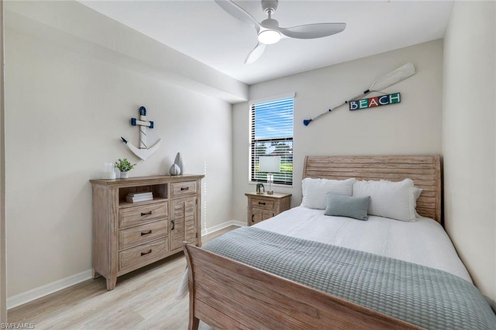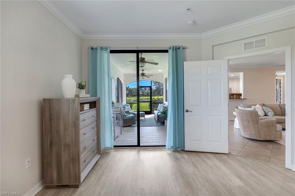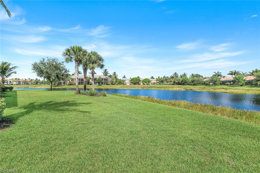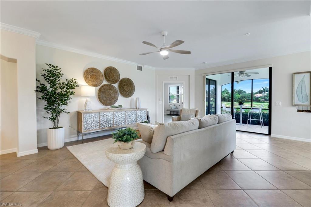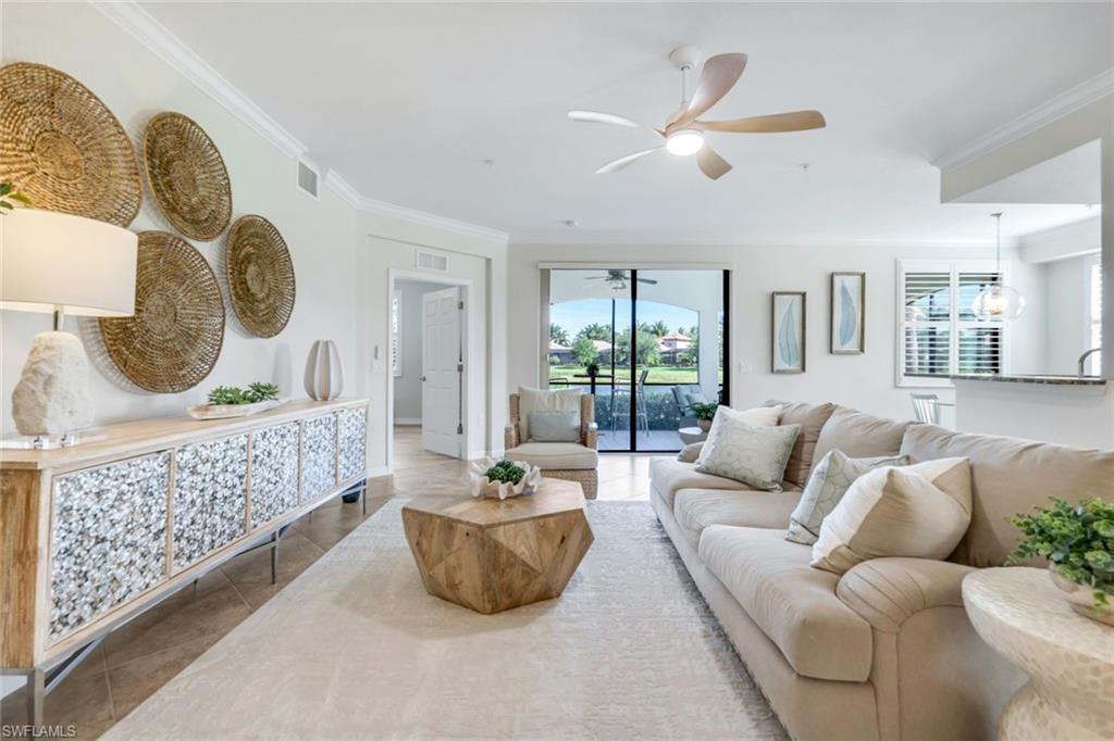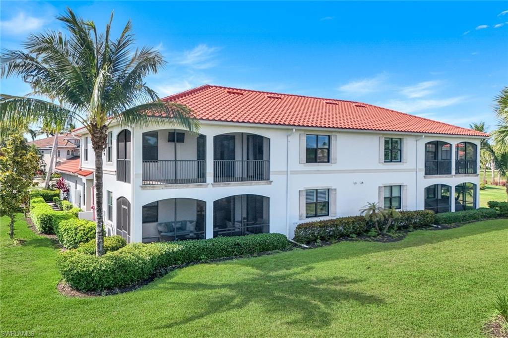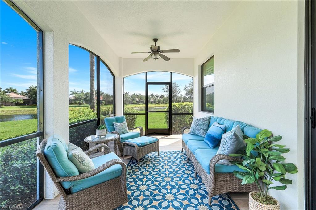 **VIEWS and SUNSETS** This first-floor coach home is at the end of a quiet cul-de-sac and framed by lush tropical landscaping, expansive side/backyard and offers a refined blend of comfort and privacy, ideal for everyday living or a seasonal retreat. This light and bright end unit condo is gently used and upgrades include: freshly painted interior walls, tile which was recently re-grouted and sealed, new luxury vinyl flooring in all bedrooms, custom crown molding, Plantation shutters and Hunter Douglas pull window treatments for the back sliding doors, a brand-new high-efficiency HVAC system, featuring filtered air technology and a smart thermostat, delivering year-round comfort and energy savings. The beautiful white kitchen stands out with stainless steel appliances, new microwave and an eat in kitchen. The oversized primary suite enjoys peaceful lake views and a private setting, with dual walk-in closets and a spa-inspired bath featuring a soaking tub, walk-in shower, and double vanities. Two additional bedrooms are well-appointed and share access to a full guest bath. Step onto the screened lanai on the updated tiled floor and take in expansive lake and preserve views, framed by a new no-see-um screen designed to enhance comfort while enjoying the outdoors—especially during golden hour, when this home’s northwest exposure delivers SPECTACULAR SUNSETS. Living in Serena gives you access to a community pool right around the corner. Located in Fiddler’s Creek—one of Naples’ premier gated communities—Residents enjoy access to resort-style amenities including a clubhouse, pools, slides, hot tub, full-service spa, fitness center, tennis, bocce, pickleball, dining, and miles of nature trails. Optional memberships to the golf club, beach club, and marina provide a range of lifestyle opportunities in one of Southwest Florida’s most celebrated settings.