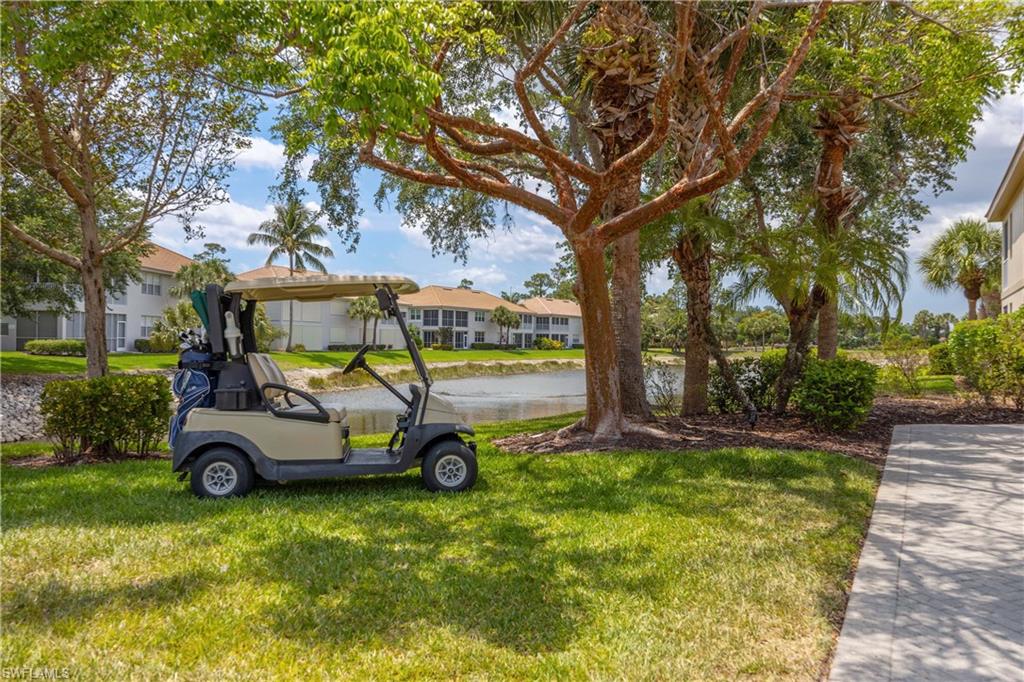 Rare opportunity! This is the only first-floor unit with this floor plan in Bishopwood Court — and it offers unbeatable privacy with no neighboring building to the left! Featuring 2 bedrooms + formal dining, 2 bathrooms, and a one-car garage, this light-filled condo overlooks lush pond views and golf course views. Enjoy an open-concept layout, granite kitchen countertops, a spacious primary suite, and a screened lanai perfect for relaxing. Zip around the community with ease in your own personal golf cart included with the sale. Forest Glen is a bundled golf community with top-tier amenities including an 18-hole championship course, clubhouse dining, tennis, pickleball, and more — all just minutes from downtown Naples and the beaches! Don’t miss this unique opportunity for peace, privacy, and luxury living.