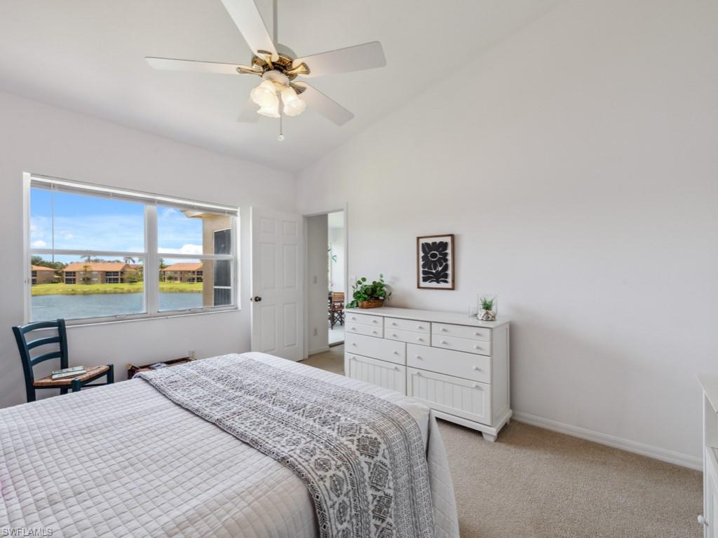You will LOVE this dream retreat in the highly sought-after gated community of Huntington Lakes, located in North Naples! This beautifully maintained second-floor condo features two spacious bedrooms, two full baths, and breathtaking lake views, perfect for sunsets, from your screened-in lanai. It also includes a convenient storage closet. You'll find modern touches throughout, including updated kitchen cabinets, a stainless steel refrigerator and dishwasher, and a new A/C unit for year-round comfort. This condo even has a detached 1-car carport for convenience. Huntington Lakes offers resort-style living with three sparkling community pools, a luxurious spa/hot tub, tennis courts, and bocce ball courts. All this is just 6 miles from the white sandy beaches of the Gulf Coast! Whether you're looking for a seasonal escape or full-time Florida living, this condo checks every box. Don't miss your opportunity to own a slice of paradise in North Naples!