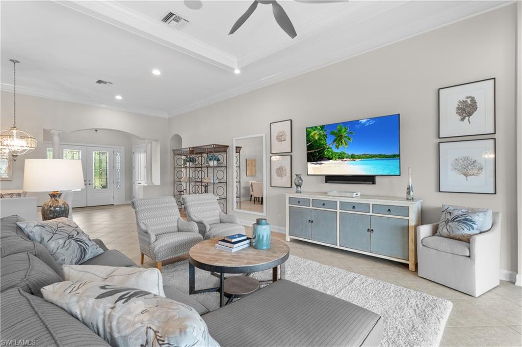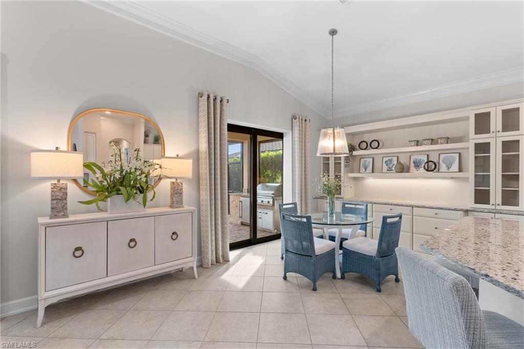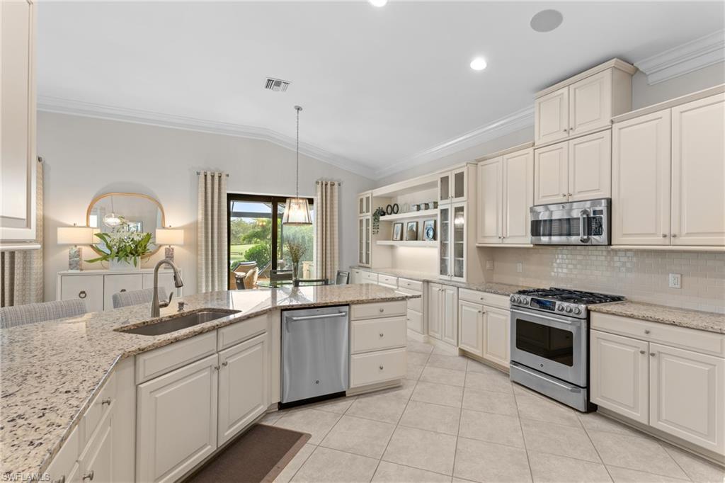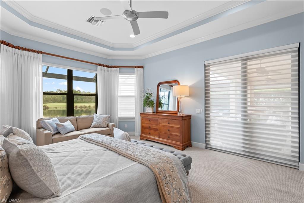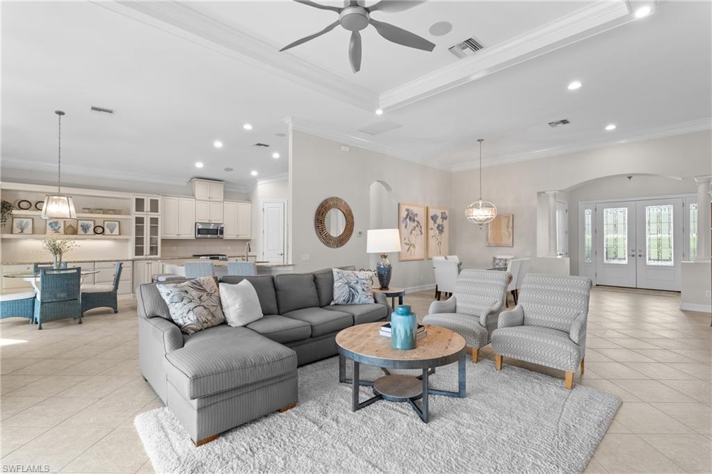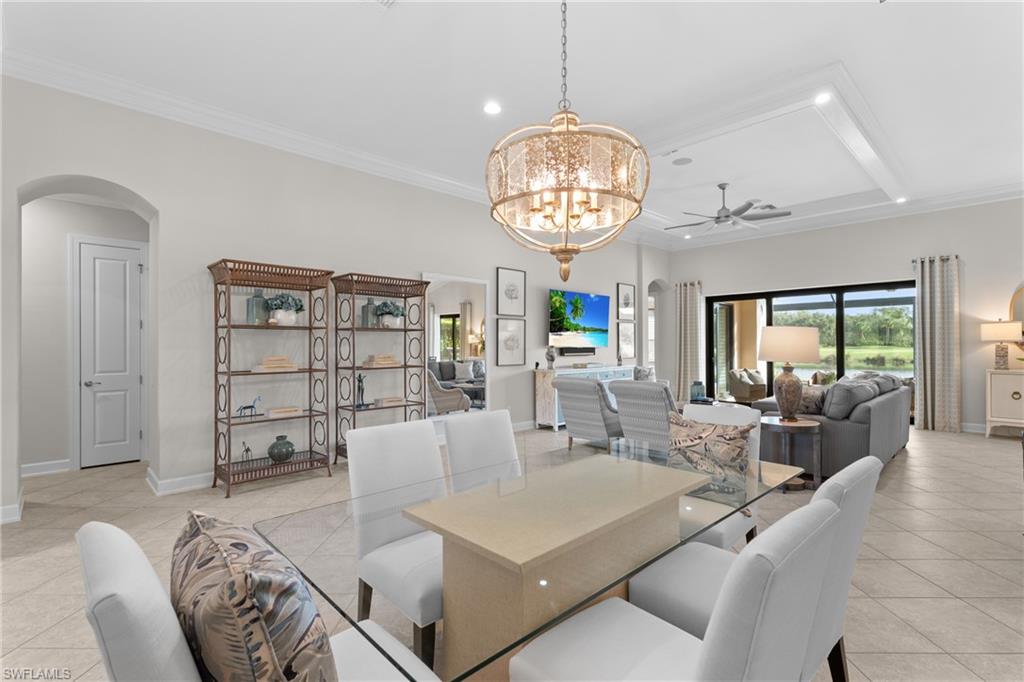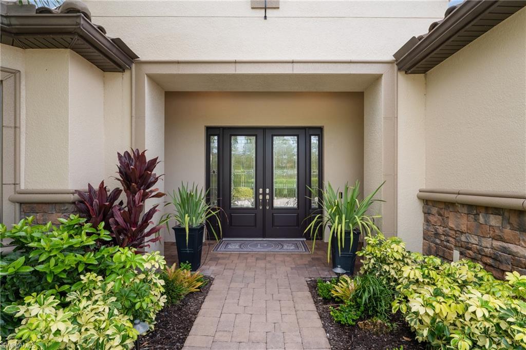 THIS HOME HAS IT ALL! STUNNING VIEWS, FULL GOLF MEMBERSHIP, and being offered FURNISHED! Incredible long lake and golf course views set the stage for this exquisite “Carrera” model home, being offered fully furnished for a seamless move-in experience. Perfectly positioned on a premium lot with unobstructed views of the 9th fairway/green & natural preserve, this residence offers unmatched privacy with no other homes in direct sight—all just a short walk to the golf practice facilities & the community’s vibrant amenity campus. Lovingly maintained by its owners, this 2483 Square Foot home features 3 bedrooms, 2.5 baths, and an extended two-car garage with ample space to accommodate both vehicles and a golf cart. Sophistication meets strength with hurricane-impact windows and doors, complemented by electric hurricane shutters on the lanai for added peace of mind. The outdoor living space is nothing short of extraordinary, showcasing an expansive saltwater gas-heated lap pool stretching 42 feet, bathed in sun throughout the day and framed by a beautiful screen enclosure. An outdoor kitchen and fireplace (installed 2 years ago) elevate the setting, ideal for entertaining or simply unwinding in complete luxury. Inside, soaring 12 foot ceilings and 8-foot doors enhance the open design, while two sets of pocket sliding glass doors create a seamless flow between indoor and outdoor living. The chef’s kitchen features an expanded layout with a gas cooktop and high-end finishes that cater to both casual dining and gourmet entertaining. Additional enhancements include a whole-house water filtration system, an AIR CONDITIONED GARAGE with ceiling storage, professionally designed landscaping with accent lighting, an indoor/outdoor SONOS system with mounted TVs, CUSTOM CLOSETS built-ins, and meticulously curated furnishings and décor. Together, these upgrades reflect an additional investment of more than $100,000 over the past two years, further elevating the home’s sophistication and comfort. Perfectly positioned on a QUITE STREET just steps from the community mailboxes, this residence embodies a seamless blend of refined elegance and modern luxury. As a resident of Esplanade, you'll enjoy an unmatched lifestyle with access to world-class amenities, including a championship golf course, state-of-the-art clubhouse, resort-style pool with food and beverage service, private cabanas, tennis and pickleball courts, walking and biking trails, a dog park, fitness center, full-service salon and spa, wellness center, tiki bar, and more. Ideally located in North Naples, Esplanade Golf & Country Club offers convenient access to I-75, the airport, top-rated restaurants, premier shopping, and the stunning beaches of the Gulf Coast. Known for its vibrant, active social scene, the community delivers the perfect blend of luxury, recreation, and lifestyle. Don’t miss the opportunity to make this exceptional home yours—and start living the Esplanade dream.
