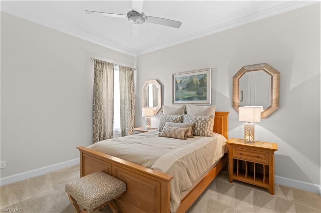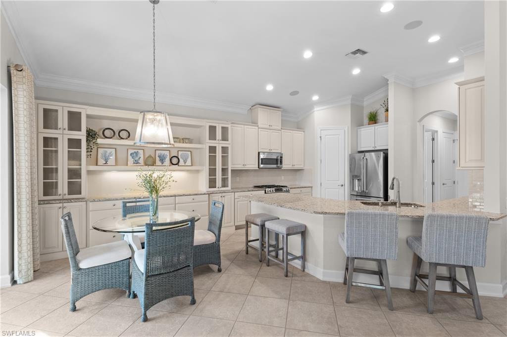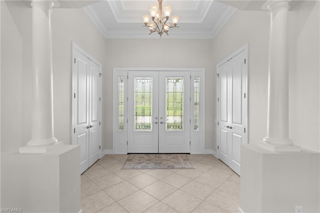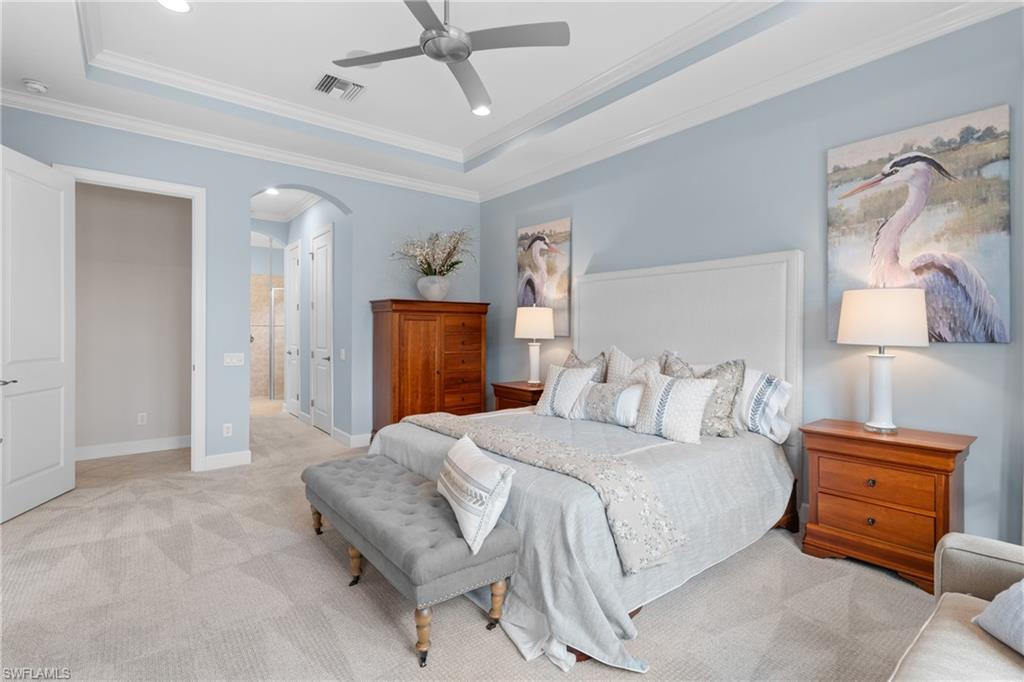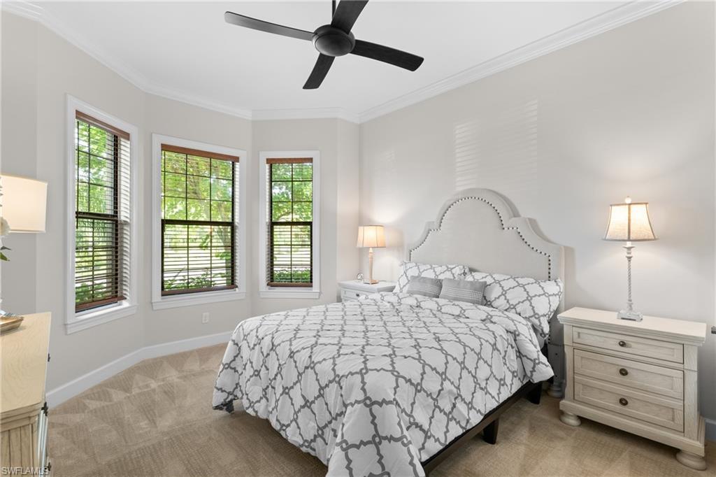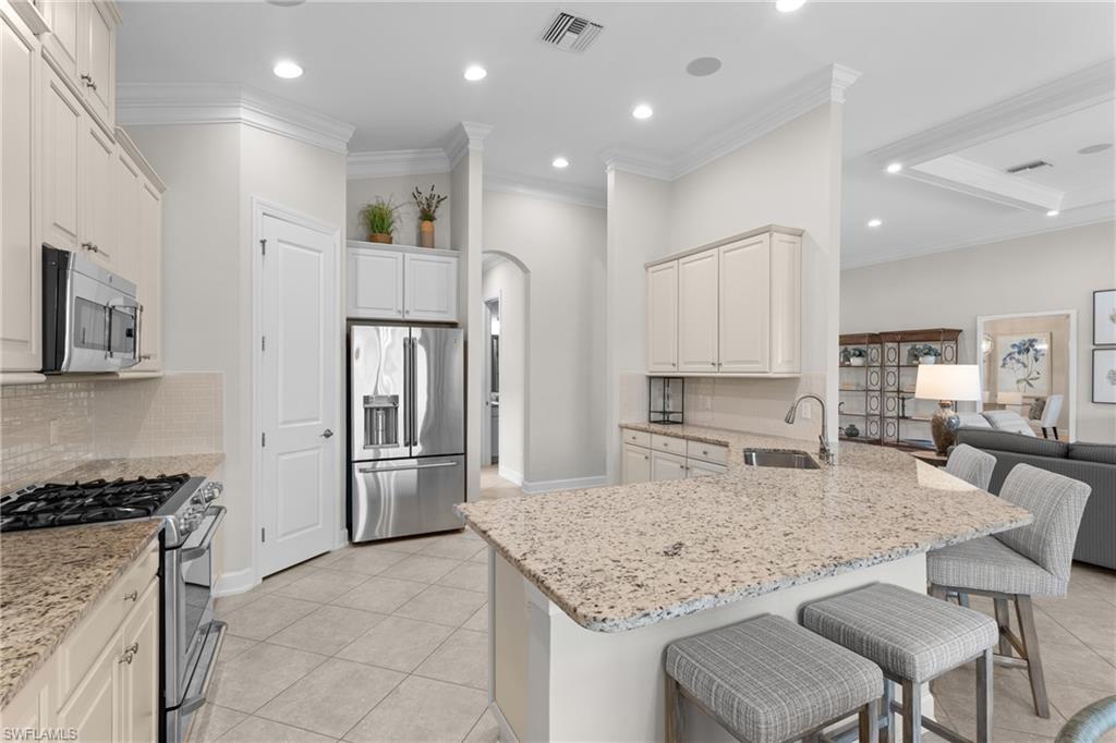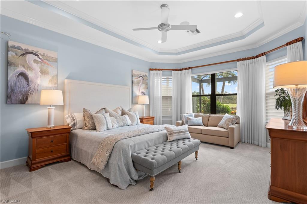 THIS HOME HAS IT ALL! STUNNING VIEWS, FULL GOLF MEMBERSHIP, and being offered FURNISHED! Incredible long lake and golf course views set the stage for this exquisite “Carrera” model home, being offered fully furnished for a seamless move-in experience. Perfectly positioned on a premium lot with unobstructed views of the 9th fairway/green & natural preserve, this residence offers unmatched privacy with no other homes in direct sight—all just a short walk to the golf practice facilities & the community’s vibrant amenity campus. Lovingly maintained by its owners, this 2483 Square Foot home features 3 bedrooms, 2.5 baths, and an extended two-car garage with ample space to accommodate both vehicles and a golf cart. Sophistication meets strength with hurricane-impact windows and doors, complemented by electric hurricane shutters on the lanai for added peace of mind. The outdoor living space is nothing short of extraordinary, showcasing an expansive saltwater gas-heated lap pool stretching 42 feet, bathed in sun throughout the day and framed by a beautiful screen enclosure. An outdoor kitchen and fireplace (installed 2 years ago) elevate the setting, ideal for entertaining or simply unwinding in complete luxury. Inside, soaring 12 foot ceilings and 8-foot doors enhance the open design, while two sets of pocket sliding glass doors create a seamless flow between indoor and outdoor living. The chef’s kitchen features an expanded layout with a gas cooktop and high-end finishes that cater to both casual dining and gourmet entertaining. Additional enhancements include a whole-house water filtration system, an AIR CONDITIONED GARAGE with ceiling storage, professionally designed landscaping with accent lighting, an indoor/outdoor SONOS system with mounted TVs, CUSTOM CLOSETS built-ins, and meticulously curated furnishings and décor. Together, these upgrades reflect an additional investment of more than $100,000 over the past two years, further elevating the home’s sophistication and comfort. Perfectly positioned on a QUITE STREET just steps from the community mailboxes, this residence embodies a seamless blend of refined elegance and modern luxury. As a resident of Esplanade, you'll enjoy an unmatched lifestyle with access to world-class amenities, including a championship golf course, state-of-the-art clubhouse, resort-style pool with food and beverage service, private cabanas, tennis and pickleball courts, walking and biking trails, a dog park, fitness center, full-service salon and spa, wellness center, tiki bar, and more. Ideally located in North Naples, Esplanade Golf & Country Club offers convenient access to I-75, the airport, top-rated restaurants, premier shopping, and the stunning beaches of the Gulf Coast. Known for its vibrant, active social scene, the community delivers the perfect blend of luxury, recreation, and lifestyle. Don’t miss the opportunity to make this exceptional home yours—and start living the Esplanade dream.