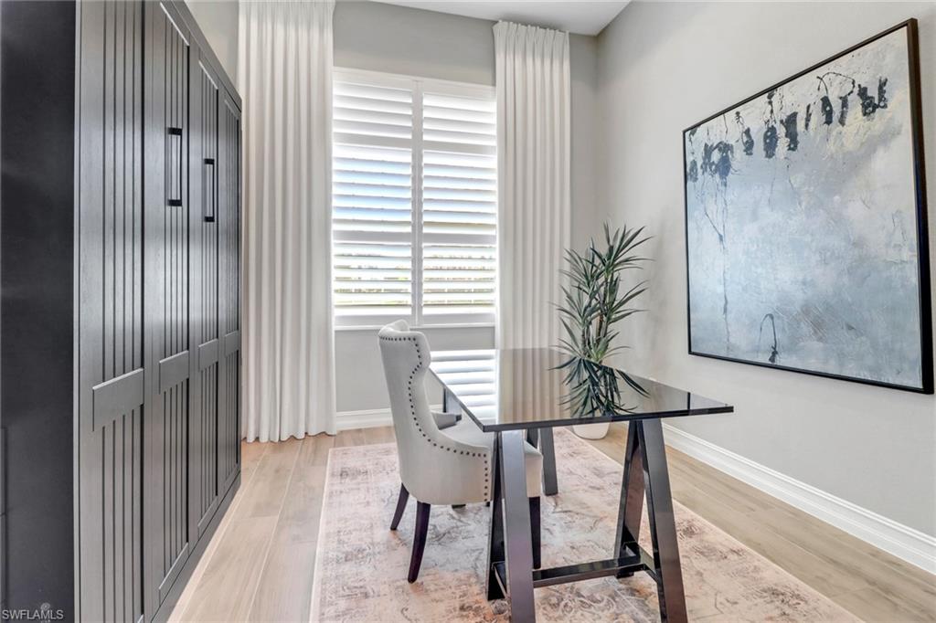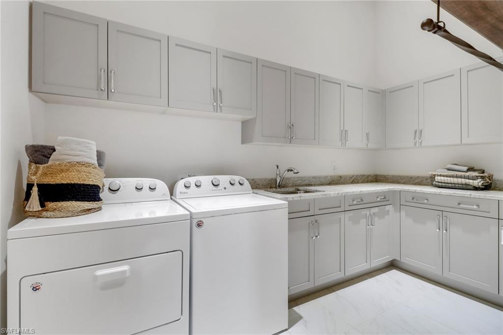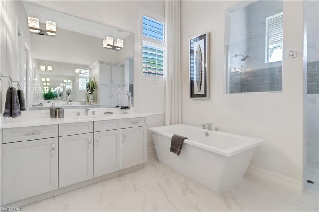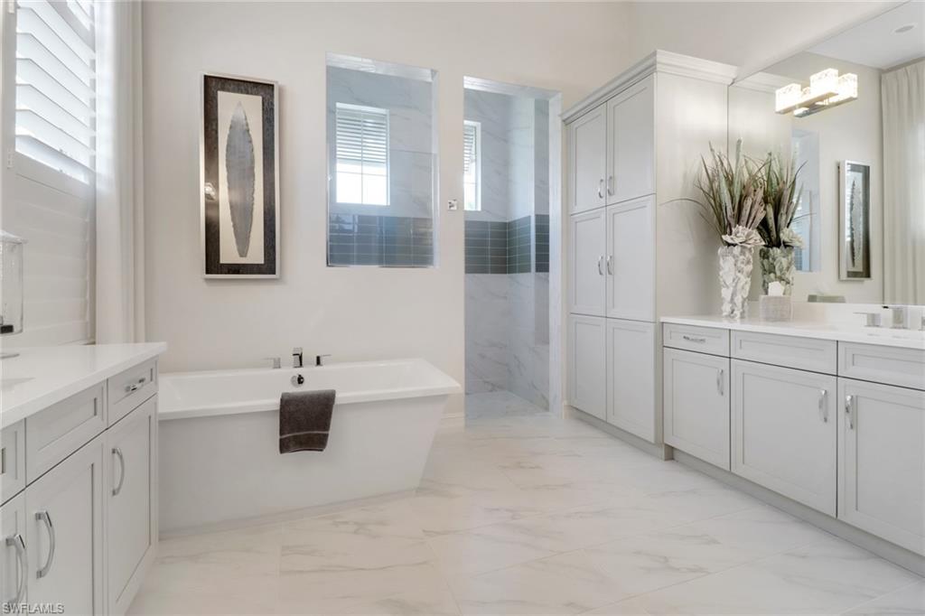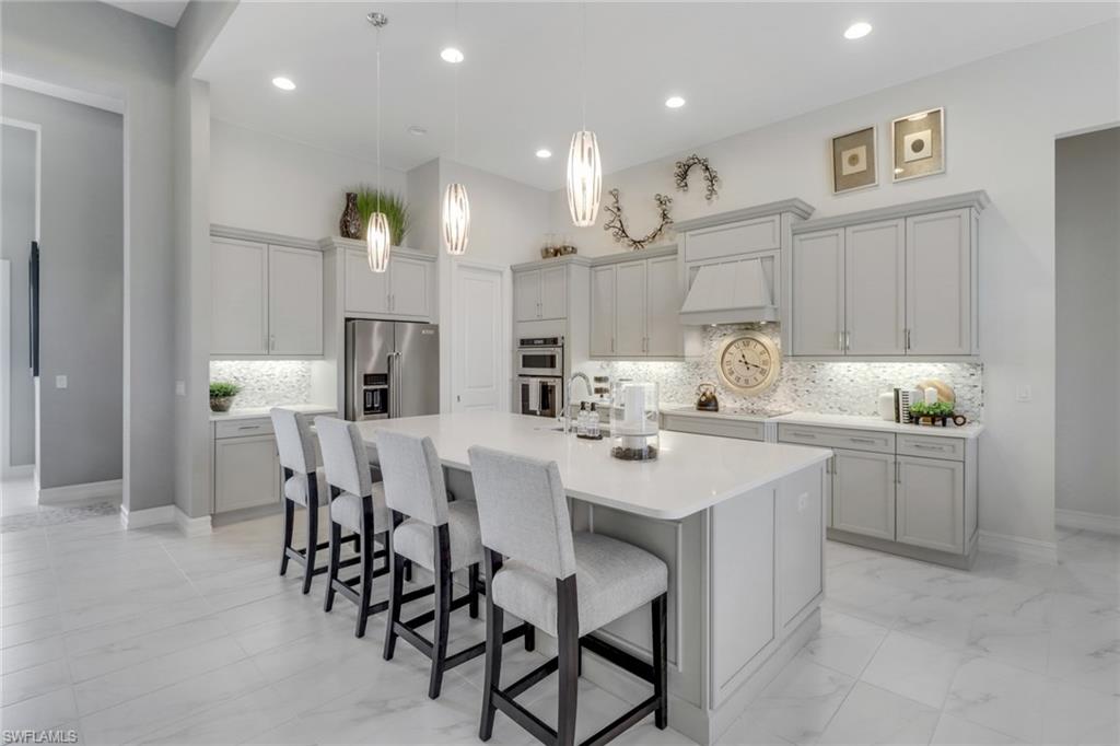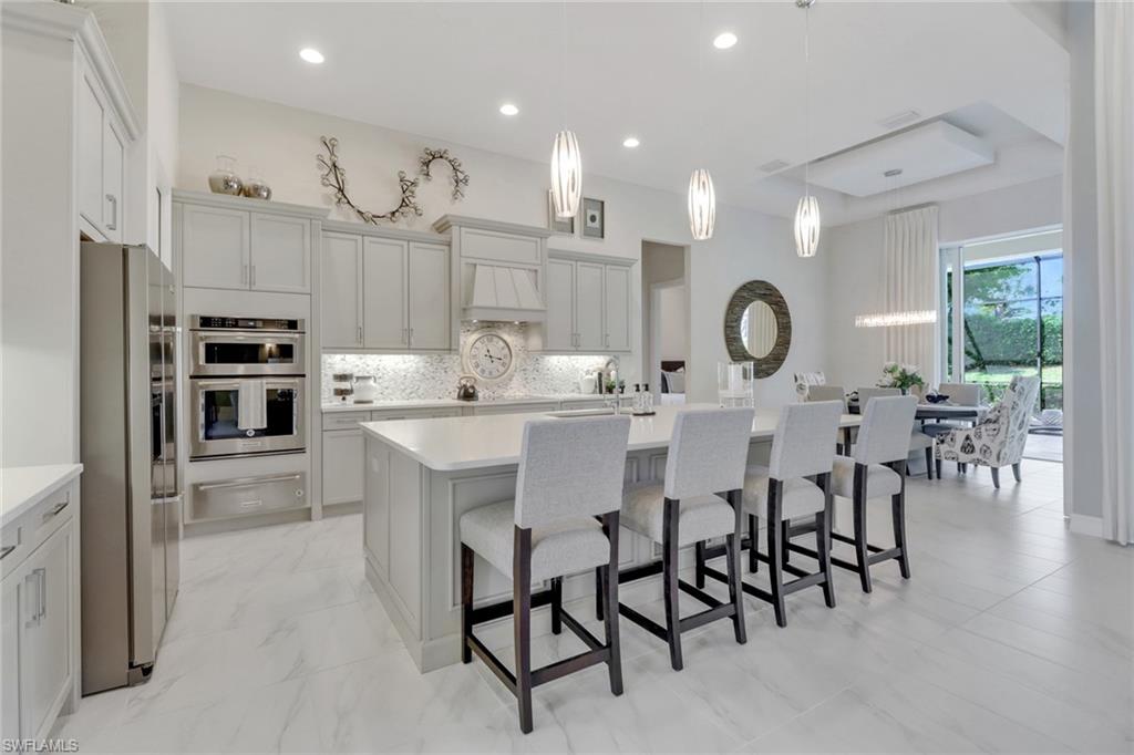 Ready to move right in. One of the previous stock model homes is on the market. Desirable madison floor plan packed with upgrades and featuring 4 bedrooms, plus a den, 4.5 bathrooms where all 4 full bathrooms are ensuite baths, 3 car garage, pool/spa and out door kitchen with a very large covered overhang on your upgraded no-see-um screened in patio. Be wowed when walking in by the ceiling height and custom ceiling work as you enter the double doors into the home. Your gourmet kitchen awaits with upgraded quartz counters, tile backsplash, stainless steel appliances, oversized wooden hood, lots of drawer space and plenty of walk-in pantry space with custom built-ins. Main Bedroom offers his and her walk-in closet with closet cabinets, carpet and custom ceilings, patio doors to enjoy the outdoor pool area and your luxurious ensuite bath with separate soaking tub and huge walk-in shower, double vanity and make-up counter. The ultimate Florida entertainment home with large pool/spa, full out door kitchen, automated hurricane shutters and an extended lanai with plenty of covered outdoor space to enjoy the florida weather. Large laundry room with custom cabinets, sink and large folding station. Naples Reserve is a resort style community with lap pool, community pool, beach volley ball, tennis and pickle ball center, paddle boats, fitness and classes, tiki bar and much more