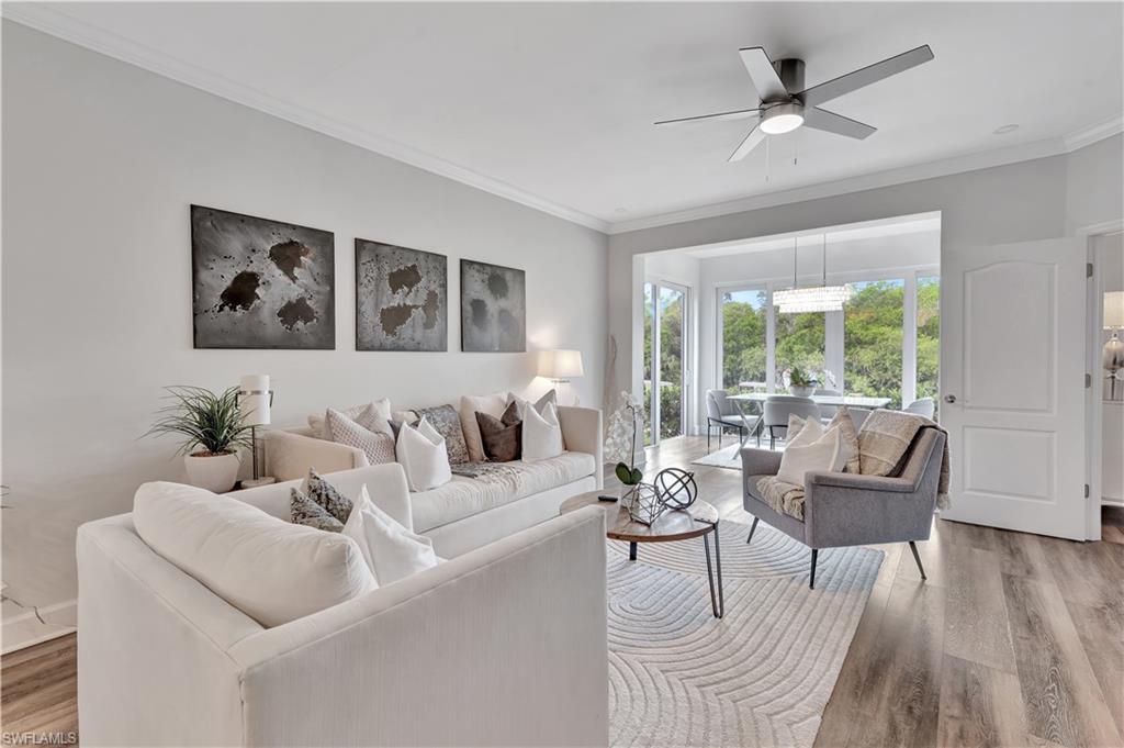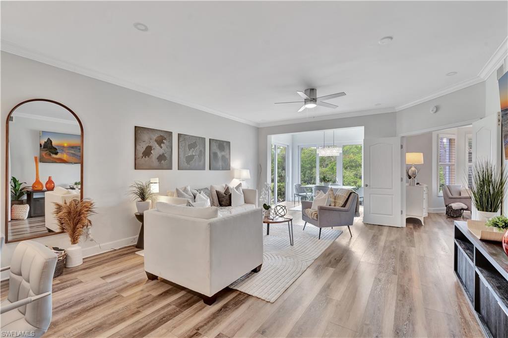 WINDSTAR-NAPLES "SALTLIFE" PREMIER COUNTRY CLUB COMMUNITY! PRIVATE BEACH CLUB-MARINA-BOATING, FISHING, GOLF, TENNIS, PICKLE-BALL & CLUBHOUSE. THIS "TURNKEY" FURNISHED STUNNING DECORATOR/DESIGNER TOTAL ($150,000+/-) REMODELED, 3 BEDROOM, 2 BATH, W/PRIVATE GARAGE AND GORGEOUS $1,000,000 SIREN FAIRWAY & PRESERVE VIEWS HAS IT ALL. Every feature and change has been carefully curated for luxury and sophistication. Enter into the home with a WIDE OPEN floor plan and BEAUTIFUL direct the unit ULTIMATE STUNNING GOLF COURSE, PRESERVE VIEWS. All the main floors throughout the home are custom "WOOD PLANK" tile flooring for "Ease Of Maintenance" and that luxury look. LOTS OF GLASS WINDOWS AND SLIDERS (ALL IMPACT HURRICANE RESISTANT FOR TOTAL STORM PROTECTION) KEEPS THE HOME LIGHT-BRIGHT & SUNNY ALL YEAR ROUND. All ceilings are 10" volume and finished with milled wood crown molding throughout. "CHEFS" kitchen, WITH DESIGNER WHITE WOOD "SHAKER" CABINETRY, LEVEL 5 QUARTZ TOPS, HIGH END STAINLESS STEEL APPLIANCES & A CUSTOM QUARTZ TOPS W/EAT-AT-BAR & WORK STATION FOR THOSE INTIMATE FAMILY KITCHEN GATHERINGS. Master Bedroom has 10' tray ceilings, HIS & HERS WALK-IN CLOSETS, BATHROOM HAS ALL MARBLE FLOORING, DUAL QUARTZ SINKS & VANITIES, FLOOR-TO-CEILING GLASS & MARBLE WALK-IN SHOWER. All other bedrooms have the same METICULOUS high end designer finishes throughout. GARAGE FLOOR, IS FINISHED WITH HARD EPOXY "RACE CAR" FINISHES. WINDSTAR IS MINUTES FROM DOWNTOWN NAPLES AND OFFERS IT'S RESIDENTS: PRIVATE BEACH CLUB, PRIVATE 72 SLIP DEEP-WATER MARINA (IN NAPLES ALMOST IMPOSSIBLE TO FIND BOAT DOCK FOR ALMOST ANY SIZE BOAT, WE HAVE IT HERE), HARD-TRU TENNIS COURTS W/SHOP & PROFESSIONAL TEACHING PROS, WORLD-CLASS CLUBHOUSE WITH BOTH FORMAL, CASUAL DINING AND SPORTS LOUNGE & BAR, HEALTH & WELLNESS CENTER WITH ATTENDANTS & TRAINERS, 18 HOLE TOM FAZIO GOLF COURSE (WAITING LIST) AND PICKLE-BALL. Speaking of PICKLEBALL, if you are into this new game sweeping the Country, WINDSTAR has an unbeatable location just moments away from the US/OP NATIONAL PICKLEBALL CENTER home to the MINTO US OPEN PICKLEBALL CHAMPIONSHIPS at SUDGEN PARK. THE NATIONAL CENTER IS ONE OF THE COUNTRIES NEWEST AND BEST DESIGNED PUBLIC PARKS WITH 65 COURTS, PRO SHOP, LESSONS GROUP/PRIVATE, TOURNAMENTS, LEAGUES, it providing endless opportunities for outdoor recreation and entertainment for all level of players. Just as a final reminder, about this unit, every and I mean every detail of this home has been thought of and thought out, from recessed lighting with dimmer switches to "IMPACT WINDOWS & SLIDERS," State-of-the-Art all-electric AC system, replacement of knobs, doors, hinges, and light fixtures, contributes to the fresh and contemporary aesthetic that flows throughout the home. HOME ADDITIONALLY COMES WITH A ONE YEAR COMPLETE HOME WARRANTY FOR TOTAL BUYER COMFORT!