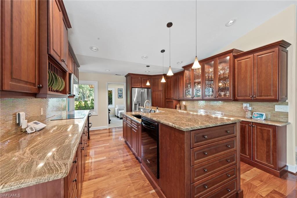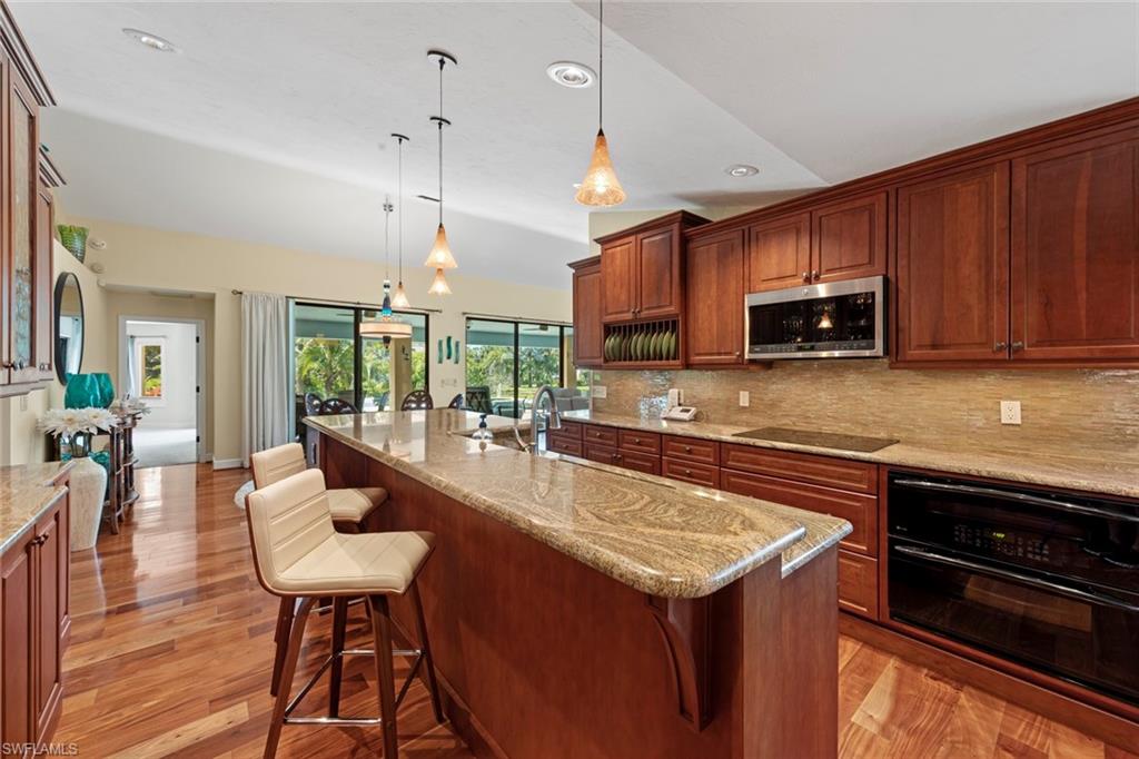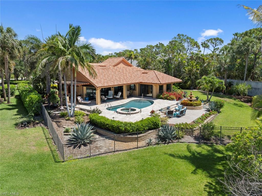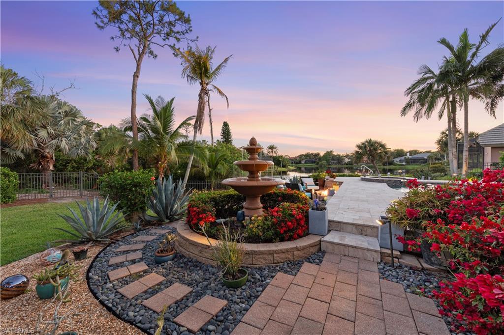 Welcome to your very own backyard oasis, nestled in the heart of Paradise. Imagine days spent basking in the warm Florida sunshine, floating in the pool, or meandering through lush gardens, all while enjoying serene lake views. Whether you're lounging poolside with a good book or taking in the peaceful ambiance of the outdoors, this home is your perfect retreat. Set on an oversized cul-de-sac lot, this charming property is a nature lover’s dream. The private gardens and tranquil lake views offer the ideal backdrop for relaxation. A winding driveway leads you through beautifully designed pathways, giving you the choice to enter through the welcoming front entry or take a scenic route around the house, leading you straight to your own slice of paradise — the pool, spa, and fire pit, all surrounded by the sounds of nature. Inside, the updated interior feels warm and inviting. The great room, complete with a cozy fireplace, flows effortlessly into the dining area, opening up to your outdoor living space where you can enjoy those perfect Florida evenings. The kitchen is a chef's dream with its rich wood cabinetry, stainless steel appliances, and induction cooktop — perfect for cooking up meals while still being able to enjoy the view. The master suite is a peaceful retreat, with large windows framing the serene backyard, and sliding doors for easy access to your outdoor haven. A walk-in closet and an updated bath complete the suite, offering both comfort and convenience. A lovely guest room and bath make it easy to host visitors, and the den can easily transform into additional sleeping space if needed. This home comes with thoughtful upgrades such as impact windows and doors, hurricane screens on the lanai, a propane gas tank, and pre-plumbing for a gas grill. It's all been carefully designed to offer a lifestyle of comfort and peace. As part of the Bonita Bay community, you'll have access to an array of amenities, including three parks, a private beach park with seasonal shuttle service, a 12-mile network of walking trails, and a resident-owned marina and restaurant. Enjoy pickleball, bocce ball, and endless opportunities for outdoor fun. Optional membership to the Bonita Bay Club adds even more — with five golf courses, 18 tennis courts, a spa, fitness center, resort-style pool, and more. This isn’t just a home, it’s a lifestyle — one of peace, relaxation, and the very best of Florida living.