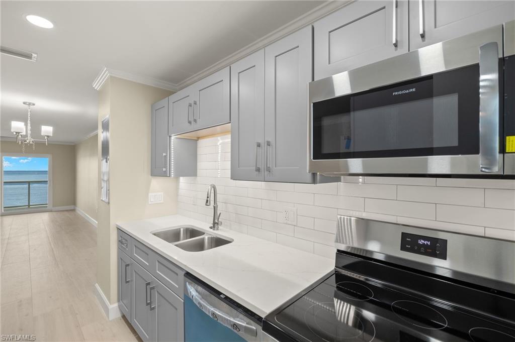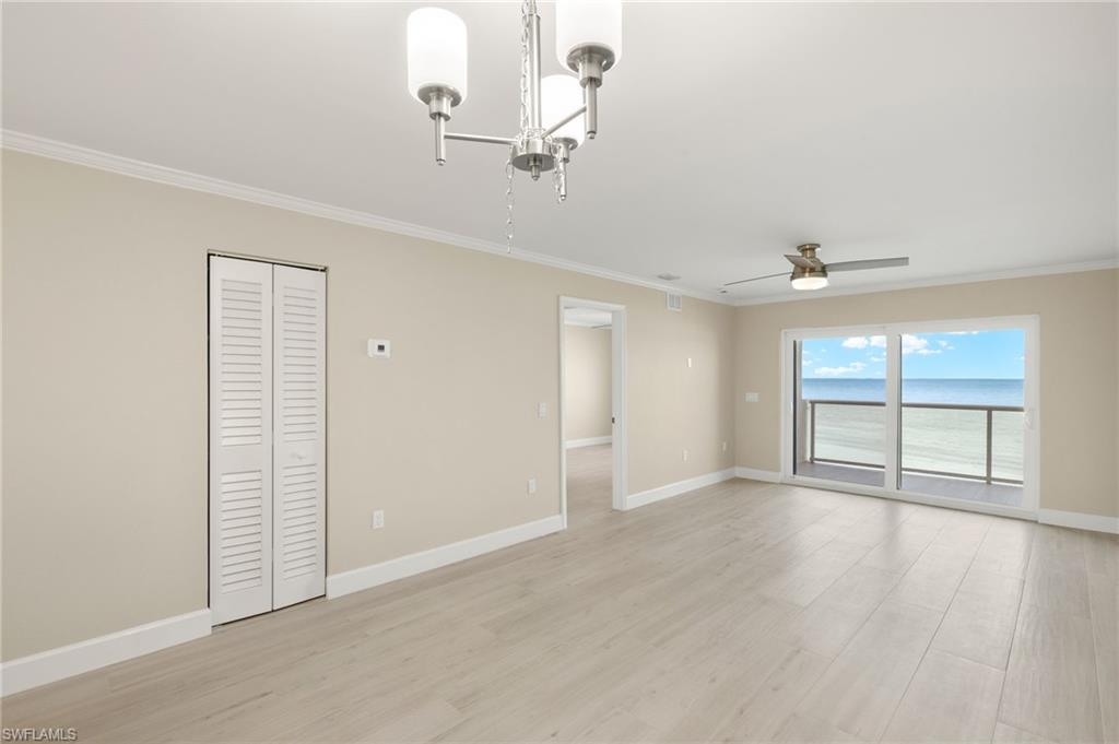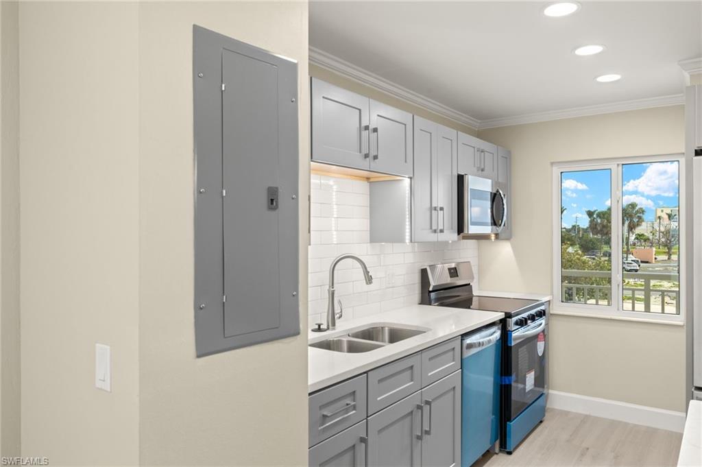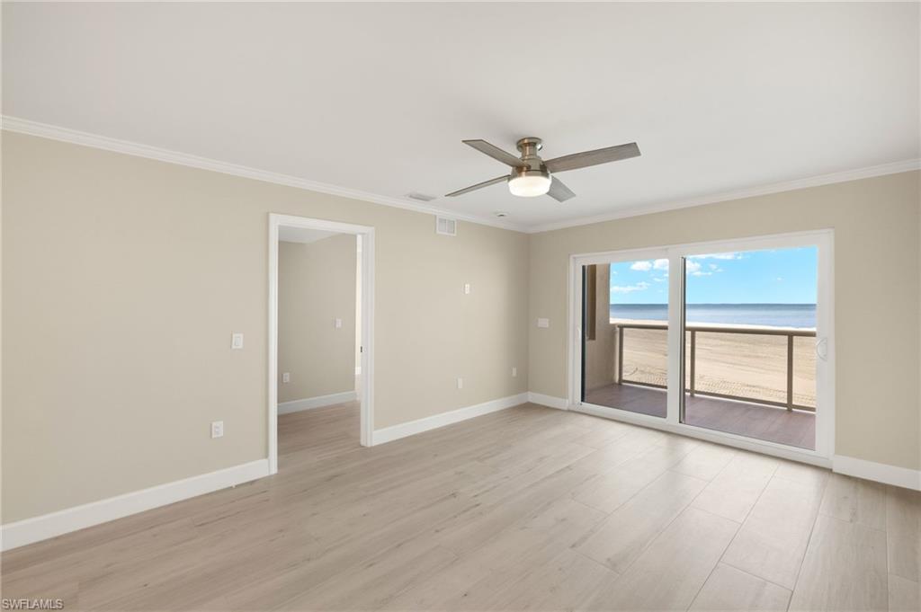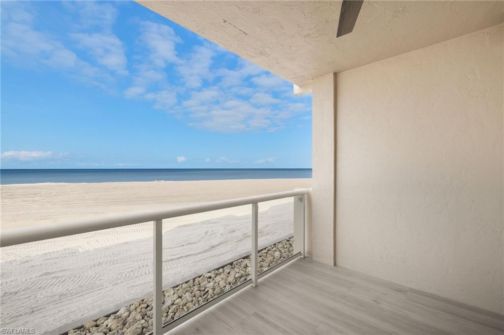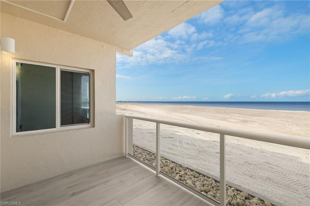 DIRECT GULF FRONT CONDO WITH SPECTACULAR GULF VIEWS FROM THE SECOND FLOOR. STEPS FROM THE WHITE SANDS AND GULF WATERS OF FT MYERS BEACH. This unit is direct gulf front. Not a side view. There will be a all new sandy beach in just weeks out front. 1 bedroom condo rarely comes on the market in this building. Everything is brand new and never used. Amazing views from your open air balcony with modern railing and tile floor. Perfect for watching sunsets. All other windows are newer hurricane-rated impact windows. This condo has been updated NEW. Breakfast bar opens to dining/living area. Spacious master bedroom overlooks the gulf. After a day at the beach, cool off in the resort sized pool overlooking the beach. Assigned parking.