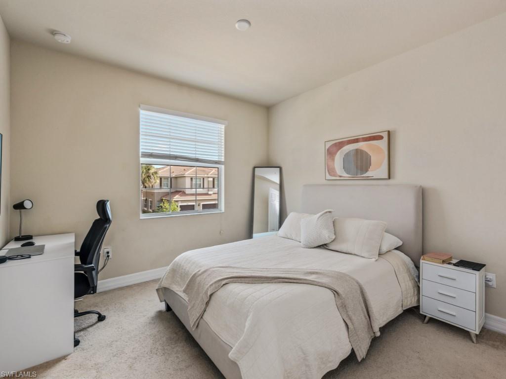 This is currently the only south rear facing 3 bedroom+ den condo with a 2 car garage available within Marbella Lakes . The unit offers a generous 2288 sqft under A/C and it's like living in a single family home. As soon as one of these condos come available for sale they are in high demand and are selling fast. The entire interior of the unit and garage is freshly painted in neutral colors. The staircase carpet was replaced as well to give it that new- move in ready feel. The Floorplan offers a nice separation between owners suite and the guest quarters. An open kitchen layout , provides options for great entertaining family or friends. A lake view from the large lanai is a bonus feature. Marbella Lakes offers great amenities including a gym, adult and kids pool, play grounds, tennis, pickle ball and a social room. Located close to down town, beaches , shopping and restaurants .