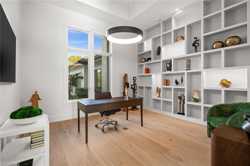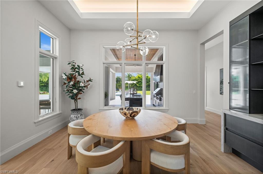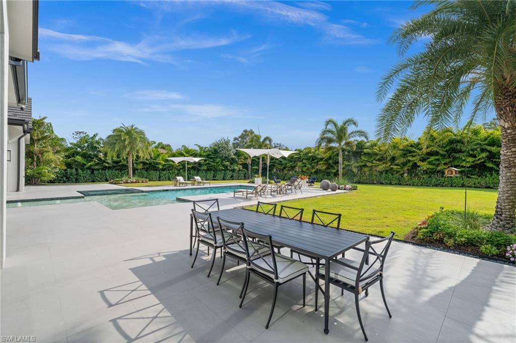 Welcome to your exquisite, fully furnished estate, ready for immediate enjoyment in the heart of Naples' prestigious Pine Ridge Estates! Completed in 2022, this magnificent residence offers an unparalleled lifestyle with over 7,200 square feet of expansive single-level living on a grand 1.42-acre parcel. Designed for the connoisseur, it features a chef-inspired kitchen boasting premium Wolf, Sub-Zero, and Miele appliances and a fully loaded prep-kitchen/butler's pantry, a sophisticated Control4 Home Automation system, a dedicated media/entertainment room, a private study/office perfect for productivity, a custom temperature-controlled walk-in wine room, and an oversized 6-car air-conditioned garage. This beautifully appointed home epitomizes sophisticated, move-in-ready luxury in Pine Ridge. Step beyond the impressive entryway into a realm of refined details and thoughtful design. With its soaring ceilings and abundant natural light, the expansive great room forms the heart of this single-level estate, seamlessly connecting to the chef's kitchen and dining areas. The private study/office provides a tranquil space for work or reflection, while the dedicated media/entertainment room is perfect for cozy movie nights or watching the big game. Every aspect of this home speaks to quality and comfort, further enhanced by the peace of mind provided by an upgraded whole-house generator supported by three 1000-gallon propane tanks, ensuring uninterrupted comfort and convenience regardless of external conditions. The phenomenal master suite offers a true retreat with its sitting room, morning bar, and spa-like bath, while additional en-suite bedrooms provide luxurious accommodations for family and guests. Discover the unparalleled elegance of Pine Ridge Estates, Naples’ most sought-after luxury neighborhood, offering expansive lots that define estate-style living. Nestled amidst lush landscaping and towering pines, this exclusive community is renowned for its remarkable privacy, architectural diversity, and freedom from HOA restrictions. With proximity to world-class shopping at Waterside Shops, fine dining at Mercato, and the pristine shores of Vanderbilt Beach, Pine Ridge Estates delivers a rare blend of tranquility and convenience. Whether envisioning a custom-built masterpiece or enjoying the charm of a sprawling residence, Pine Ridge Estates is where luxury living meets serene seclusion in the heart of Naples.