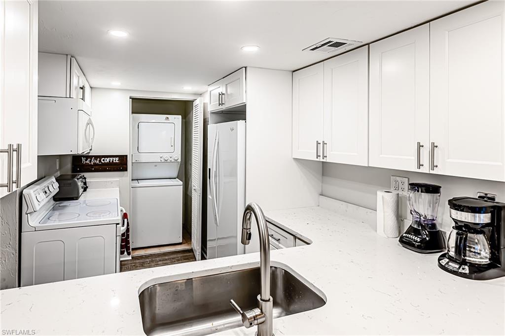 Discover paradise found at this ideal two-bedroom, two-bath island retreat at the delightful Mariner of Marco Island. Ideally just across the street from our world-famous Resident’s Beach and beautiful waters of the Gulf. Recently updated getaway with wood plank-look flooring throughout, bright and open kitchen with quartz countertops, newer cabinets and appliances, and an attractive fresh look to both baths. The sparkling pool is just a short distance from your lanai. Furnished and ready to move right in. Enjoy the convenience of the beach plus shopping, dining and entertainment just a short visit away.
