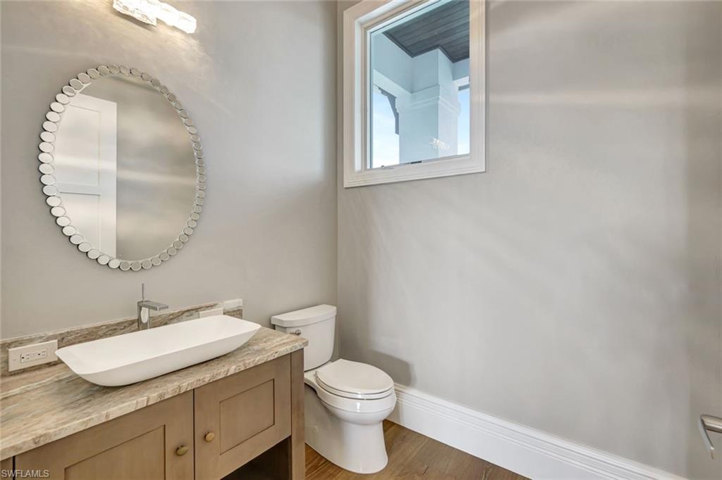 Welcome to 26906 McLaughlin Blvd, a modern coastal masterpiece nestled in the exclusive Carolands neighborhood of Bonita Springs. Completed in 2021 by renowned builder Damon Custom Structures Inc., this custom-designed residence offers an extraordinary blend of contemporary design, premium construction, and waterfront living on nearly half an acre of prime Gulf-access land. Built to meet or exceed all FEMA guidelines, this concrete fortress is elevated well above flood levels and fortified with over 35 hurricane-impact doors and windows, as well as electric hurricane shutters and screens securing the rear elevation for year-round peace of mind. Retrofitted with an essential home generator. This is not a spec home—it’s a true one-of-a-kind custom build with no expense spared in design or finish. With 4 spacious bedrooms—all with ensuite baths—and a private study, this home offers both flexibility and functionality. The primary suite is a secluded sanctuary featuring dual walk-in closets, direct access to the pool deck, and a spa-style bath with standalone tub, dual vanities, and an oversized glass-enclosed shower. Soaring coffered ceilings with custom wood detailing, wide-plank flooring, and expansive pocketing sliders blend indoor and outdoor living seamlessly. The chef's kitchen is a showstopper with quartzite countertops, a massive island with seating for six, Thermador appliances, custom wood cabinetry, and a generous walk-in pantry. Step outside to your elevated resort-style pool deck—an entertainer’s dream—featuring a saltwater infinity pool, spillover spa, outdoor shower, and full summer kitchen with grill, sink, fridge, and bar-top seating. Enjoy sunrise bay views, watch dolphins and manatees glide by, or walk a few steps to the pristine sands of Bonita Beach. The property includes a private dock with direct access into Little Hickory Bay and the Gulf of Mexico, perfect for boaters and kayakers alike. A double-side garage provides ample space for 6+ cars, golf carts, or watercraft. The home and all the comforts operate off of a 1,000 gallon underground propane tank. Offered furnished with some exclusions, this estate is located in the sought-after Carolands community—a coastal enclave known for its oversized lots, estate homes, and strong redevelopment potential. With many original ground-level homes being replaced by new construction, this neighborhood promises long-term value and investment stability. Just minutes from fine dining, shopping, and entertainment at Mercato, Coconut Point, and Waterside Shops, and less than 30 minutes to RSW Airport, this is luxury living at its finest on Florida’s Gulf Coast.