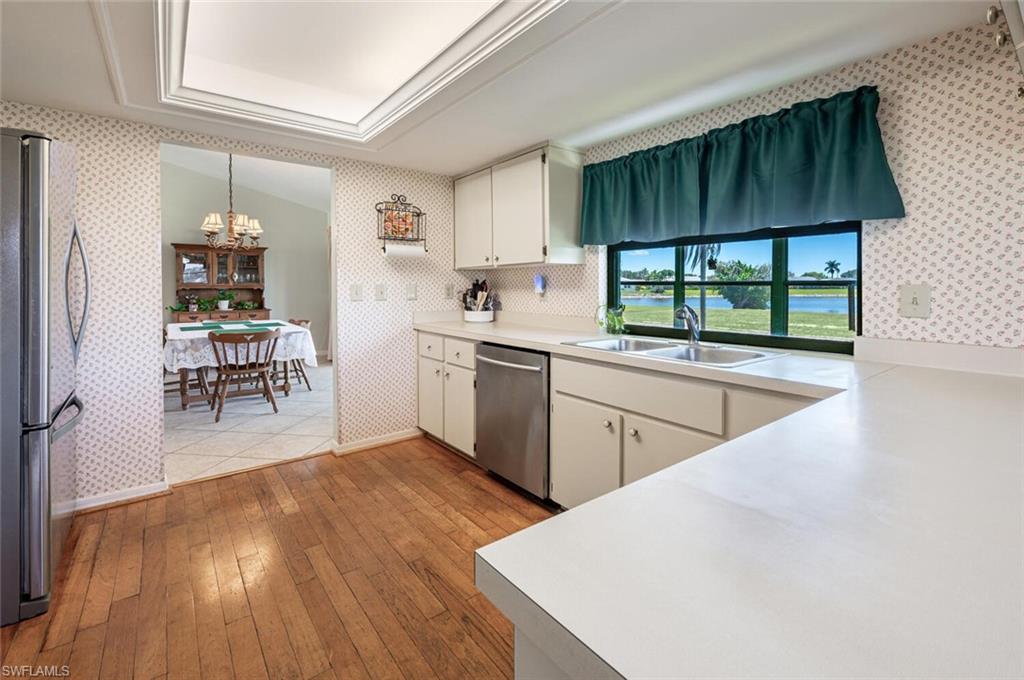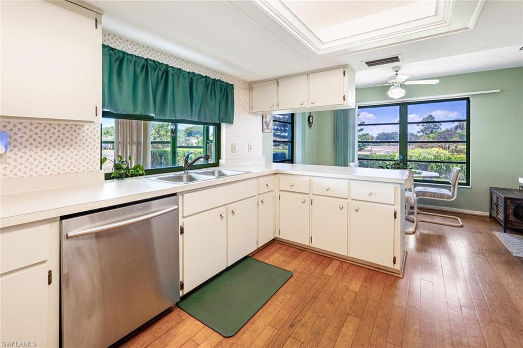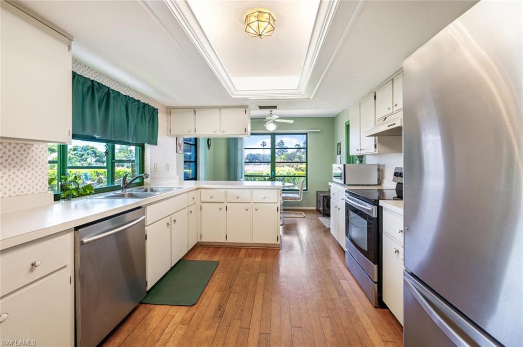 NEW ROOF AND NEW A/C! Just completed installation of both! This attractive and well maintained 2BR/2BA home has 1,301 s/f under air, plus an additional 240 s/f glass-enclosed lanai with a nice lake view; and it is situated on a large ¼ acre corner lot in the highly sought after Riviera Golf Estates, a quiet and friendly 55+ community. Just some of the many nice features of this lovely home include vaulted ceilings, a tray ceiling in the kitchen, tile flooring on the diagonal, stainless steel kitchen appliances, new washer & dryer, and tile upgrades in both bathroom showers. The house also has storm shutters for the windows, the exterior is freshly painted, it has a patio ideal for grilling, and it has a well for watering your lawn resulting in significantly lower water bills. Riviera, with its LOW HOA FEE OF JUST $144/MO. (includes basic internet), has many great amenities that include a newer heated saltwater pool with lap lanes, tennis/pickleball/bocce/shuffleboard courts, exercise room, billiards room, library and a huge clubhouse where all kinds of fun social activities take place. This community is conveniently located just a short drive from Downtown Naples, Gorgeous Beaches, and many fine dining and shopping options. Listed for under $350,000 – isn’t it time you owned your own little piece of paradise??