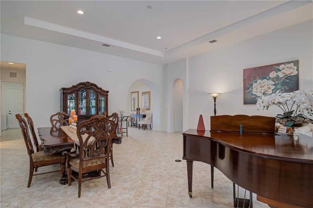 Welcome to 5025 Iron Horse Way, a spacious CHESBRO floor plan ideally located just 0.2 MILES FROM THE AVE MARIA TOWN CENTER—a rare opportunity to enjoy close proximity to shopping, dining, the iconic church, and community events. This ONE-STORY home features 3 BR + DEN/2.5 BA, and a 3-CAR GARAGE, offering 3,086 SQFT of thoughtfully designed living space. With NO CARPET, the interior features DIAGONALLY LAID TILE and LAMINATE FLOORING THROUGHOUT. 12-FOOT CEILINGS and LARGE WINDOWS provide a bright and open feel. The home includes ADDITIONAL RECESSED LIGHTING and ceiling boxes throughout, allowing flexibility to add your own light fixtures where desired. The kitchen is well-sized and functional, complete with BUILT-IN APPLIANCES, UPGRADED WHITE 42" CABINETRY, DOUBLE OVENS, and a WALK-IN PANTRY, offering plenty of space for everyday cooking or entertaining. Additional touches such as a GLASS FRONT DOOR, ARCHED ENTRYWAYS, and MEDITERRANEAN-STYLE DESIGN give the home a warm and inviting character. The primary suite includes a FLEXIBLE SITTING AREA that can be used as a home office, nursery, or creative nook. The DOUBLE MASTER BATH layout provides both convenience and privacy, and IMPACT WINDOWS throughout the home offer added protection and energy efficiency. Outdoors, the backyard features PAVERS THROUGHOUT, with MINIMAL GRASS and a PRIVACY WALL rather than a lake view—ideal for those who prefer a lower-maintenance outdoor space. The lanai is equipped with a STORM SCREEN, and the yard is FULLY FENCED. An IRON GATE at the front entry and ADDITIONAL LANDSCAPING complete the exterior. As a Maple Ridge resident, you’ll enjoy full access to the MAPLE RIDGE CLUBHOUSE, which includes a resort-style pool, gym, meeting spaces, and more. Set in Ave Maria, a nationally recognized BLUE ZONE community, this home offers access to PARKS, WALKING TRAILS, TENNIS, PICKLEBALL, AND MORE—making it ideal for those seeking a healthy, active, and community-centered lifestyle. Don't miss your chance to live in one of the closest homes to the heart of town. "Ave Maria: where community meets paradise."
