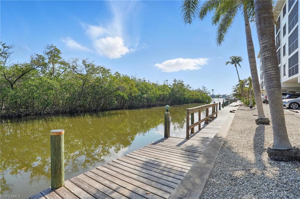 Direct Gulf Access Condo — Walk to Bonita Beach Live the ultimate Southwest Florida lifestyle in this beautifully maintained two-bedroom condo just a short stroll from Bonita Beach. Enjoy direct Gulf access with free boat dockage, offering quick, no-bridge access to open water—ideal for boating enthusiasts who want to be on the Gulf in minutes. Relax on your screened lanai overlooking the mangroves and canal, where dolphins and manatees are frequent visitors. This pet-friendly community welcomes one dog up to twenty pounds and features resort-style amenities, including a heated pool and spa, tiki hut with BBQ grills, clubhouse with a full kitchen, billiards, and table tennis, plus covered carport parking for convenience. The unit has been freshly painted and thoughtfully updated with a new air conditioner, stove and oven, microwave, dishwasher, and washer/dryer combo. Located on the first floor, this home eliminates the hassle of stairs or elevators while offering beautiful water views and breathtaking sunsets right from your lanai. The community is financially strong with fully funded maintenance and structural reserve accounts, low quarterly fees, and a newer roof already in place. The grounds are beautifully maintained, reflecting pride of ownership throughout the property. You can walk to Bonita Beach for a casual drink at Doc’s or enjoy waterfront dining at Coconut Jack’s. It’s just fifteen minutes to Coconut Point Mall, Southwest Florida International Airport, and I-75, with easy access to upscale restaurants, local favorites, grocery stores, and retail shopping. Fort Myers Beach and Naples are also just a short drive away, making this location as convenient as it is beautiful. Whether you’re looking for a full-time residence or a seasonal retreat, this condo offers the perfect combination of boating, beach life, and worry-free living. Come see why the owners love living here—you will too.