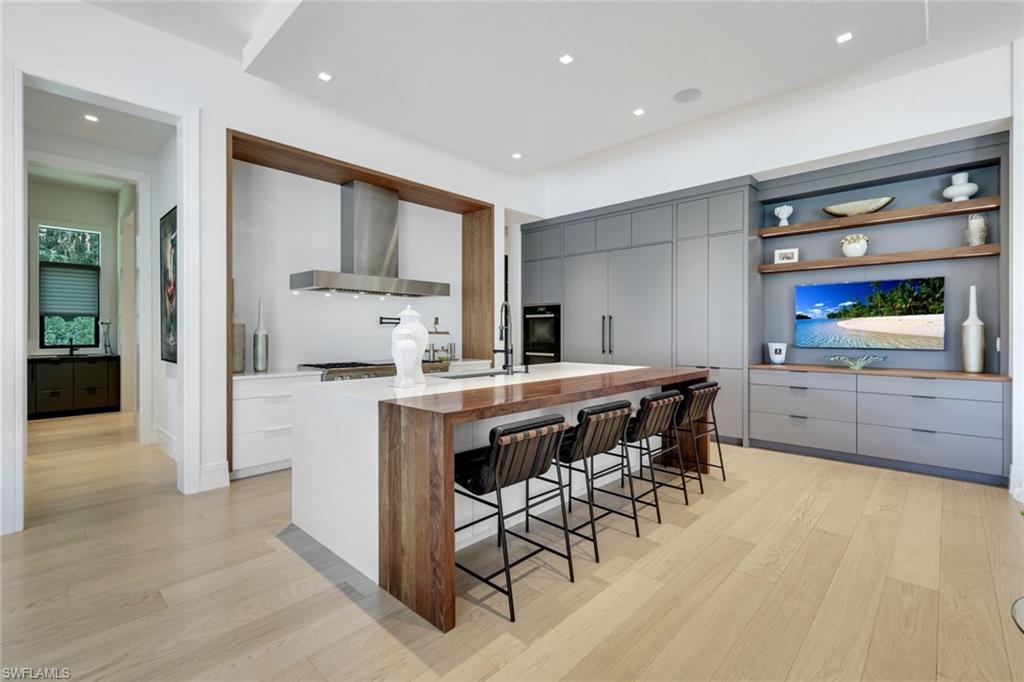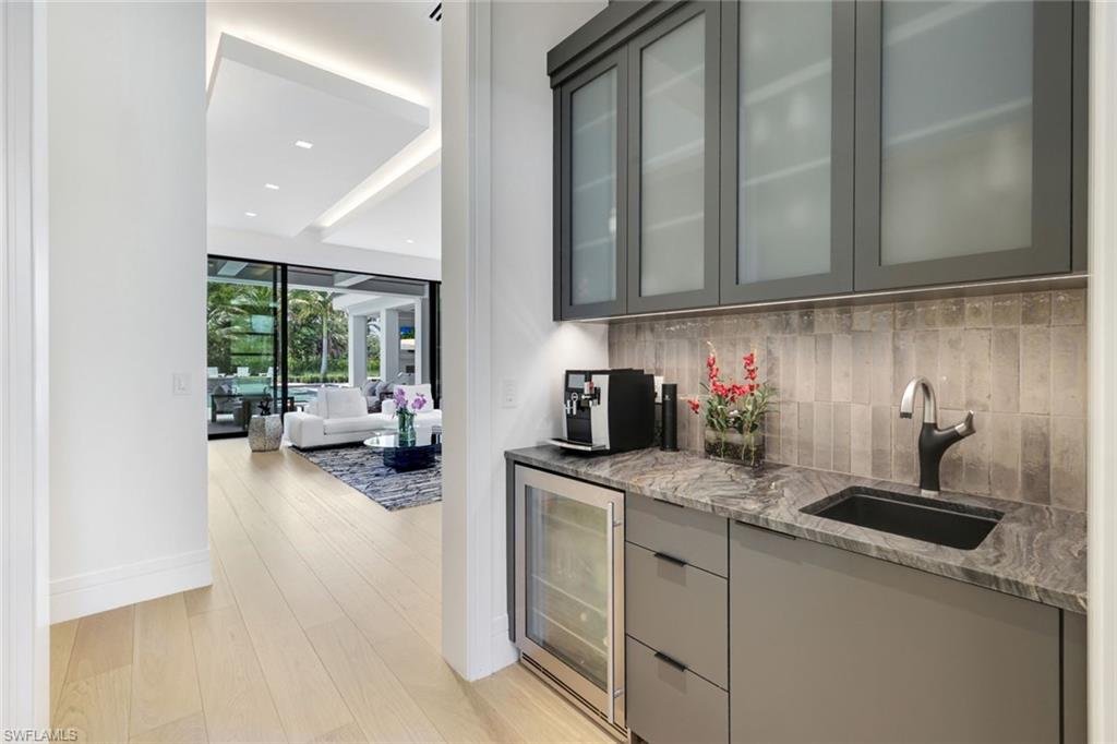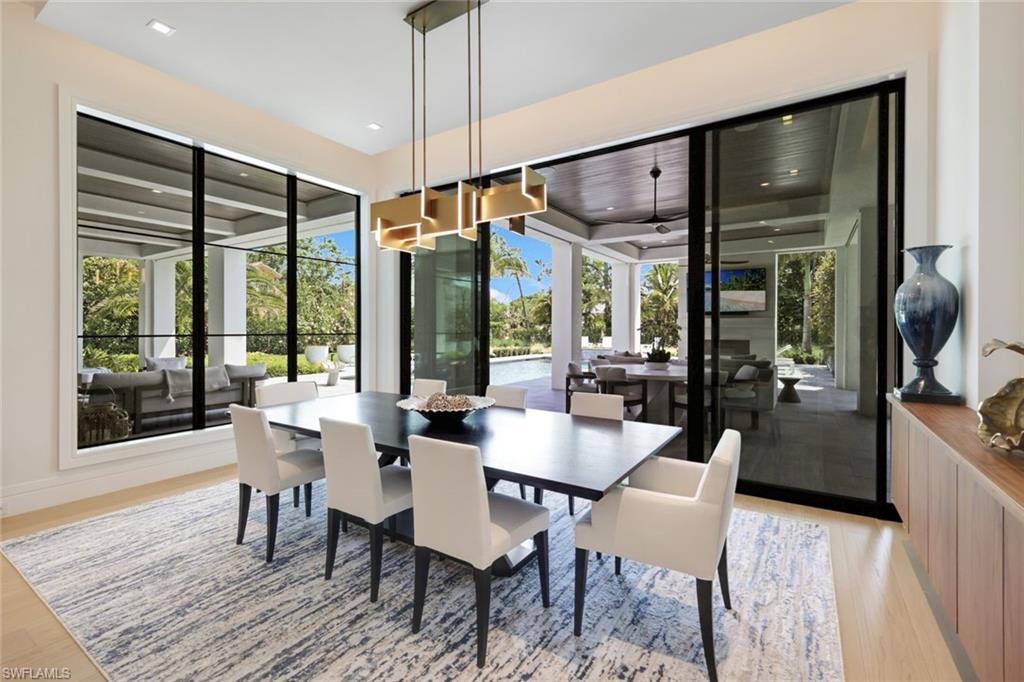 A showcase of modern elegance, this custom two-story residence was thoughtfully crafted with architectural excellence by Boyott Design. Nestled in prestigious Pine Ridge, the home embodies exceptional craftsmanship with premium finishes for a lifestyle of sophisticated comfort. All cabinetry and wood accents customized by Ruffino Cabinetry. Spectacular chef’s kitchen, accompanied by a chic full-service Butler’s pantry. Both offering upscale appliances by Miele, Thermador, Bosch and BlueStar. Well-appointed bar area with 184 bottle dual wine coolers. Additional office wet bar, plus guest station on the second floor. All bedrooms are ensuite with walk in closets. The elegant first floor primary bedroom is private with access to a spacious study, porte-cochere entry with welcome station, and his & her opulent closets. Expansive primary bathroom offers dual sides of amenities providing privacy, plus a digital Kohler Rain Shower/Body Spray System for personalization. First floor guest suite is equipped with a steam shower. A dramatic glass staircase leads to more open living/recreation space with theatre quality sound system. Large sliders open to a covered cedar ceiling balcony with beautiful scenic views of the grounds and pool. The second floor VIP Suite offers balcony access, vanity, walk-in closet and luxurious shower. The picturesque, main covered lanai areas include outdoor kitchen, bar, Alfresco grille and pizza oven, dining and two spacious outdoor living areas, linear fireplace which all may be enclosed under automated screens. Outdoor living areas give way to a sprawling heated saltwater pool with soothing scuppers of water flowing from a large linear firepit, sun shelf and spa. Property is elegantly landscaped with the bonus of mango, lime & lemon trees. The home is managed by a Control4 Home Automation System for lighting, security, music, window shades and audio/visual. Additional features include hurricane impact-resistant doors & windows by ES Windows. You'll enjoy superior protection and sound attenuation. Soaring 12-foot sliding doors seamlessly connect indoor and outdoor spaces, while wide plank wood flooring flows beautifully throughout main living areas. Specially designed drop celings to cover air vents. Enjoy the convenience of an elevator, a whole-home reverse osmosis water system, and a robust whole-home generator for uninterrupted power. Even the garage is a haven with full air-conditioning and custom storage solutions. For enhanced peace of mind, this property offers a comprehensive security solution including outdoor surveillance cameras, a fully fenced perimeter, and secure Viking entry gates. This beautiful Pine Ridge Estates property is close to beaches, fine dining, upscale shopping, and the renowned Artis—Naples. This one-of-a-kind estate offers luxury living at its finest. .