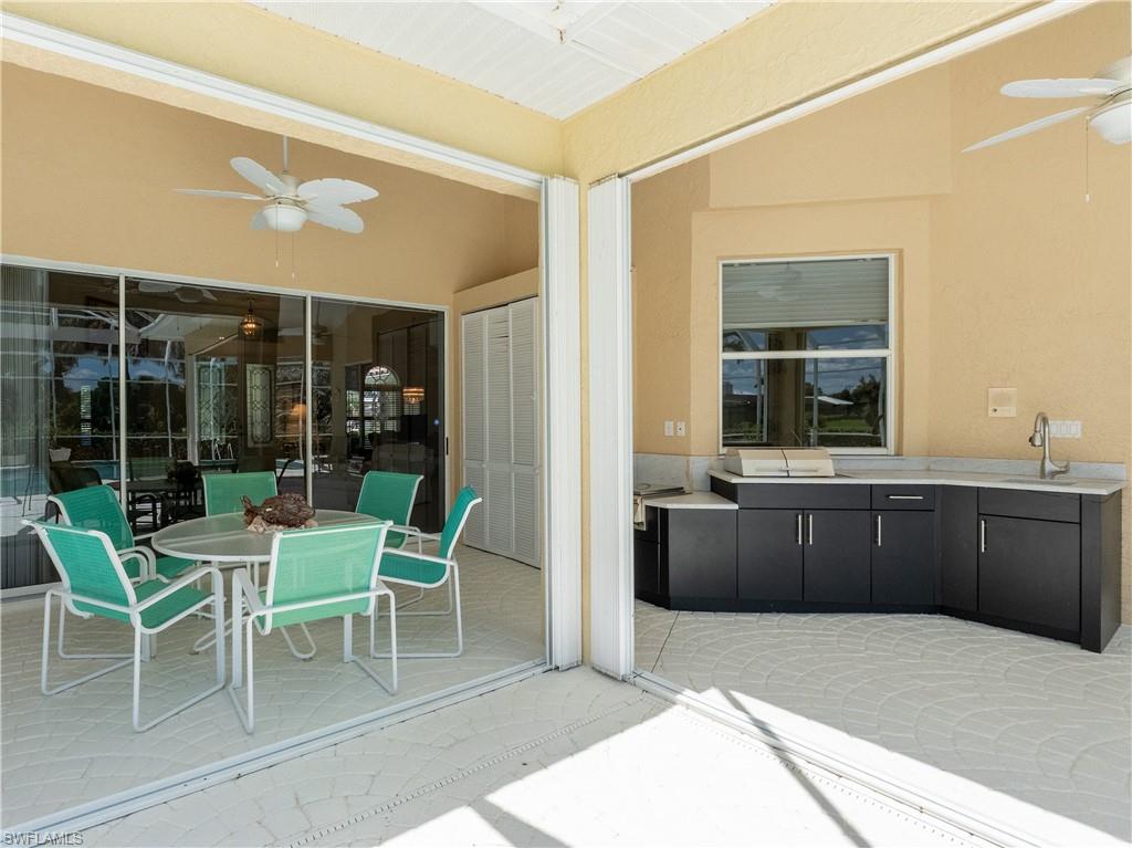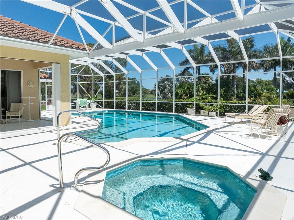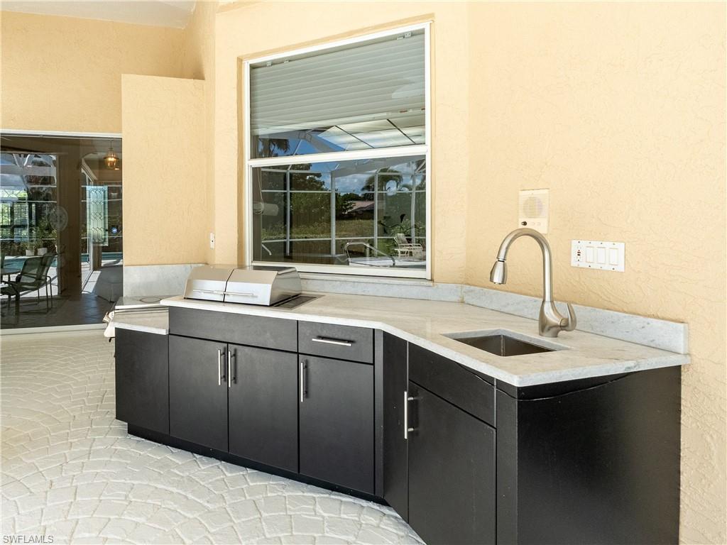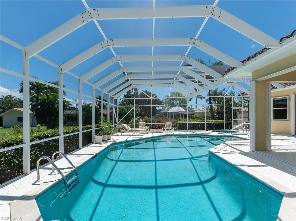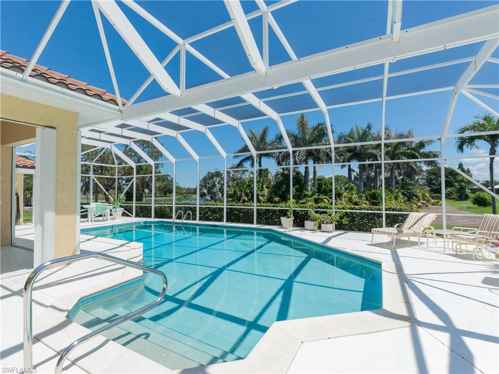 Enjoy this Elevated Golf course property on the Exclusive The Island Country Club course, Oversized Lot and Beautifully maintained 3-bedroom + den, 3-bath home on an oversized lot with a panoramic view on private landscaped area, Lake and golf course. In the heart of Marco Island. This spacious single-story residence features vaulted ceilings, abundant natural light, and a bright, open layout perfect for entertaining. The kitchen boasts a butcher-block island, family room wet bar, and generous storage, while the primary and guest suites offer walk-in closets and spa-like bathrooms with separate tub and shower. Enjoy seamless indoor-outdoor living with a pool bath, screened-in pool and spa, and a fully equipped outdoor kitchen. Additional highlights include manual storm shutters, a oversized 2-car garage, large laundry room with sink and cabinetry with ample closet space throughout. Bay window in Master overlooking pool area and golf course. Screened front entry with double doors and stamped concrete circle driveway. Partially furnished and move-in ready your Florida lifestyle awaits!