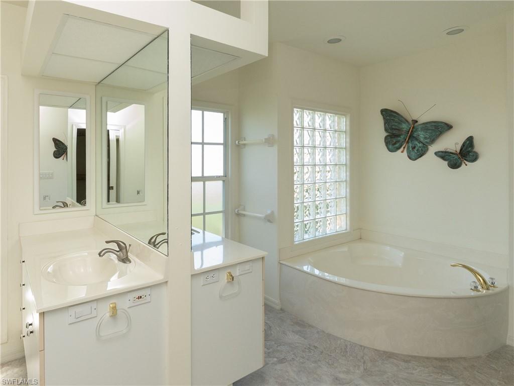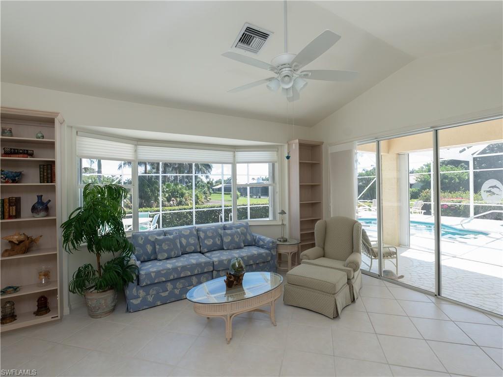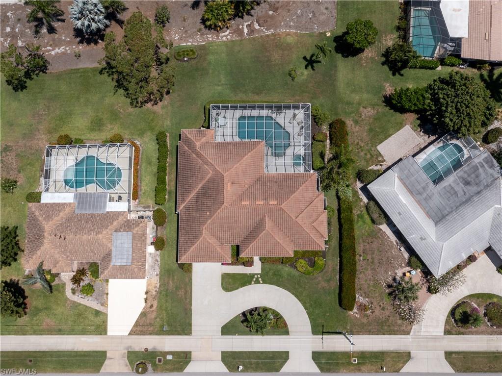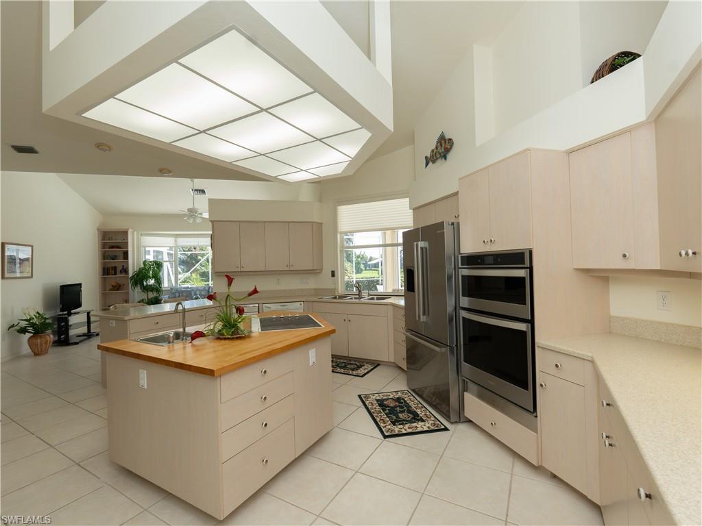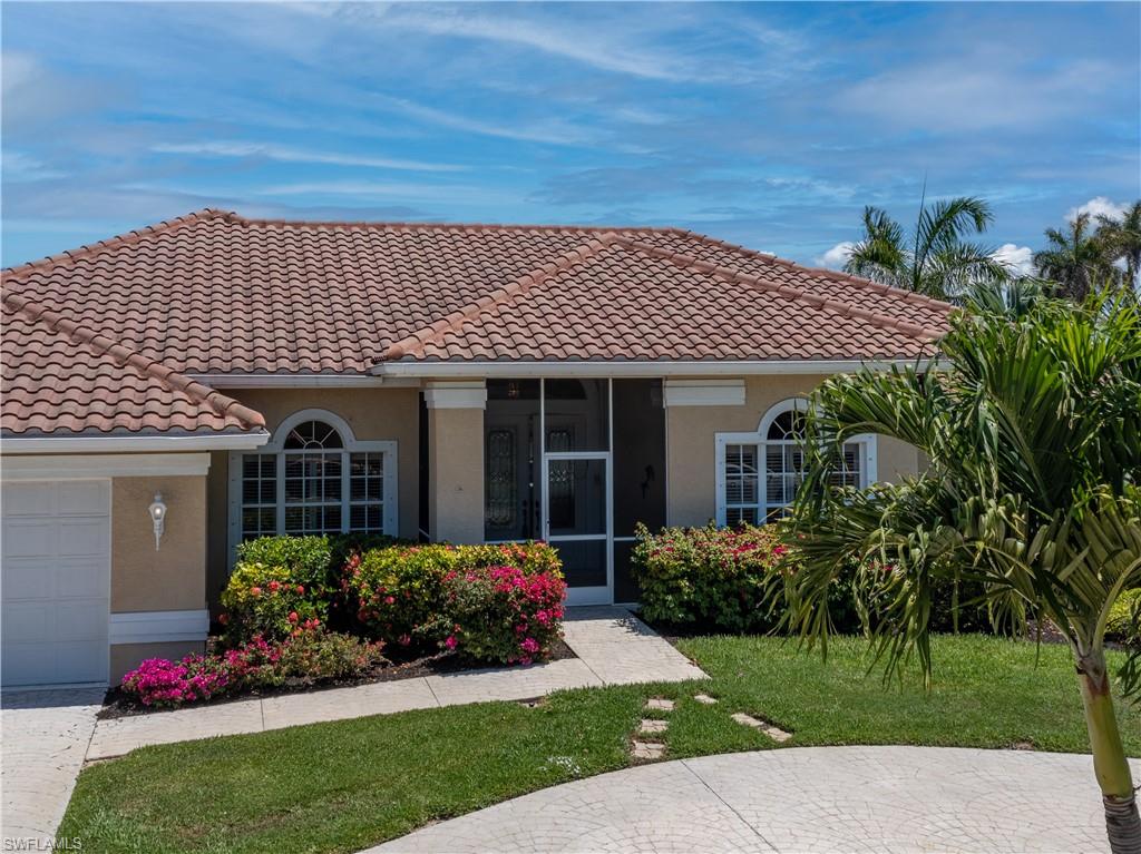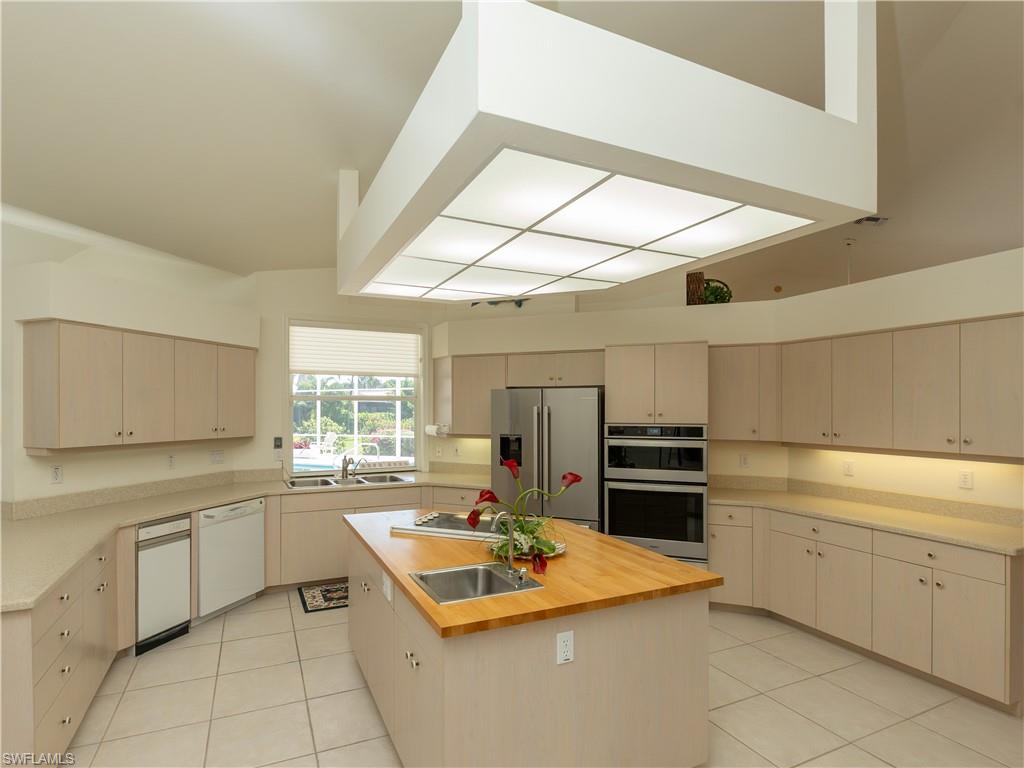 Enjoy this Elevated Golf course property on the Exclusive The Island Country Club course, Oversized Lot and Beautifully maintained 3-bedroom + den, 3-bath home on an oversized lot with a panoramic view on private landscaped area, Lake and golf course. In the heart of Marco Island. This spacious single-story residence features vaulted ceilings, abundant natural light, and a bright, open layout perfect for entertaining. The kitchen boasts a butcher-block island, family room wet bar, and generous storage, while the primary and guest suites offer walk-in closets and spa-like bathrooms with separate tub and shower. Enjoy seamless indoor-outdoor living with a pool bath, screened-in pool and spa, and a fully equipped outdoor kitchen. Additional highlights include manual storm shutters, a oversized 2-car garage, large laundry room with sink and cabinetry with ample closet space throughout. Bay window in Master overlooking pool area and golf course. Screened front entry with double doors and stamped concrete circle driveway. Partially furnished and move-in ready your Florida lifestyle awaits!