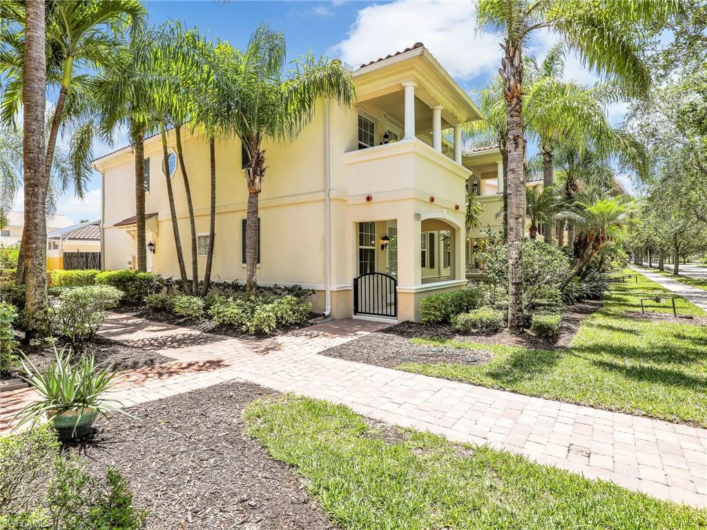 Welcome to your primary or seasonal retreat to enjoy paradise in this popular 2-story townhome in VillageWalk of Bonita, a highly desirable community in Bonita Springs with reasonable HOA Fees and no flood insurance required! Step inside this DiVosta “built-solid” steel reinforced poured concrete "Cayman" model to find 3 generous primary-sized bedrooms, each a serene retreat with its own en-suite bathroom and spacious walk-in closet with built-in shelves for organizing and maximizing space. Enjoy the sunshine and fresh air in your private outdoor spaces, including a front porch, front balcony, and large rear screened enclosure, offering a seamless oasis of indoor comfort and outdoor beauty. Located on a tranquil tree-lined street just a short walk to the amenities and Towne Center, this residence captures the essence of Florida living at its finest! Upgraded and neutral colored wood floor, luxury vinyl floor and newer carpeting elevate this home's desirability. From the moment you enter, you're greeted in an open indoor space and large screened outdoor enclosure that’s perfect for entertaining guests or simply unwinding. Situated in a 24 hour guard-gated, amenity-rich community, enjoy a lifestyle that embodies comfort and convenience. Explore the vibrant Towne Center, complete with a full-time activities director, town manager, and vast amenities including card/game rooms, a ballroom, library, catering kitchen, and a delightful restaurant/bar with indoor/outdoor seating for your enjoyment. Indulge in the community's other unique offerings, including an on-site deli/bagel shop, ice cream parlor, gas station, car wash, salon, spa, ATM, and post office. Stay active in it's top-tier fitness center and with group exercise classes, a resort-style and separate lap pool, "tot-lot", and tennis, pickleball, basketball, and bocce courts. Enjoy the 22 miles of scenic walking/riding trails, 37 bridges, and butterfly gardens waiting for you to explore. Perfectly situated near RSW airport, medical facilities, schools, places of worship, beaches, parks, shopping destinations, and renowned restaurants, this home offers the epitome of luxurious living in Bonita Springs - where every day feels like a vacation in paradise!