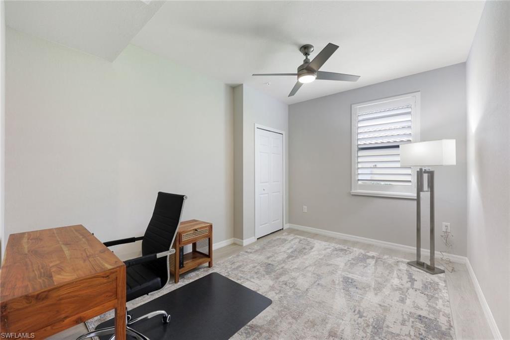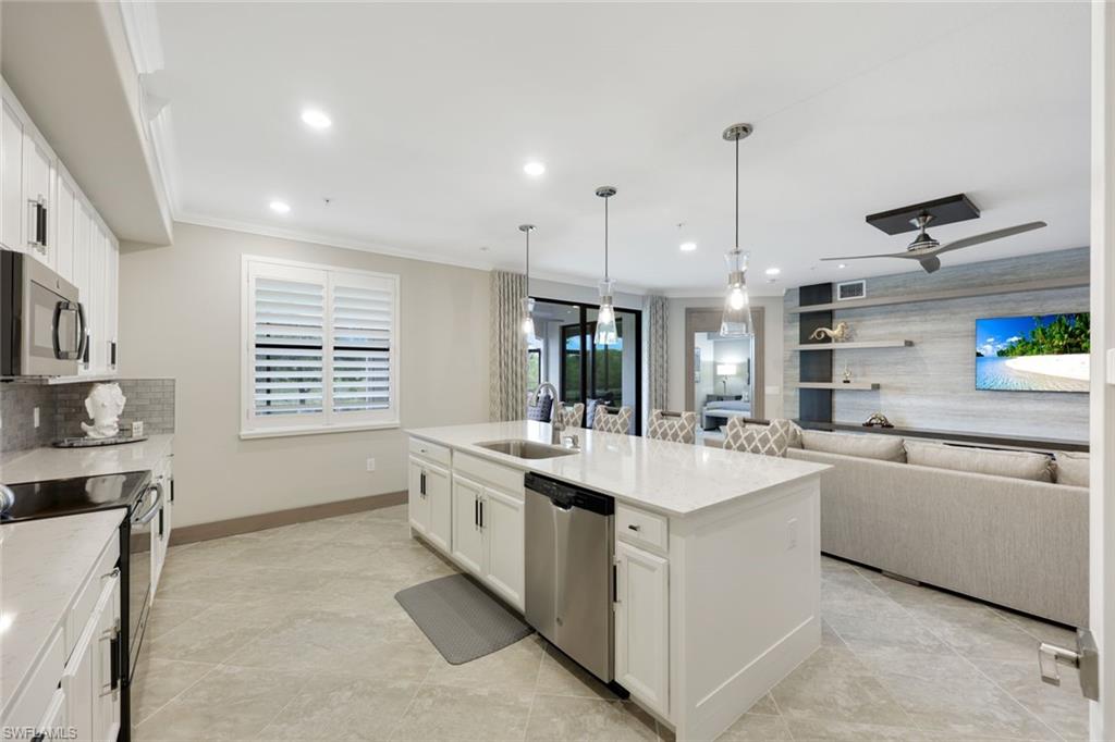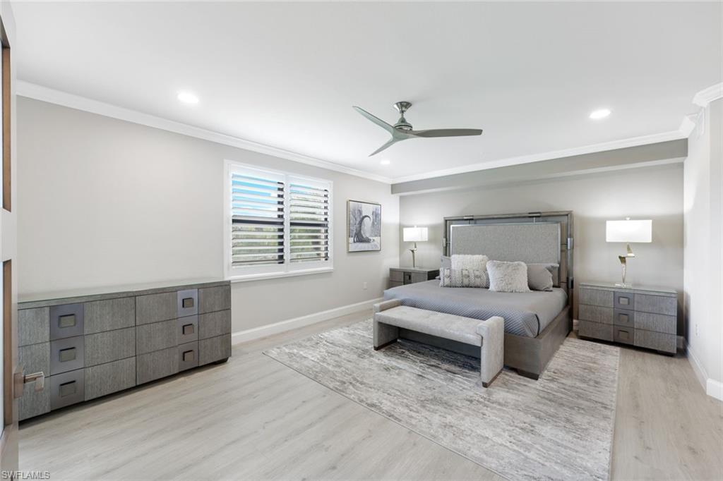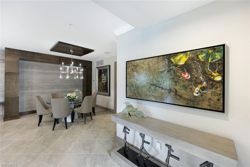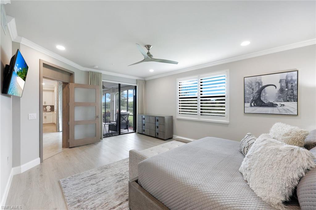 Experience the perfect blend of New York City sophistication and Florida golf and country club living in this luxurious 3-bedroom coach home, beautifully designed to reflect the ambiance of a contemporary NYC condominium. Located within the prestigious Bonita National Golf and Country Club, this home features unparalleled design and high-end finishes. Highlights include new flooring in all bedrooms, plantation shutters throughout, Storm Smart hurricane shutters, and custom millwork, including ceiling plinth blocks and custom door frames. The great room showcases Thibaut Elitas designer wall coverings and custom built-ins. The spacious kitchen offers new sinks and faucets, roll-out drawers, a Bosch fridge, and a stylish tile backsplash, along with upgraded lighting throughout, including additional recessed lights in the primary bedroom and great room, as well as ceiling art spotlights. This stunning home is being offered turnkey, complete with high-end designer furniture from brands like Bernhardt, Jessica Charles, Currey & Co., Marge Carson, Massoud, and Arteriors. The garage is equally impressive, featuring an insulated door for vehicle protection and interior cooling, additional electrical outlets, a ceiling fan, overhead storage, and custom epoxy flooring and molding. Conveniently located, you are just moments away from sandy Gulf beaches, downtown Naples, and have easy access to I-75, RSW Airport, and the River District in Fort Myers. As a social member at Bonita National, you will enjoy access to all amenities except the golf course. Relax at the lagoon pool with a waterfall, poolside cabanas, and a bar/grill. Enjoy swim lanes for water exercise, a full-service spa for post-workout relaxation, and a beautiful clubhouse that offers a restaurant, game rooms, and meeting spaces for social gatherings. Additionally, bocce and pickleball courts will soon be available for even more recreational fun! THIS IS A ONE-OF-A-KIND A TRUE MUST SEE!