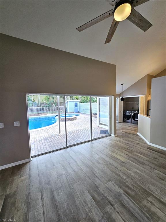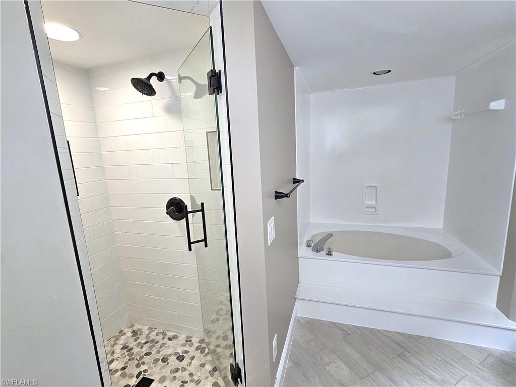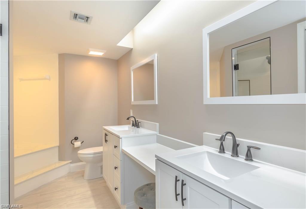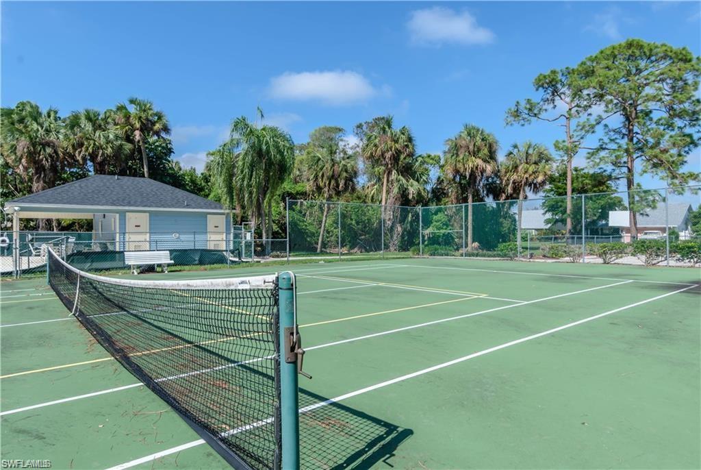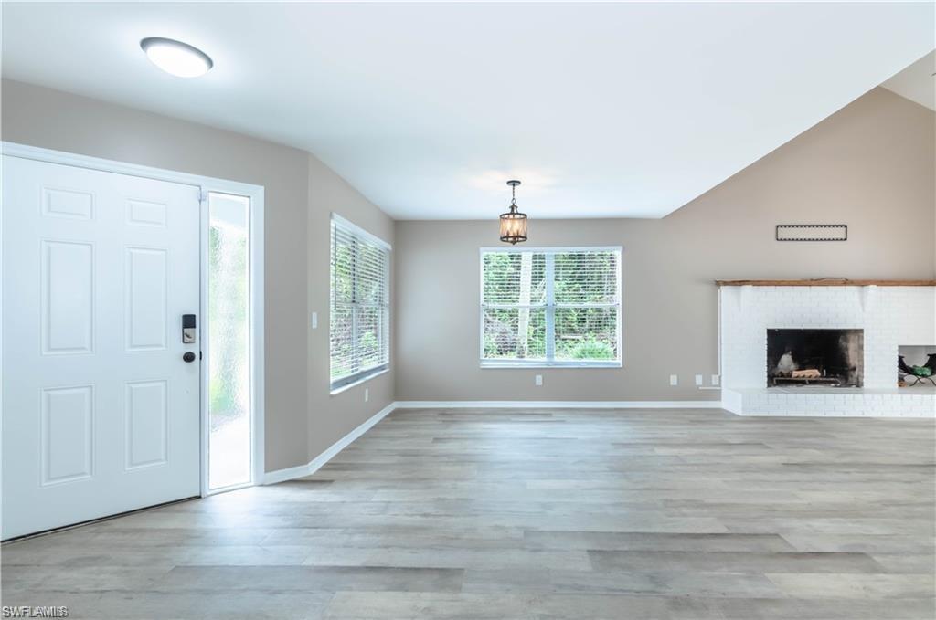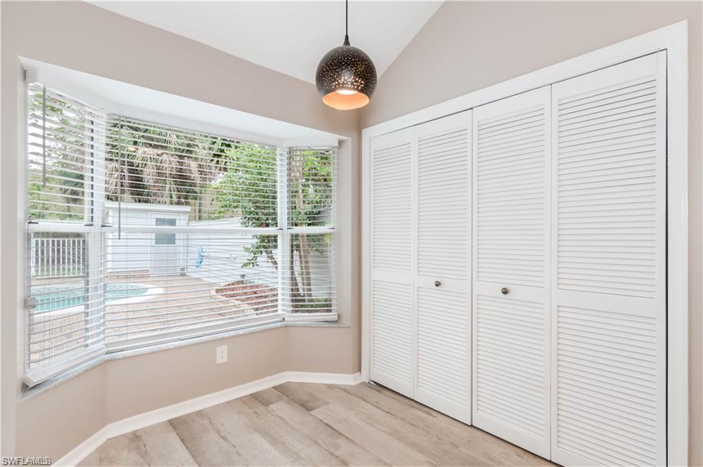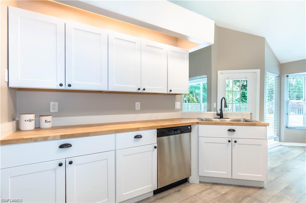 Largest Remodeled Villa in Berkshire Village – Private Pool, Spa & Spacious Garage. Experience the perfect blend of space, privacy, and style in the largest villa in Berkshire Village. This fully remodeled 3-bedroom, 4-bath home is tucked beside a tranquil preserve and features an oversized resurfaced pool and spa, surrounded by tropical landscaping with guava and papaya trees. A poolside cabana bath and outdoor shower complete the ideal outdoor oasis. Inside, the great room centers around a rare wood-burning fireplace, while the sunny breakfast nook and formal dining room offer perfect spaces for everyday living and entertaining. The first-floor master suite includes a walk-in closet, soaking tub, separate shower, and dual vanities. Two additional bedrooms and baths, a charming play nook under the stairs, and updated finishes throughout add comfort and character. Recent upgrades include a new roof, new HVAC system, new appliances, and a fully finished detached two-car garage—ideal for a mechanic, hobbyist, or anyone needing extra workspace. Best of all, this home is not in a flood zone, offering added peace of mind and long-term value. Located just steps from the community heated pool and tennis/pickleball courts, and only minutes from I-75 and downtown Naples, this villa delivers relaxed, resort-style living in one of Southwest Florida’s most convenient and desirable locations.